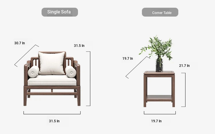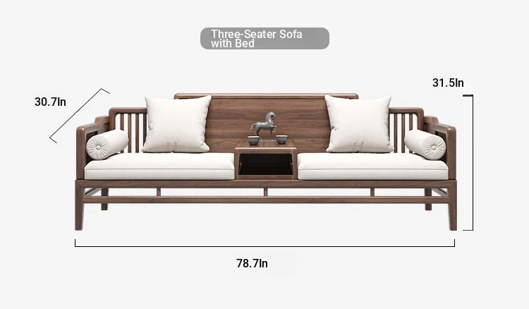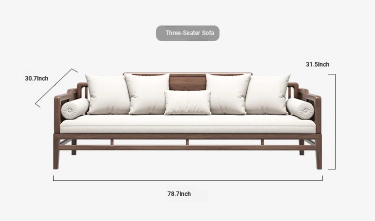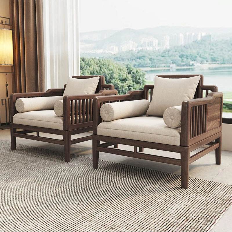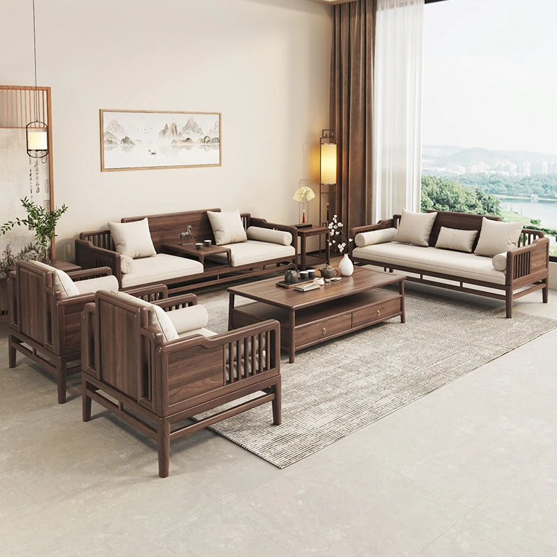 Modern Minimalist New Chinese Style Solid Wood Sofa Set for Villa Living Room and Office Furniture - Elegant Black Walnut Upholstered Sofa for Sophisticated Interiors
