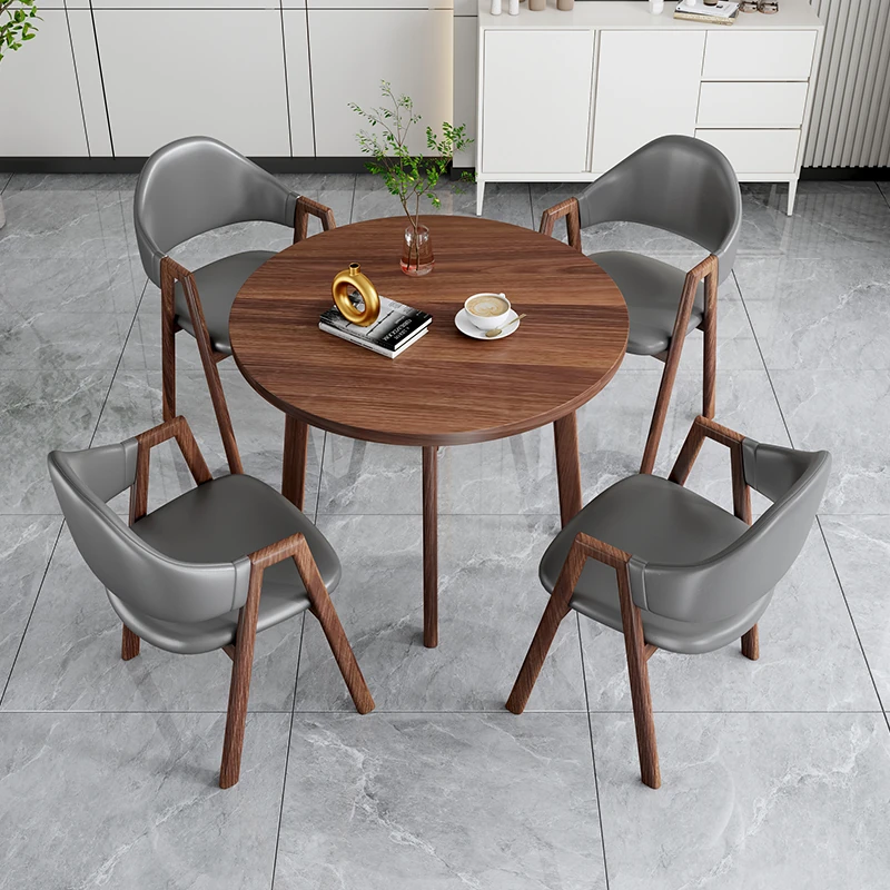Light gray leather [1 table +4 chairs] walnut rack sent on the same day