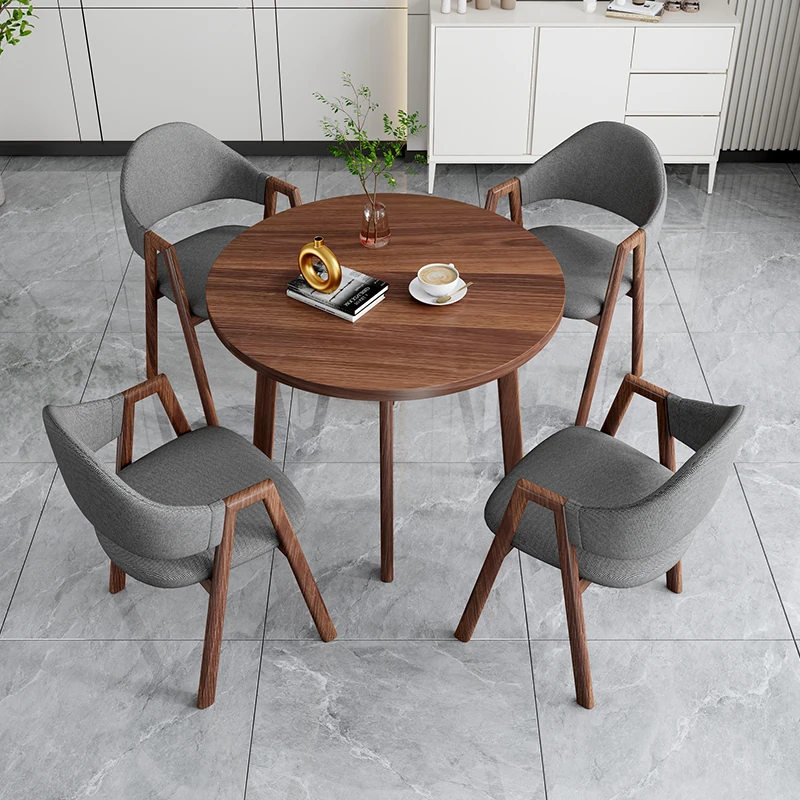 Dark gray cloth [1 table +4 chairs] walnut rack sent on the same day