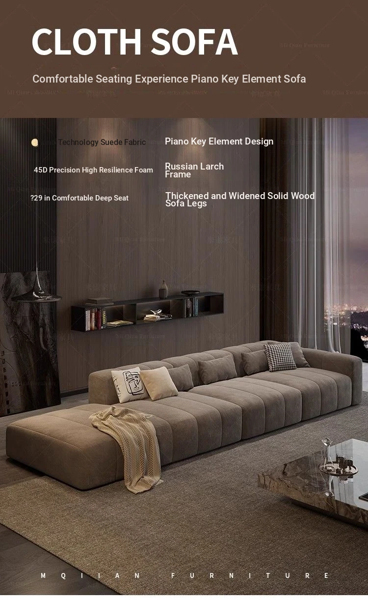 Modern Minimalist Piano Key Sofa - Italian Style, Compact Design for Small Living Spaces, Cat-Friendly Fabric Couch, Perfect for Your Home