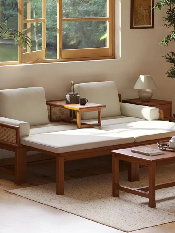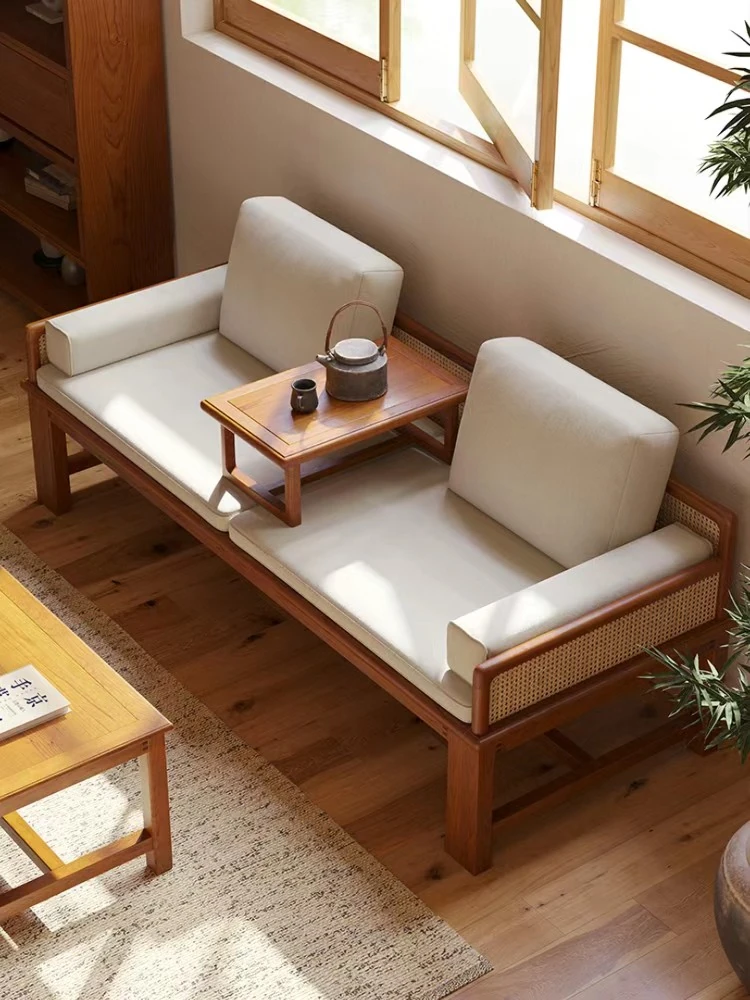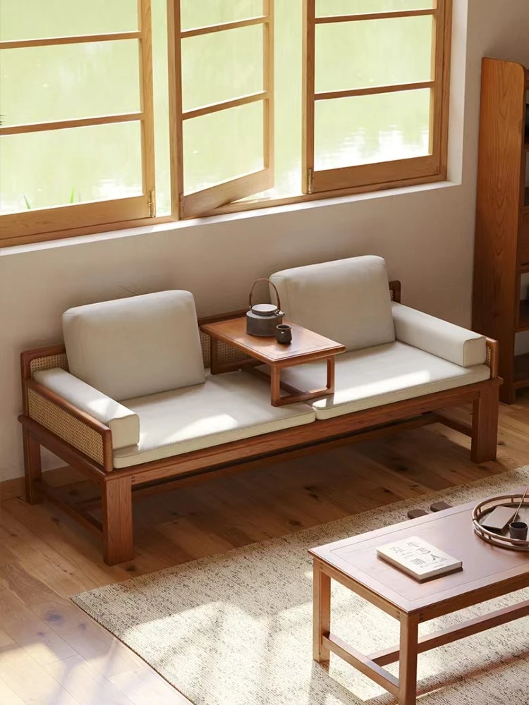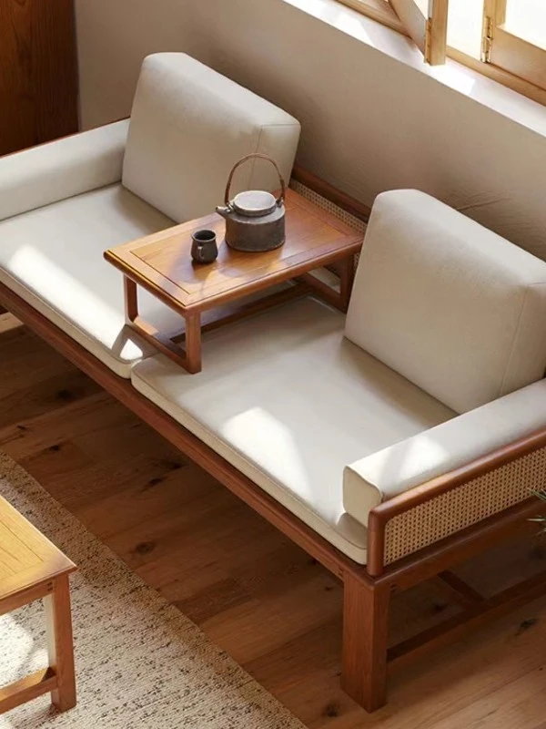 Modern Minimalist Solid Wood Sofa Set in New Chinese Style - Elegant Two-Seater for Living Room, Perfect for Your Home Décor with Natural Wood Finish
