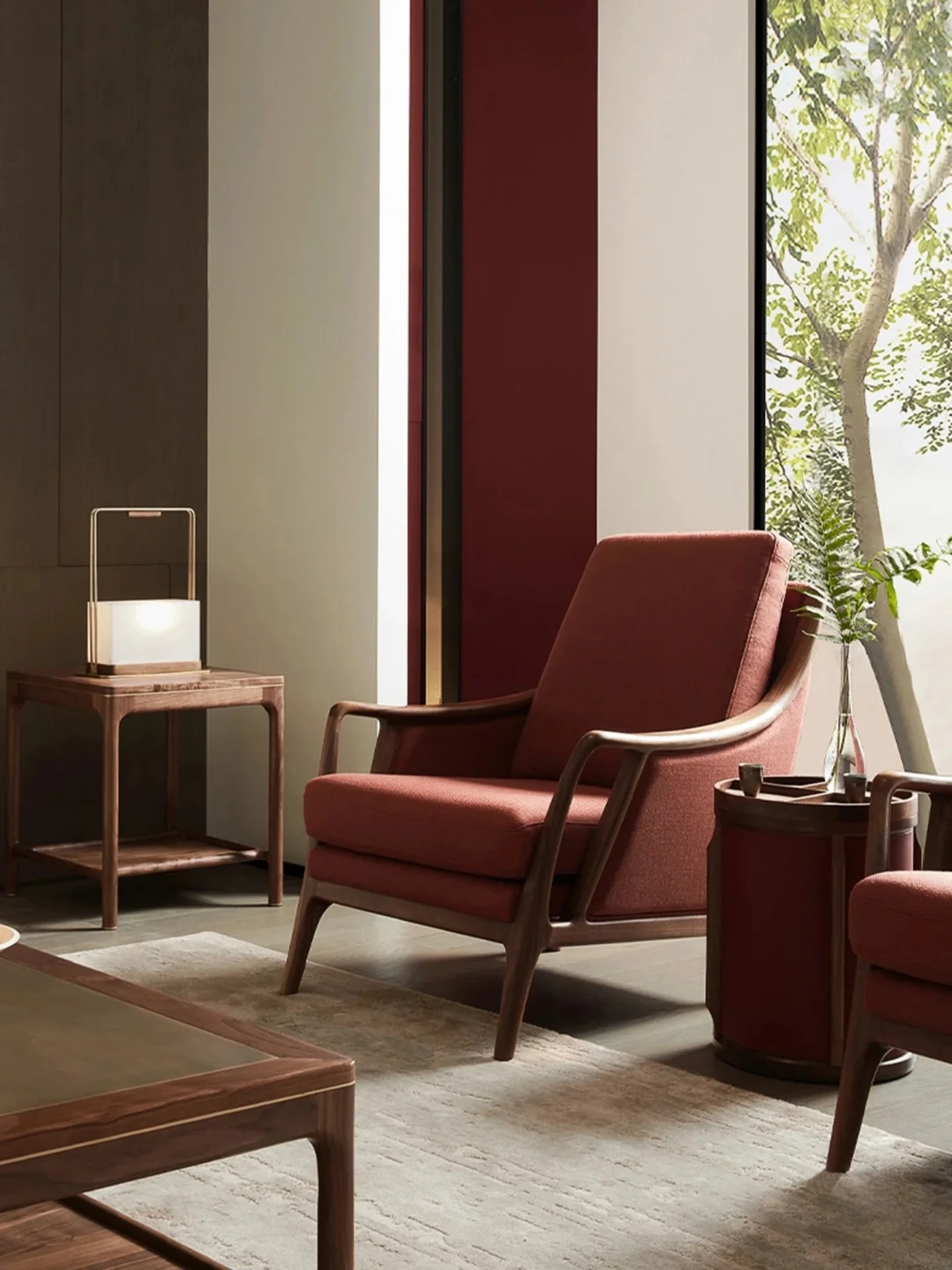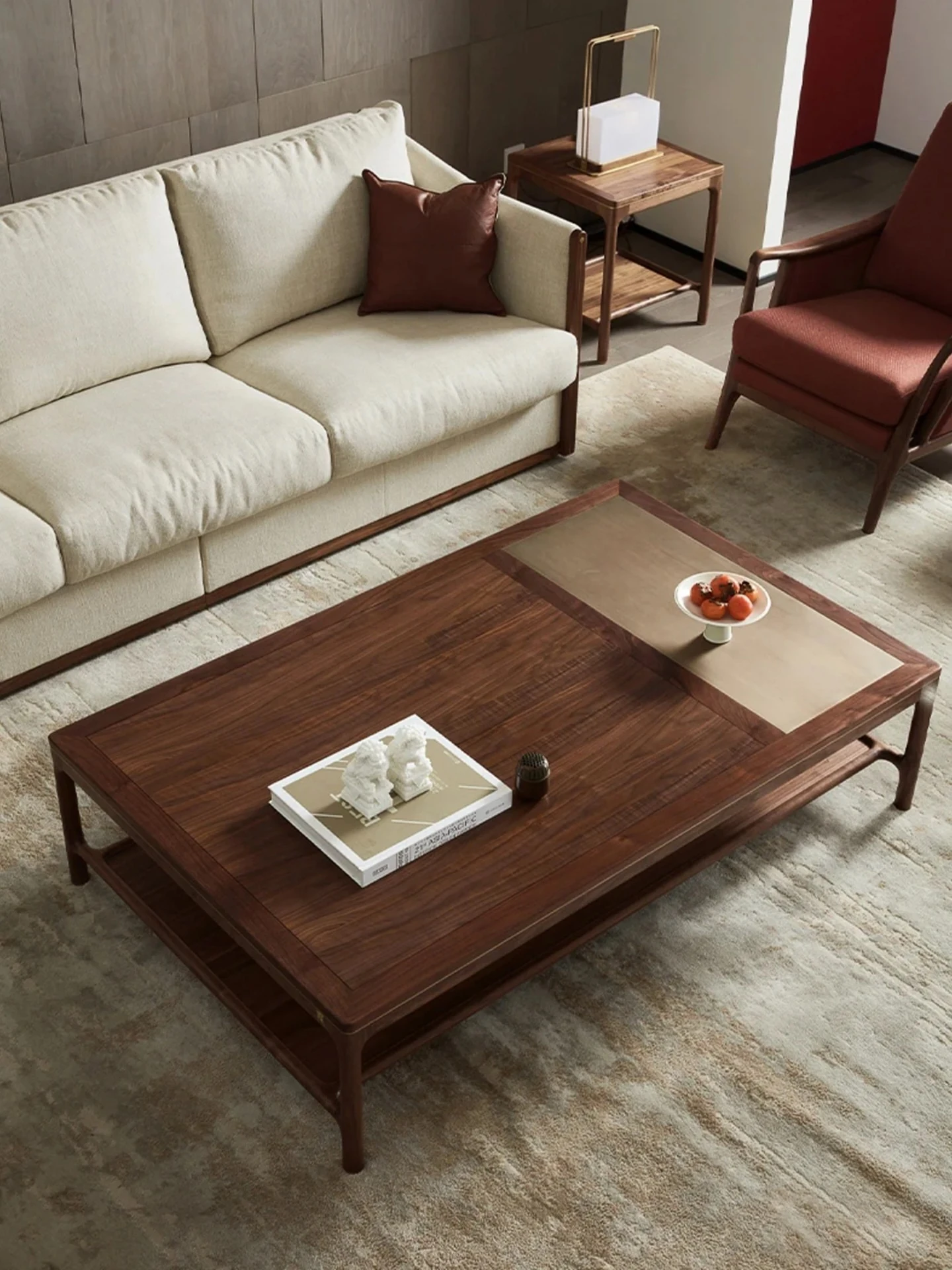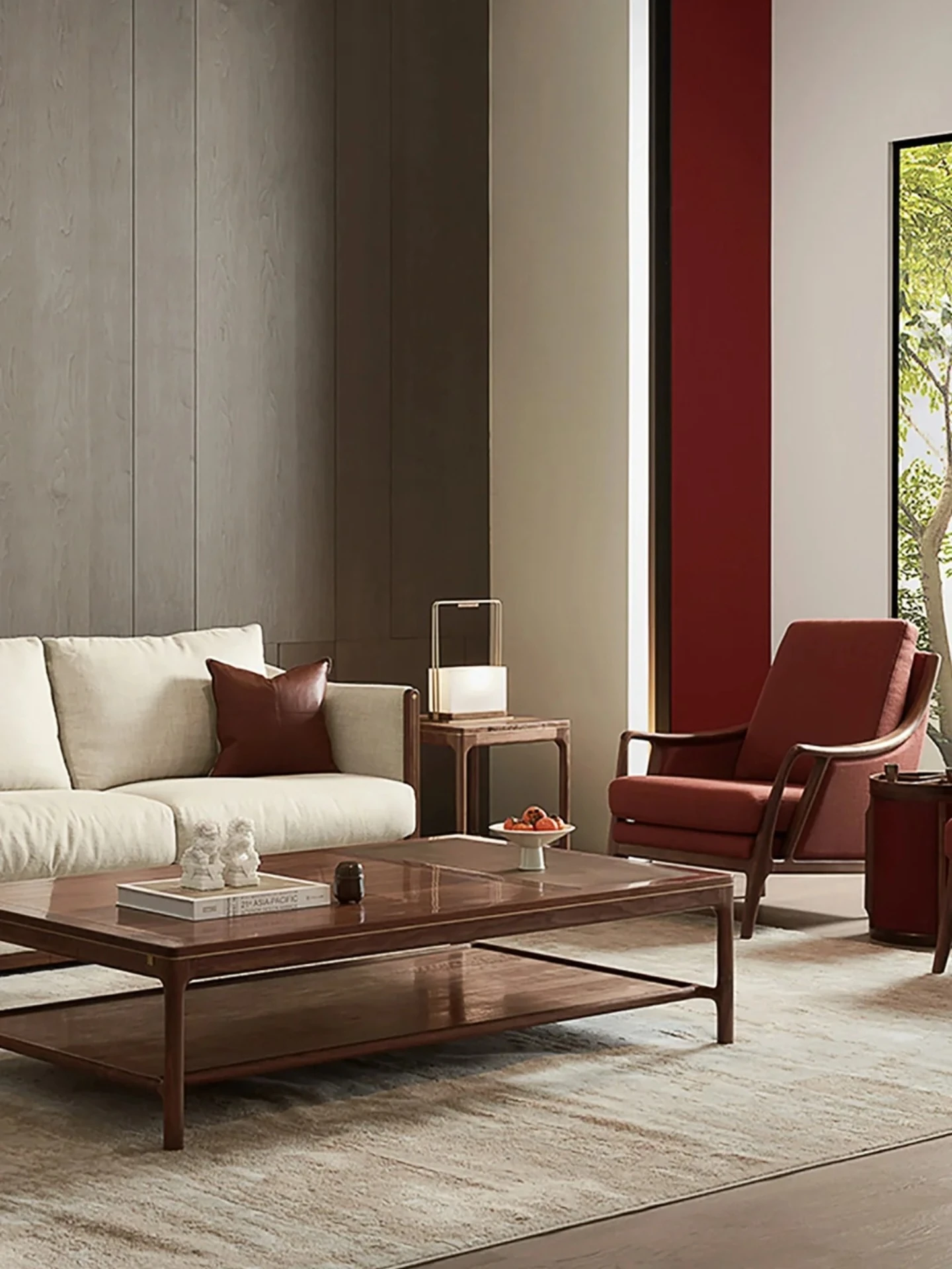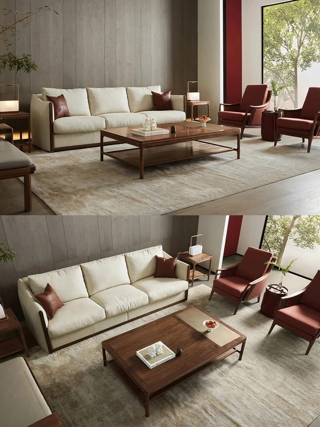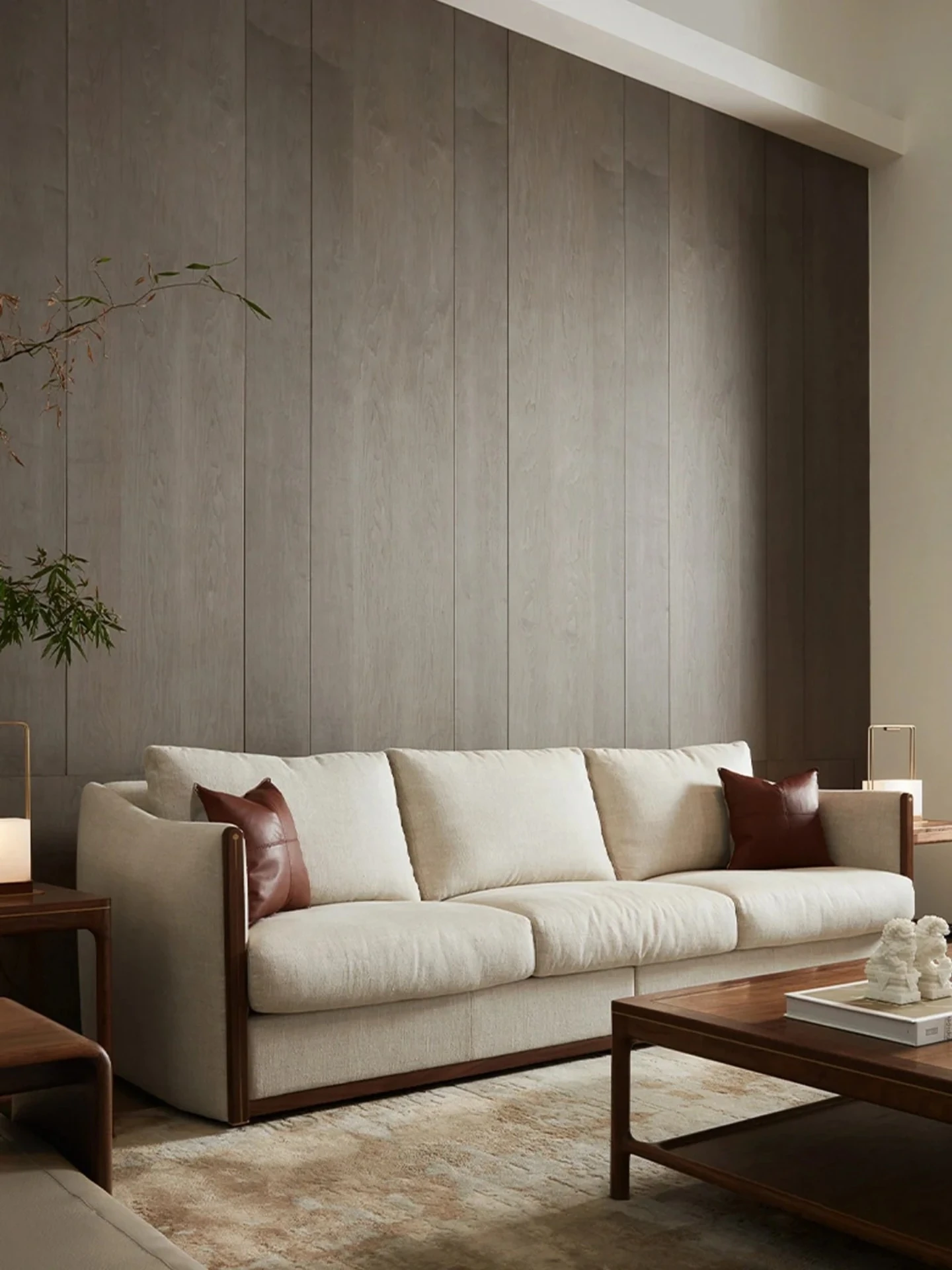 Modern Minimalist Solid Wood Sofa Set - New Chinese Style, Zen-Inspired Living Room Furniture for Villas, Available in 3-Seater and 4-Seater Options. Perfect for Elegant and Tranquil Home Décor.