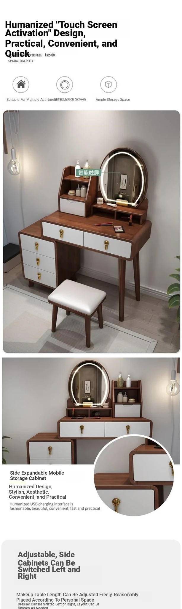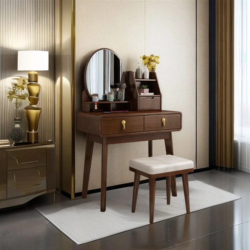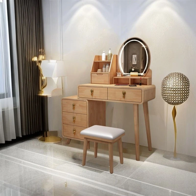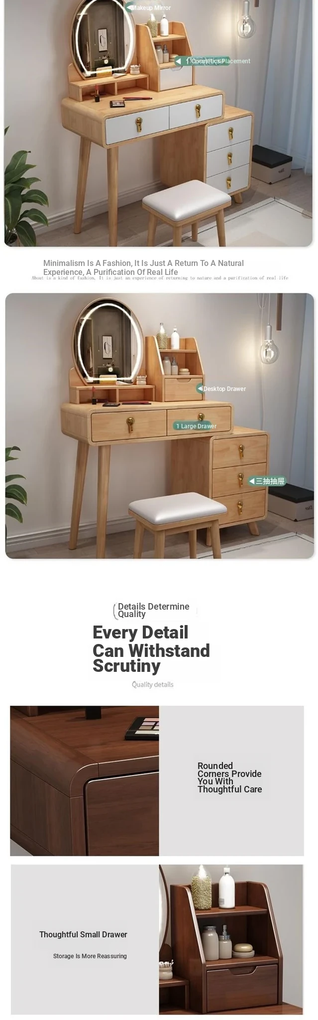 Modern Minimalist Solid Wood Vanity Table for Small Spaces - Stylish and Functional Makeup Desk with Storage for Bedrooms