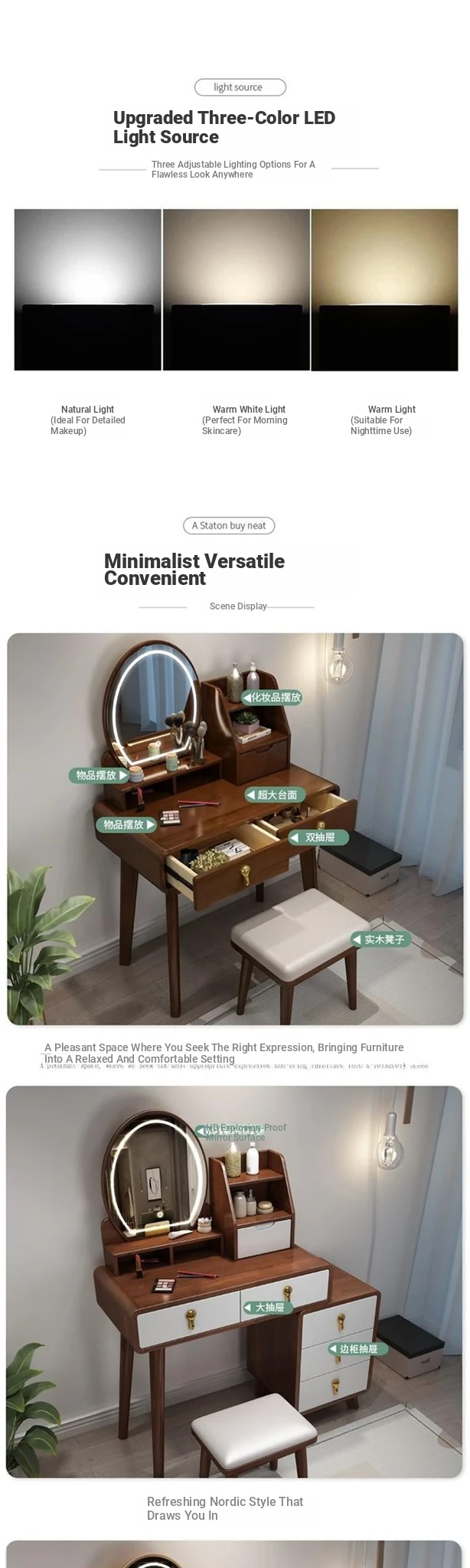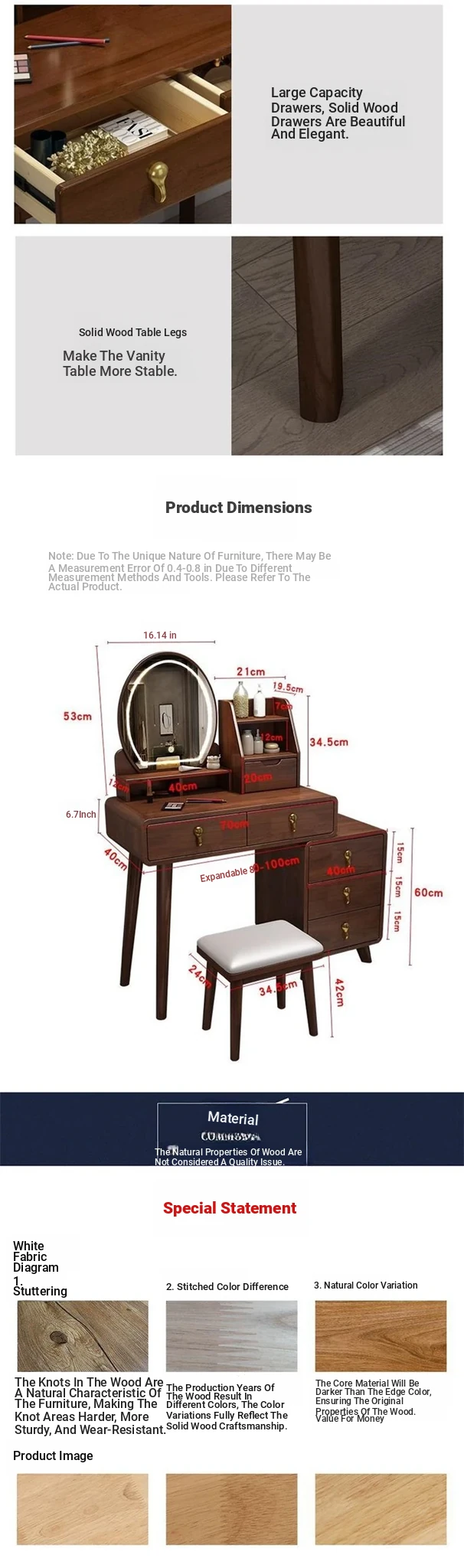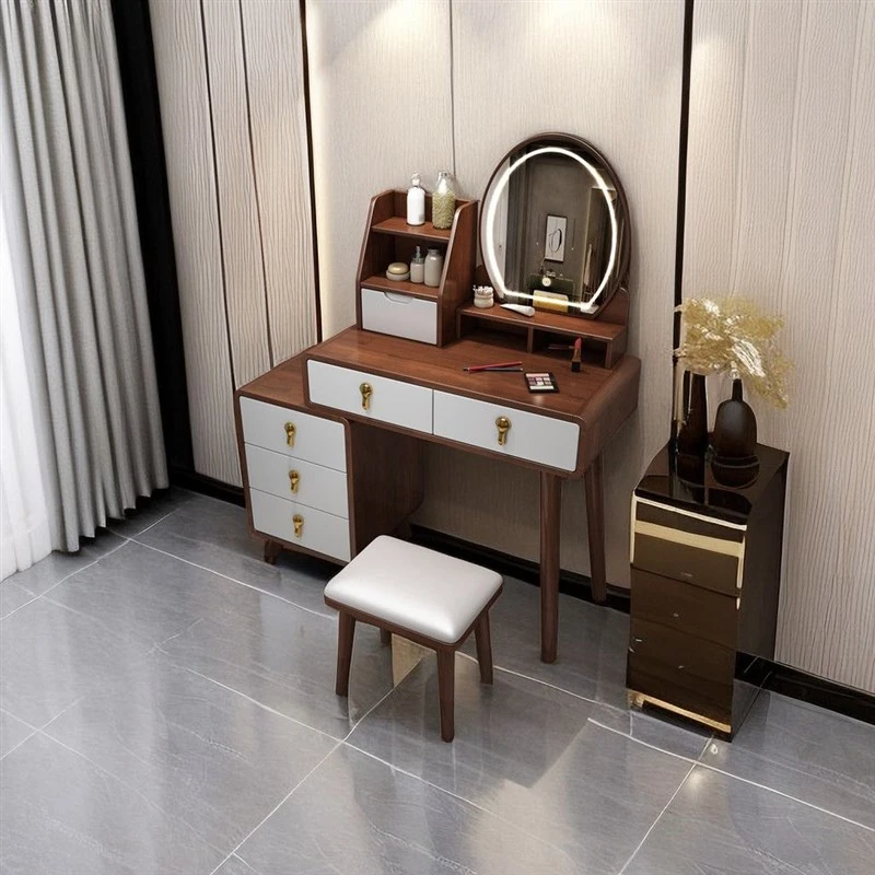 Modern Minimalist Solid Wood Vanity Table for Small Spaces - Stylish and Functional Makeup Desk with Storage for Bedrooms