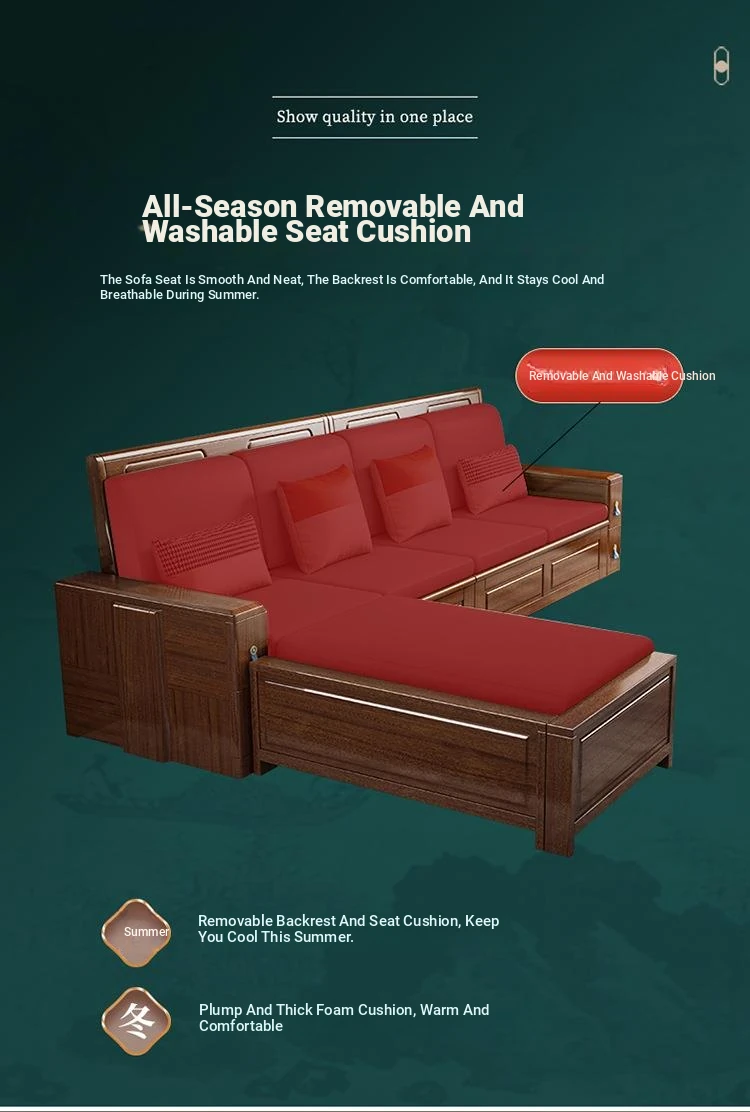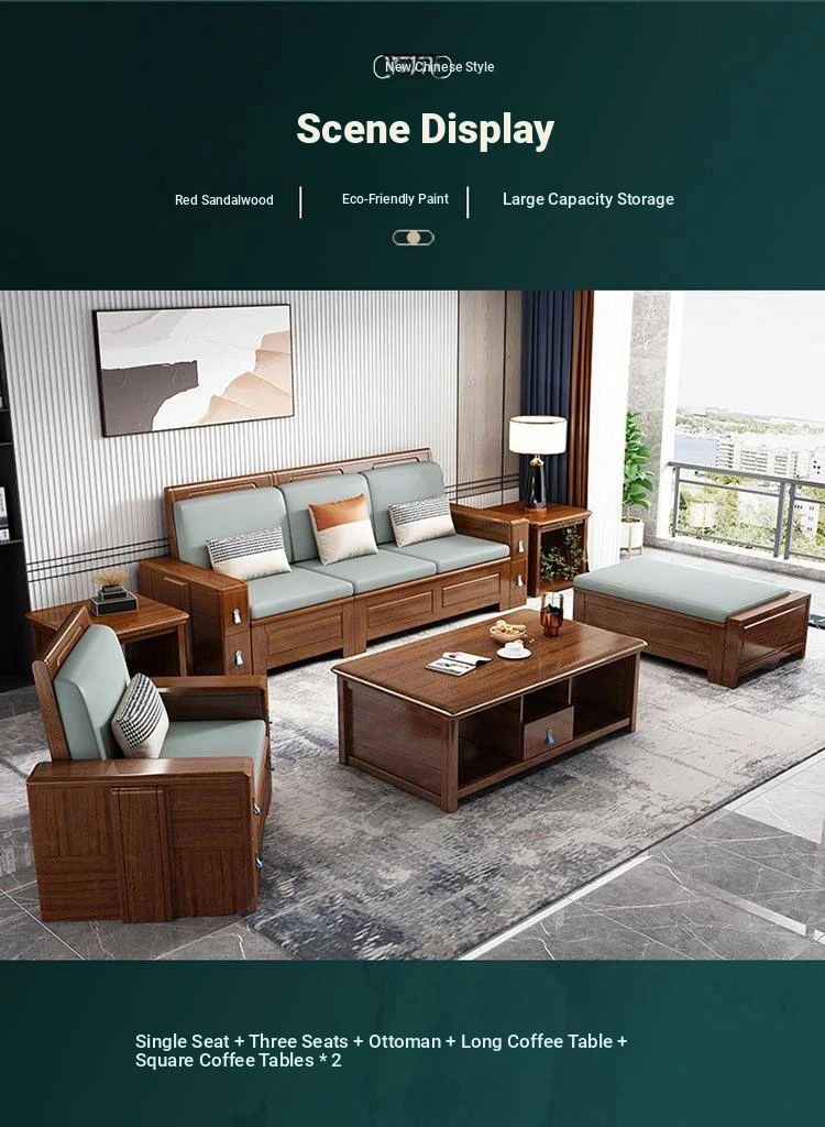 Modern New Chinese Red Sandalwood Sofa - Minimalist Luxury Chaise Lounge Combination for Living Room Furniture - Manufacturer Direct