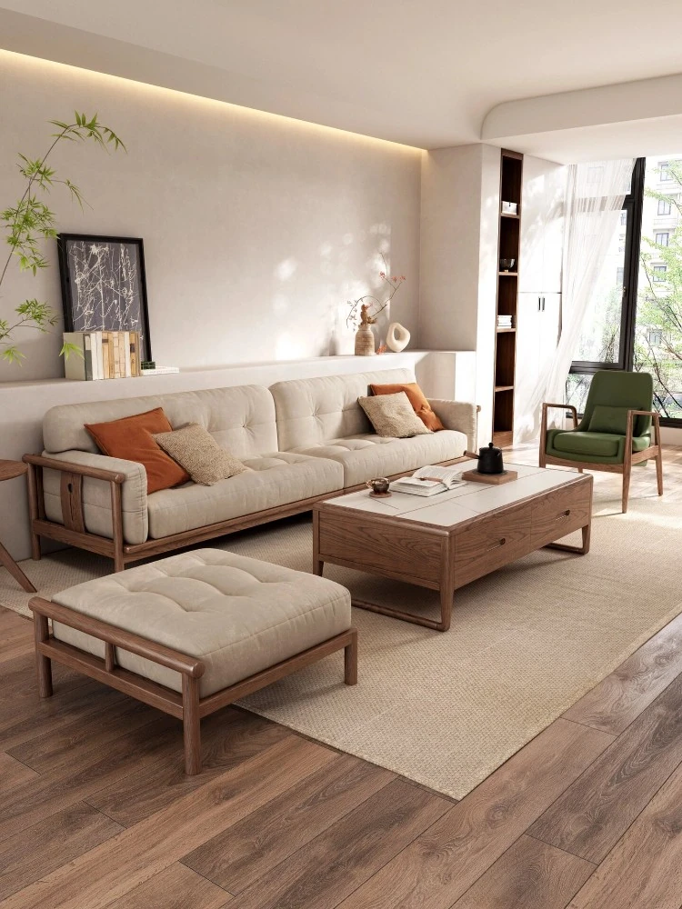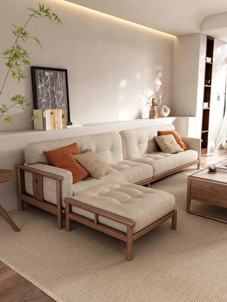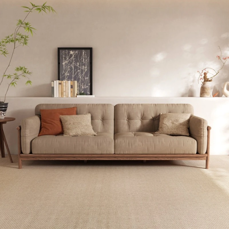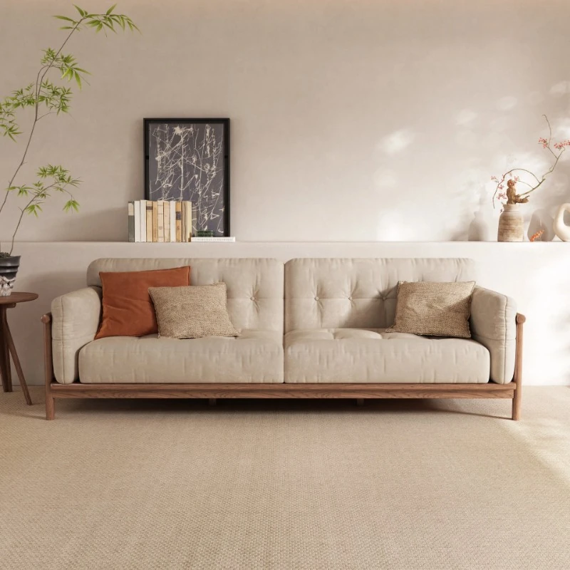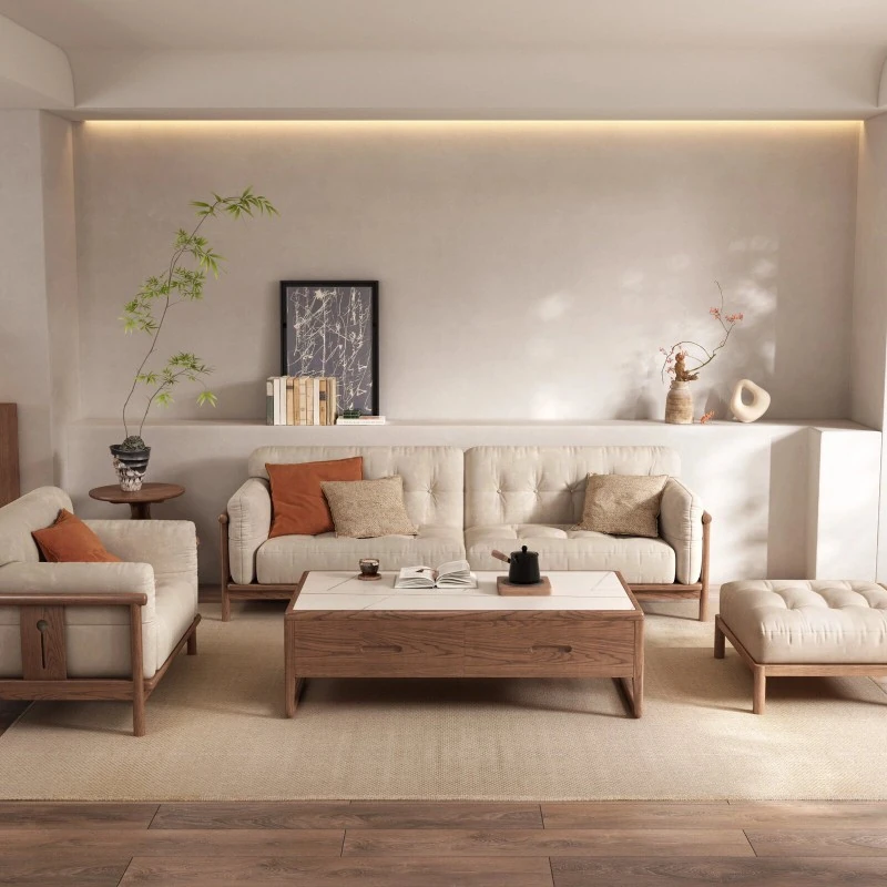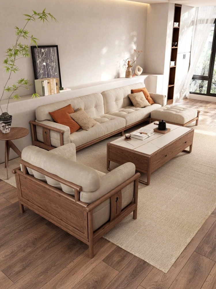 Modern Zen Style Solid Wood Sofa Set - Minimalist Mortise and Tenon Frame with Soft Fabric Upholstery for a Cozy Living Space