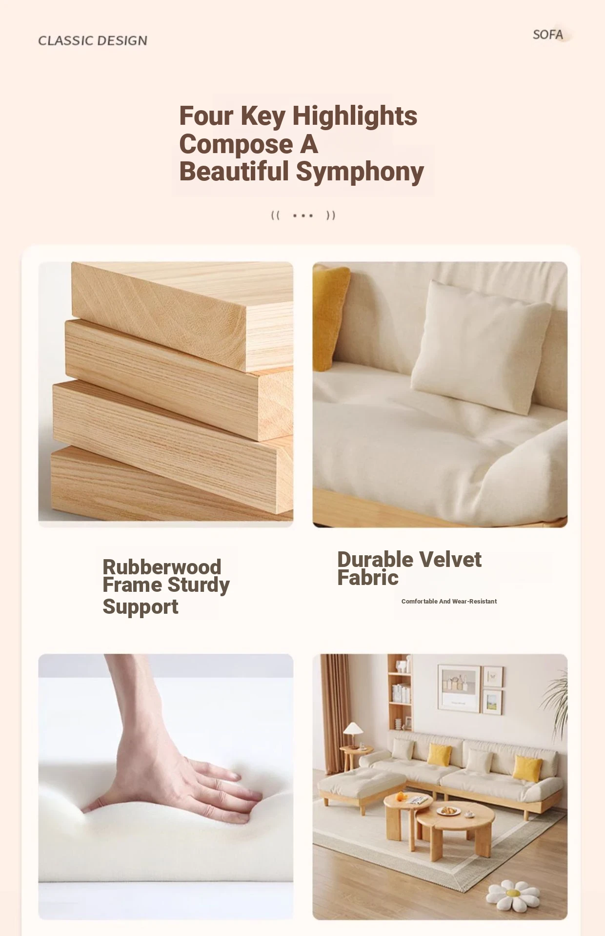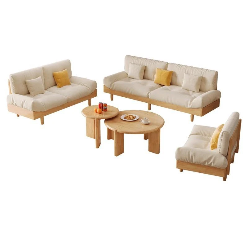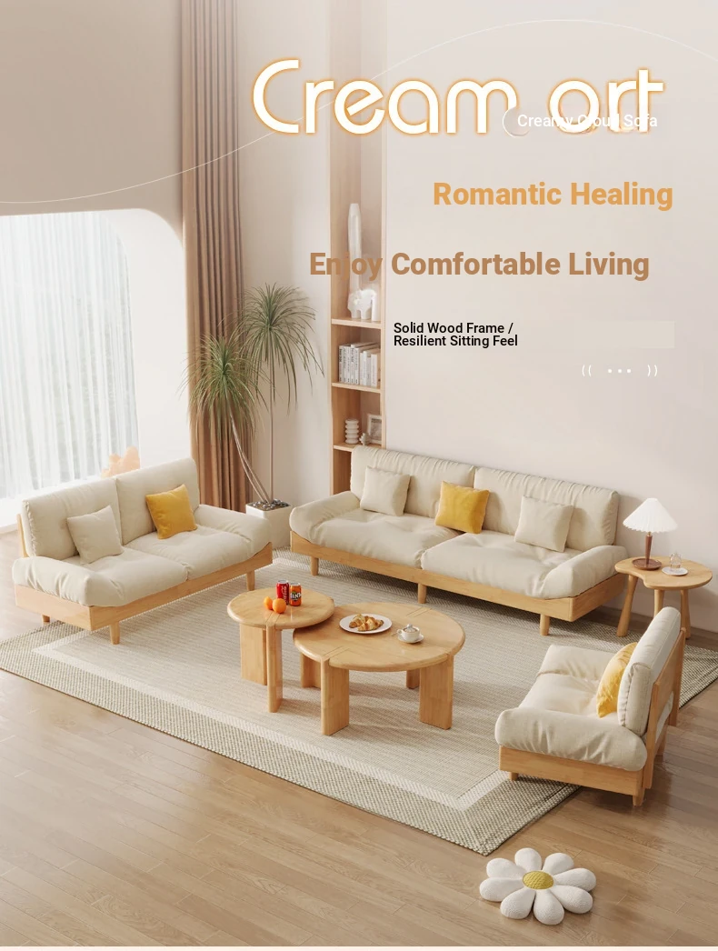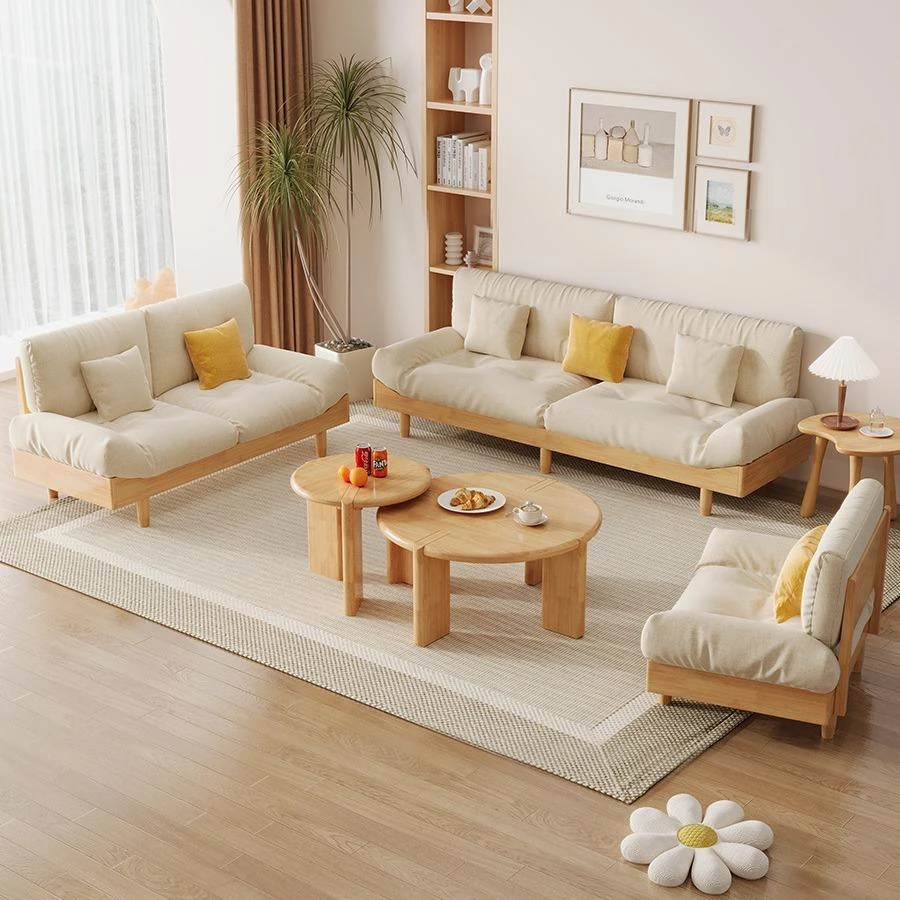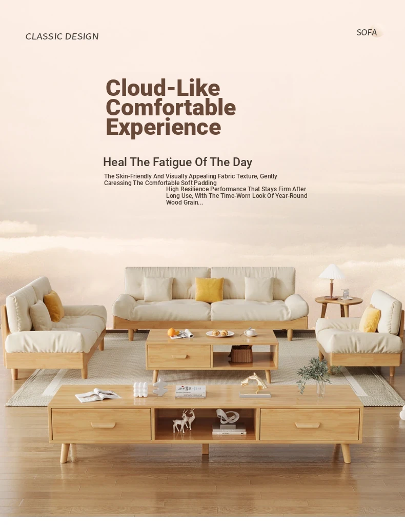 Nordic Japanese Cloud Fabric Sofa - Modern Minimalist Solid Wood Couch for Small Living Rooms, Perfect for Relaxation and Style.