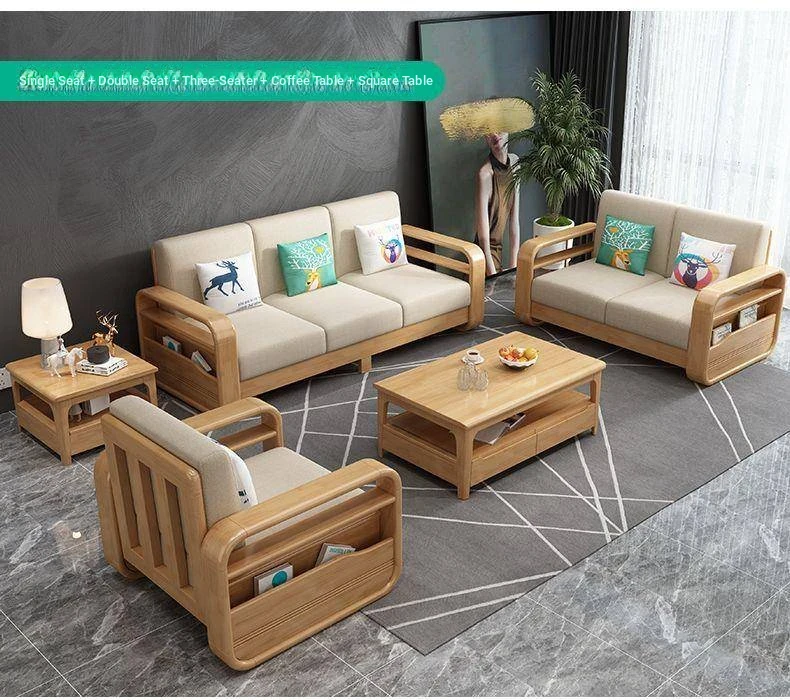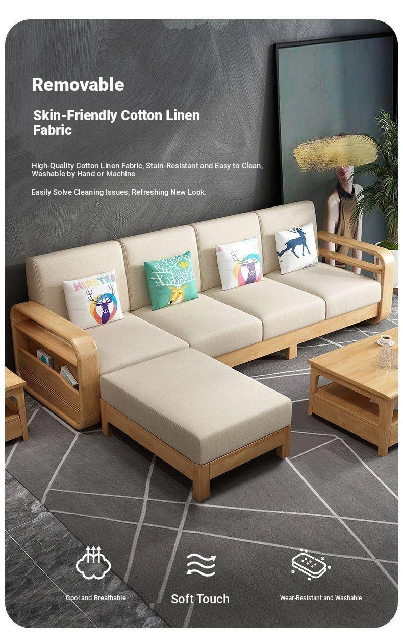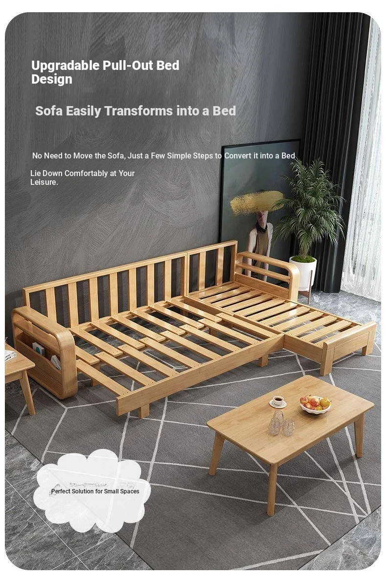 Nordic Solid Wood Sofa - Versatile Multi-Functional Furniture for Small Apartments and Offices, Perfect for Living Rooms, Dual-Season Use with Pull-Out Bed