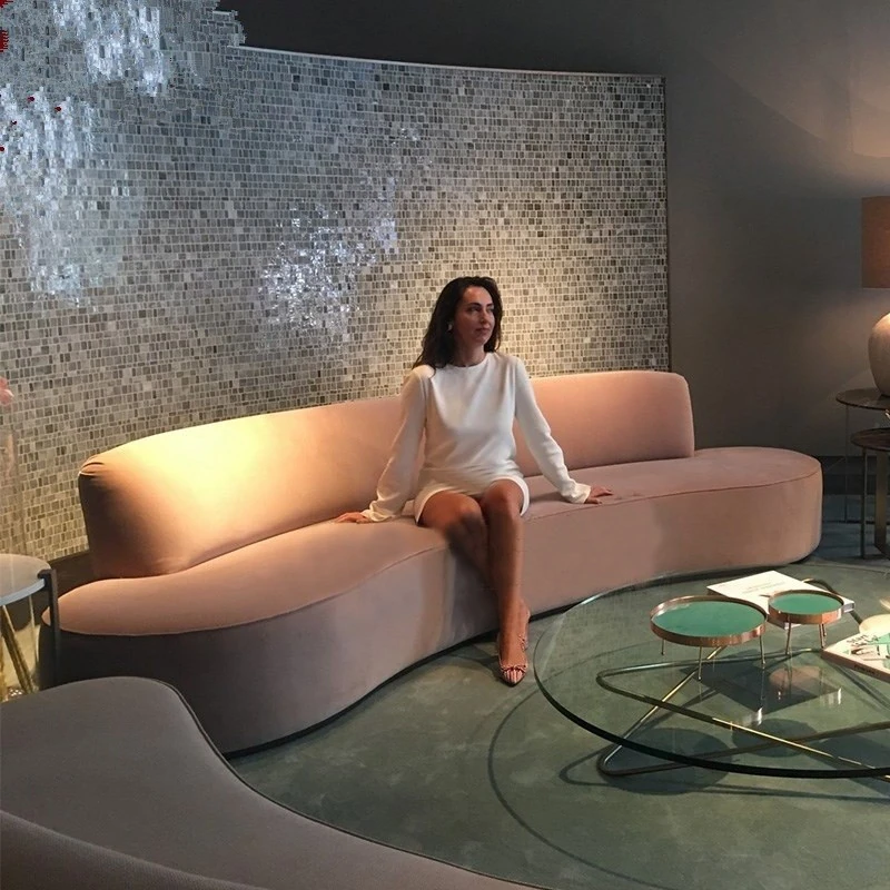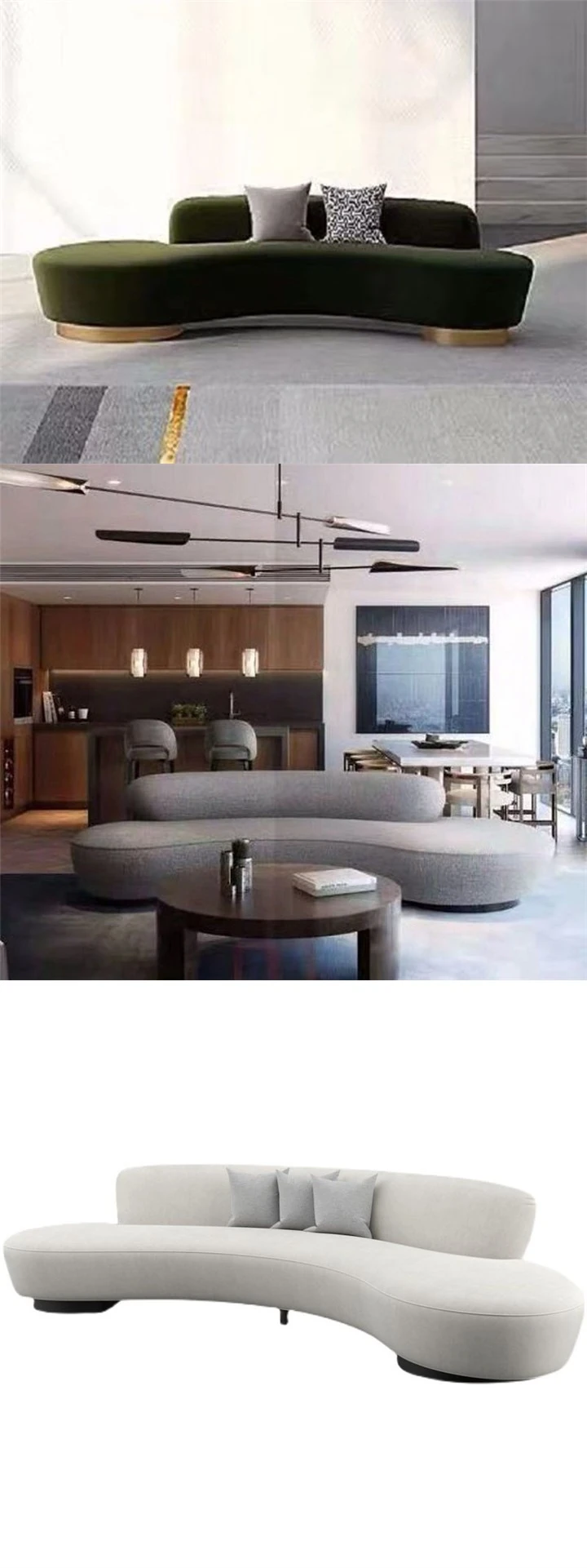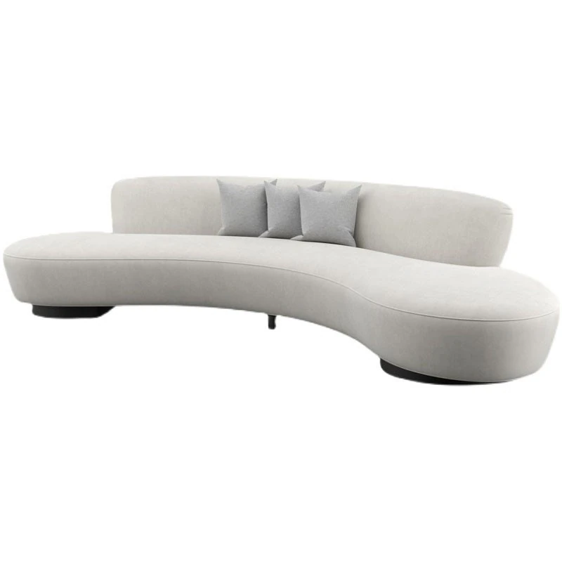 Nordic Style Curved Sofa - Modern Lounge Three-Seater, Unique Shaped Fabric Sofa for Fashion Stores and Event Spaces.