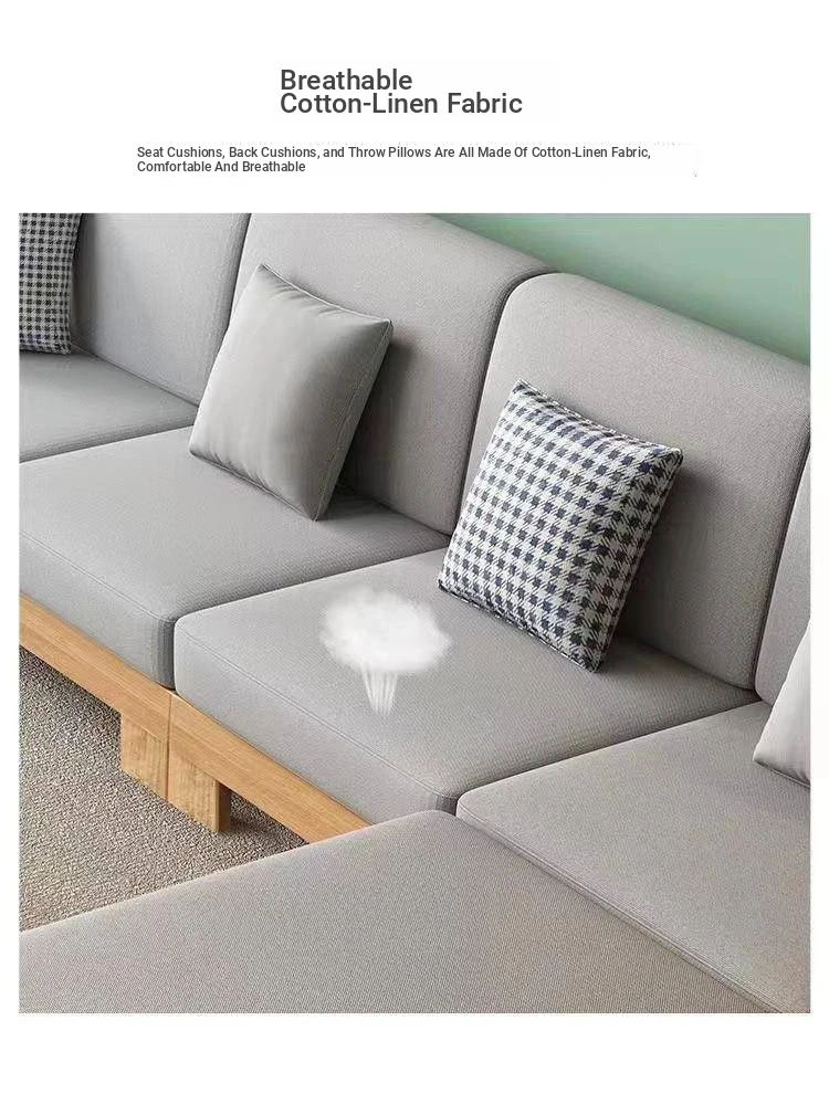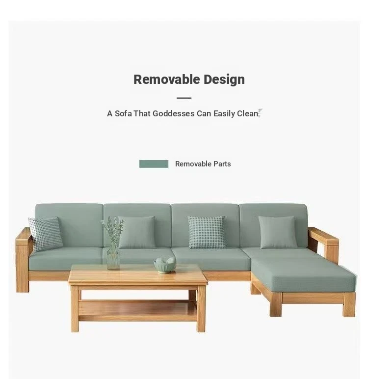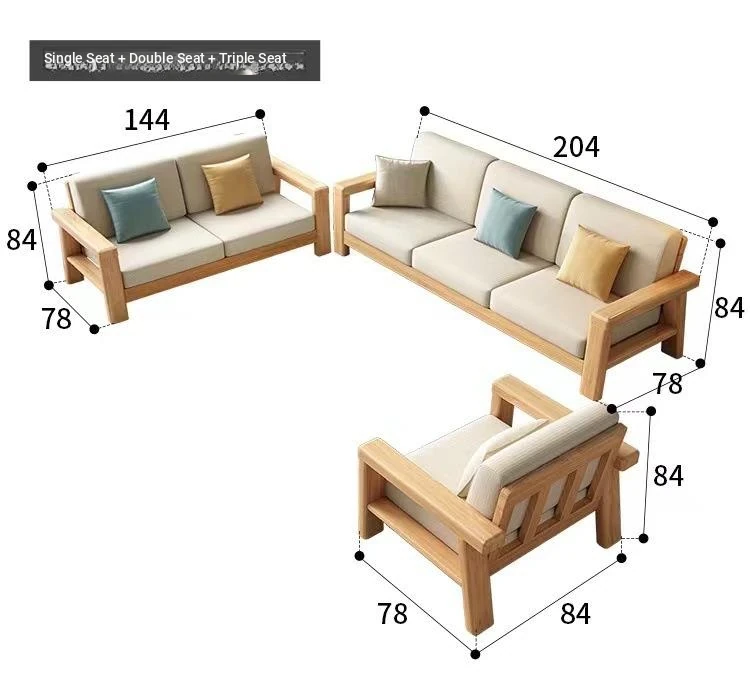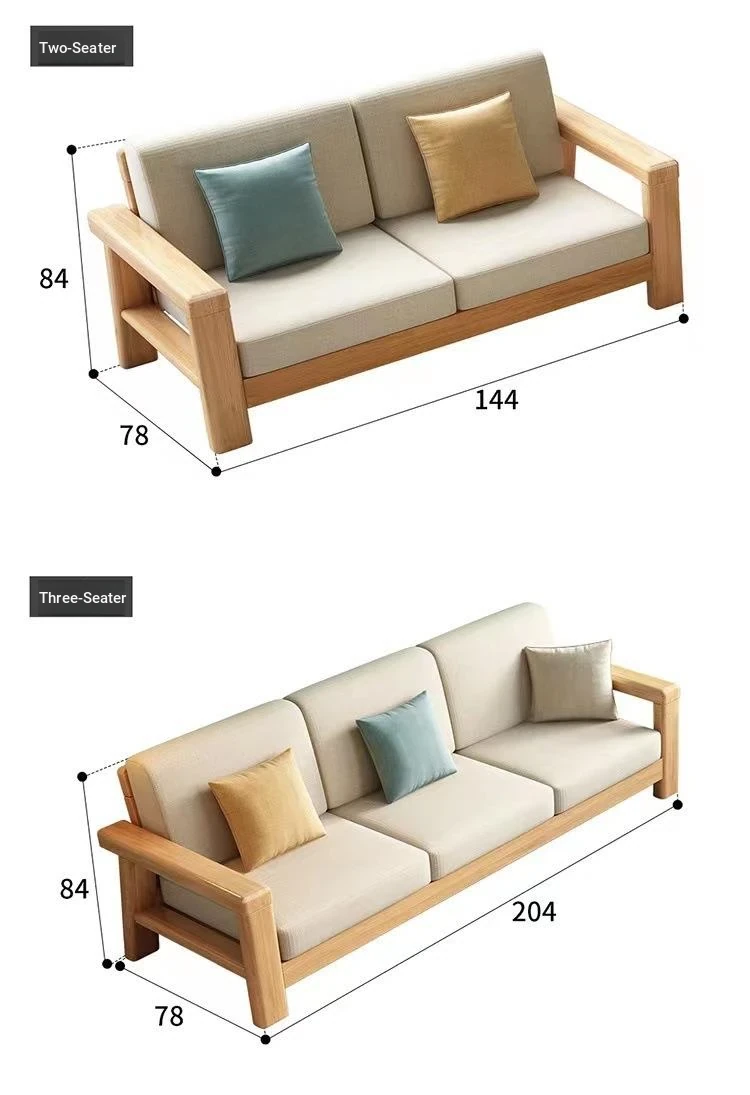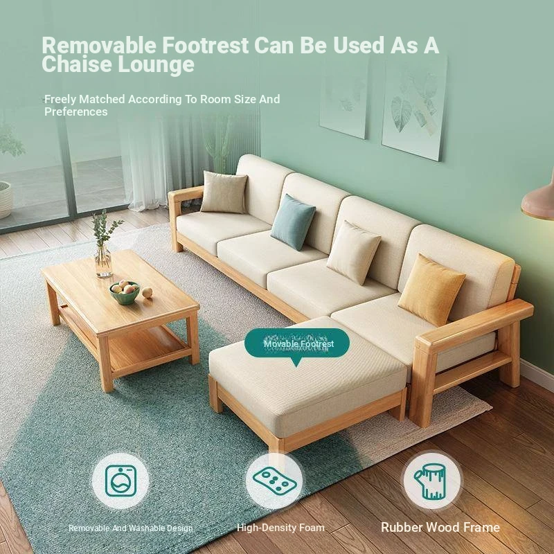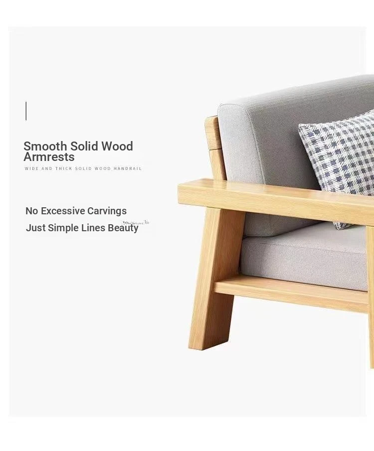 Nordic Style Solid Wood Sofa Set – Removable and Washable 3-Seater Fabric Sofa for Small Spaces – Minimalist Modern Living Room Design in Natural Wood
