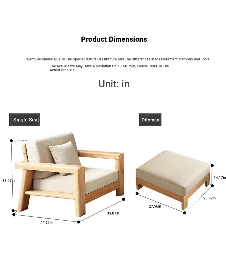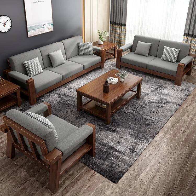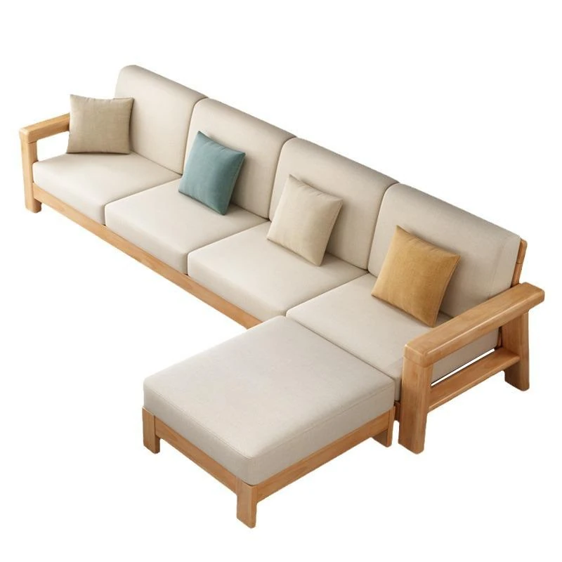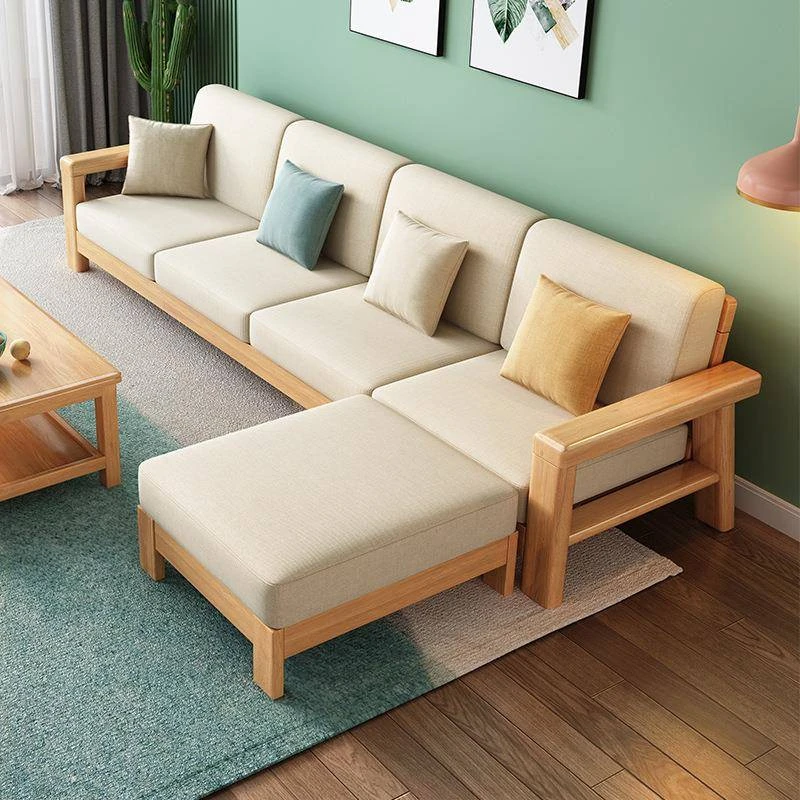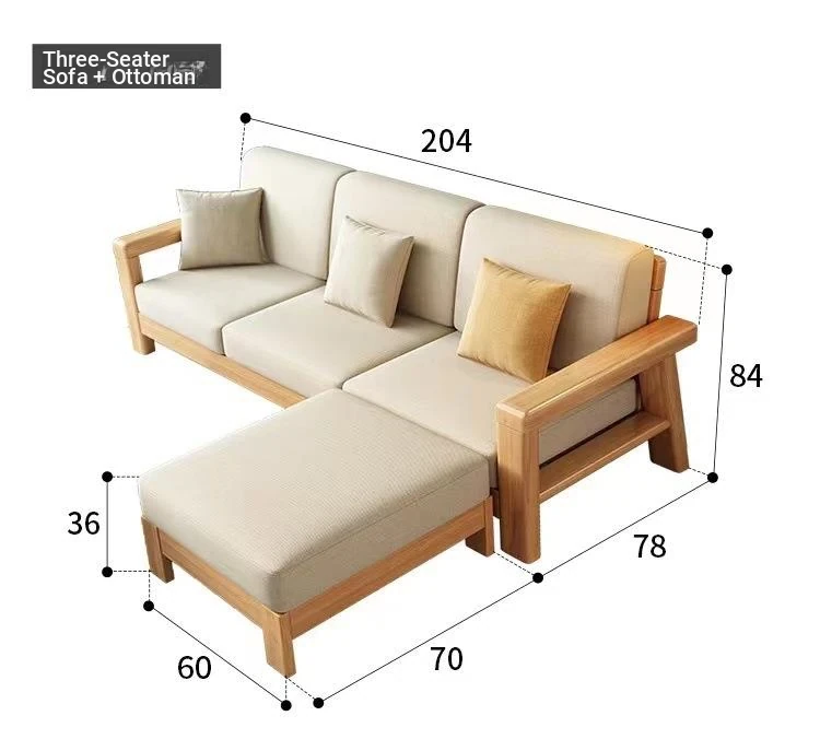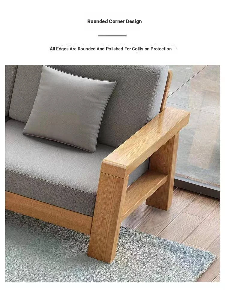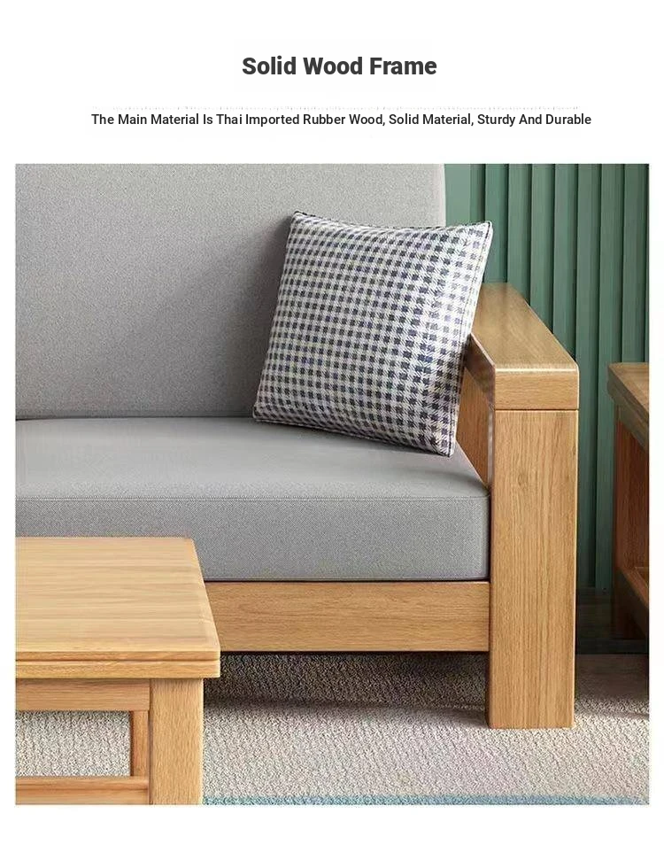 Nordic Style Solid Wood Sofa Set – Removable and Washable 3-Seater Fabric Sofa for Small Spaces – Minimalist Modern Living Room Design in Natural Wood
