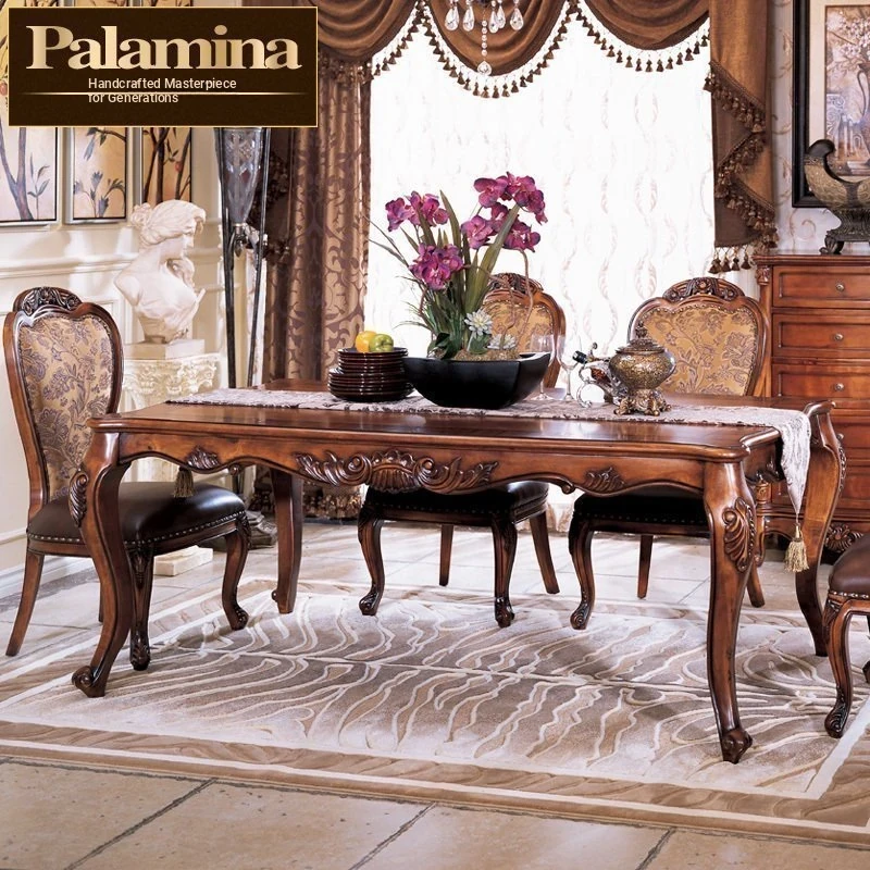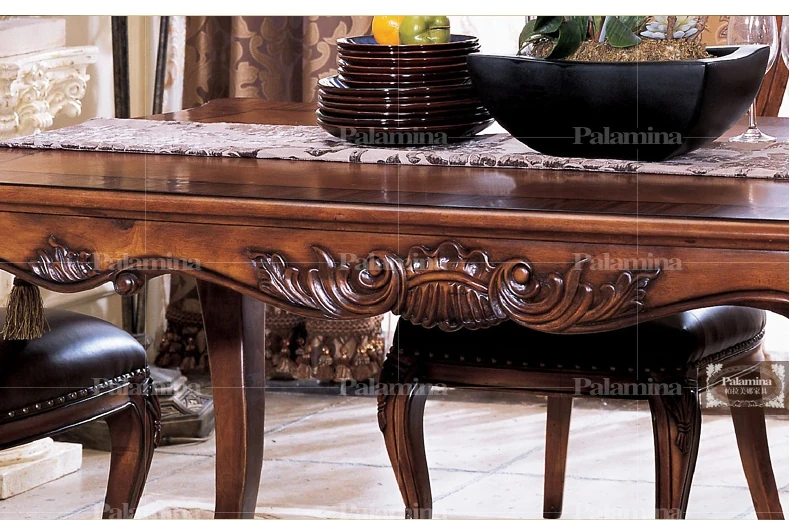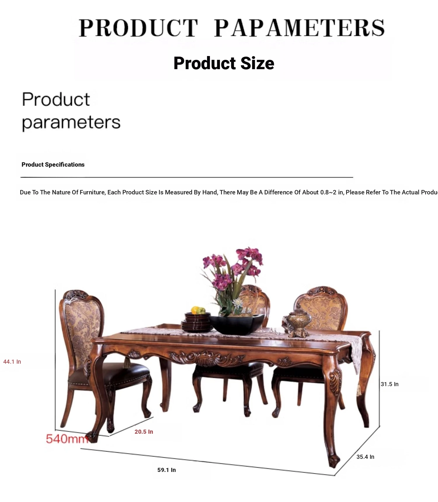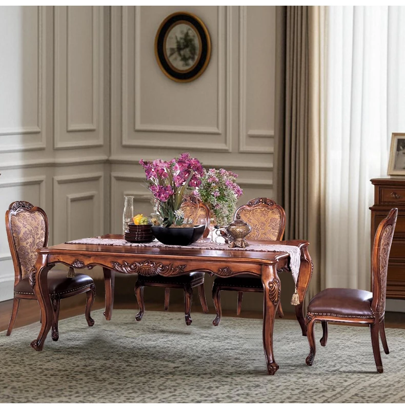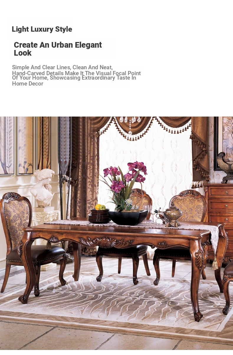 Paramina European-Style Solid Wood Carved Dining Table with Chairs - Classic American Design XA-101, Perfect for Elegant Dining Experiences