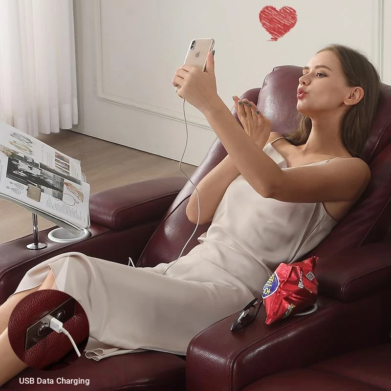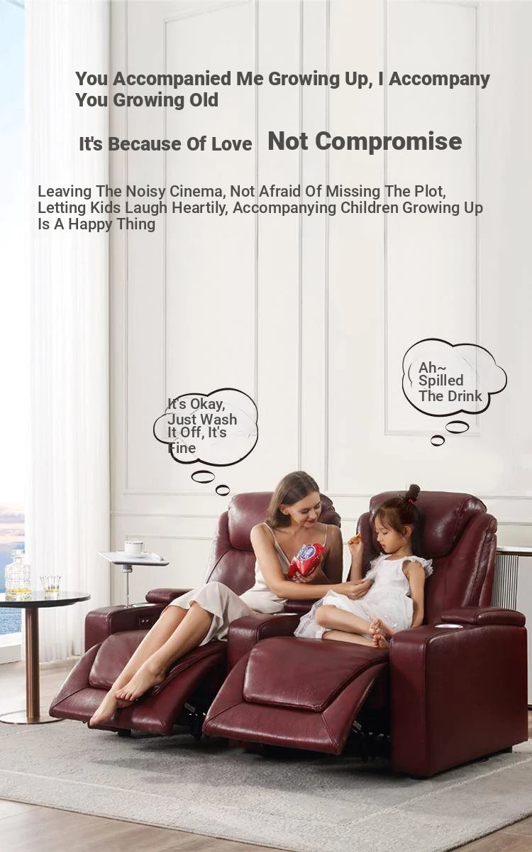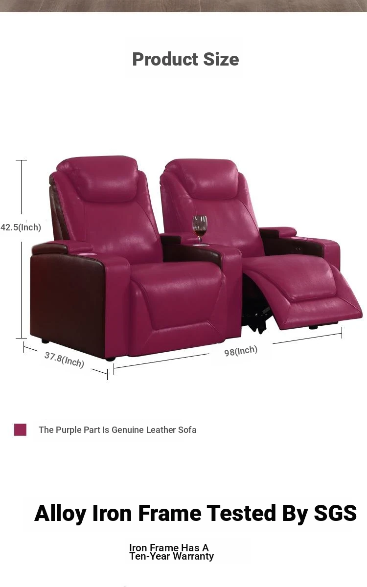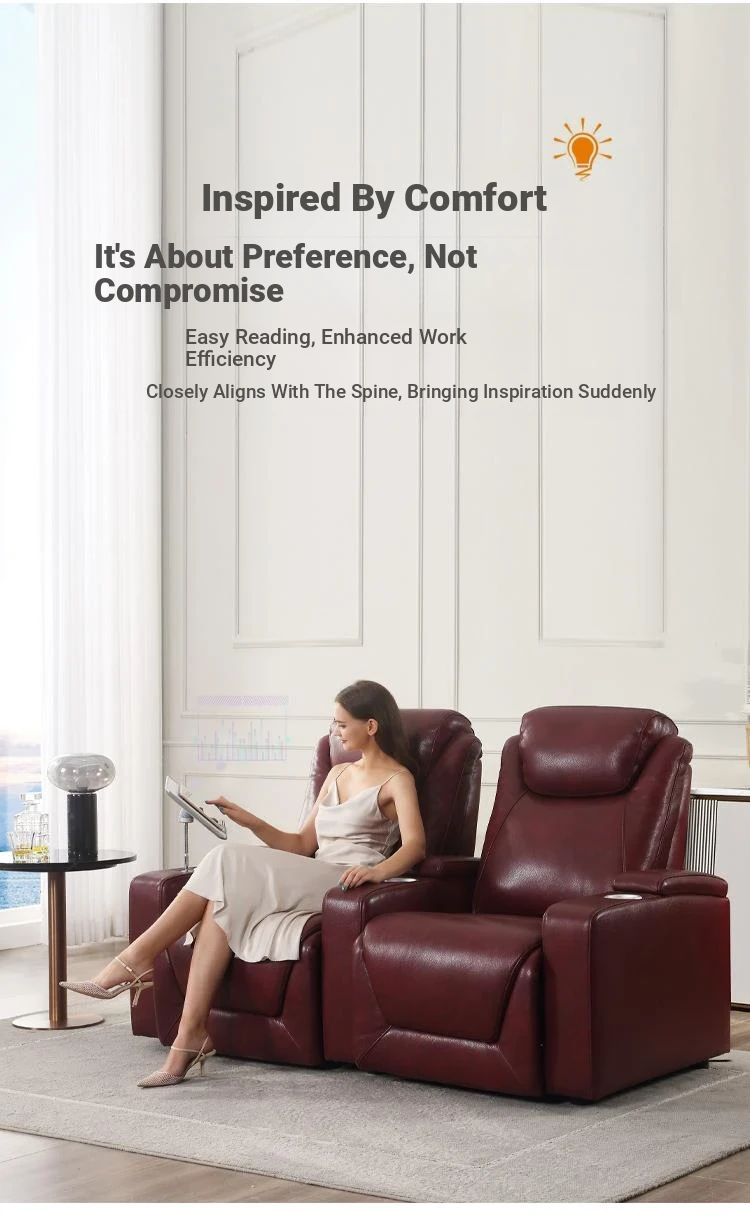 Premium High-Back Genuine Leather Home Theater Sofa - Luxurious Electric Recliner for Villas and Living Rooms