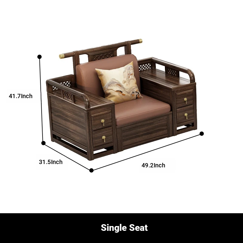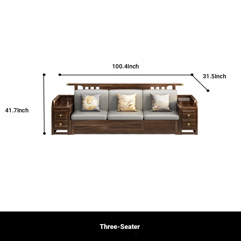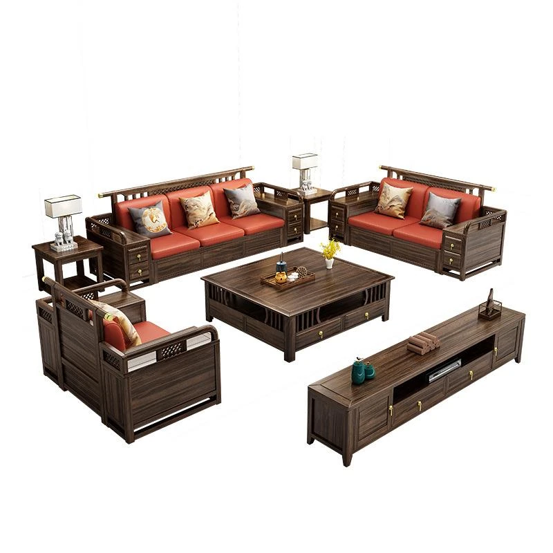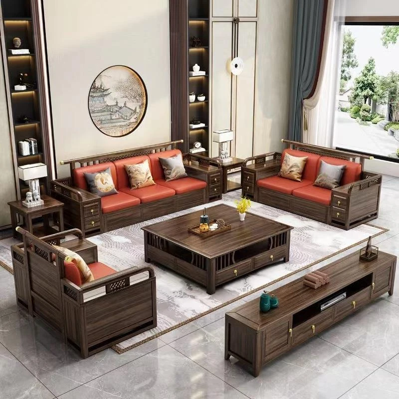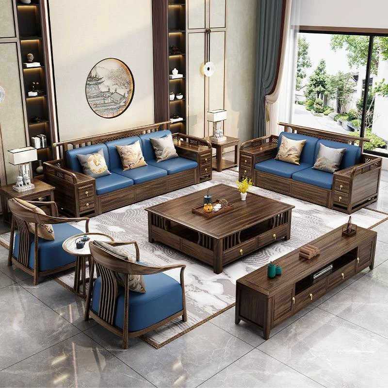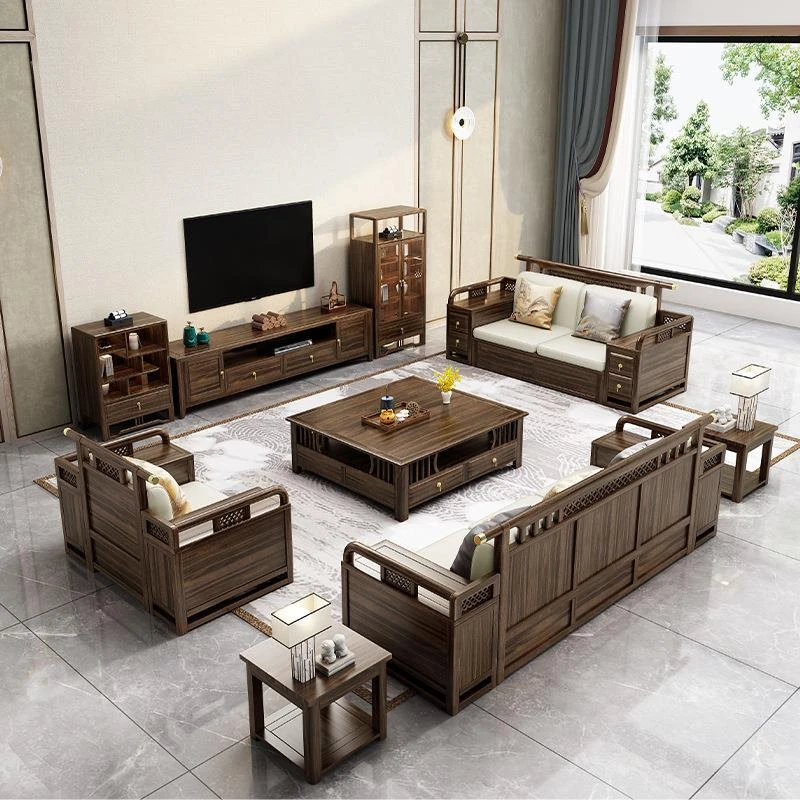 Premium Solid Wood Sofa Set - Luxurious Black Gold Wood Living Room Furniture for Villas and Spacious Homes - Elegant New Chinese Style Design