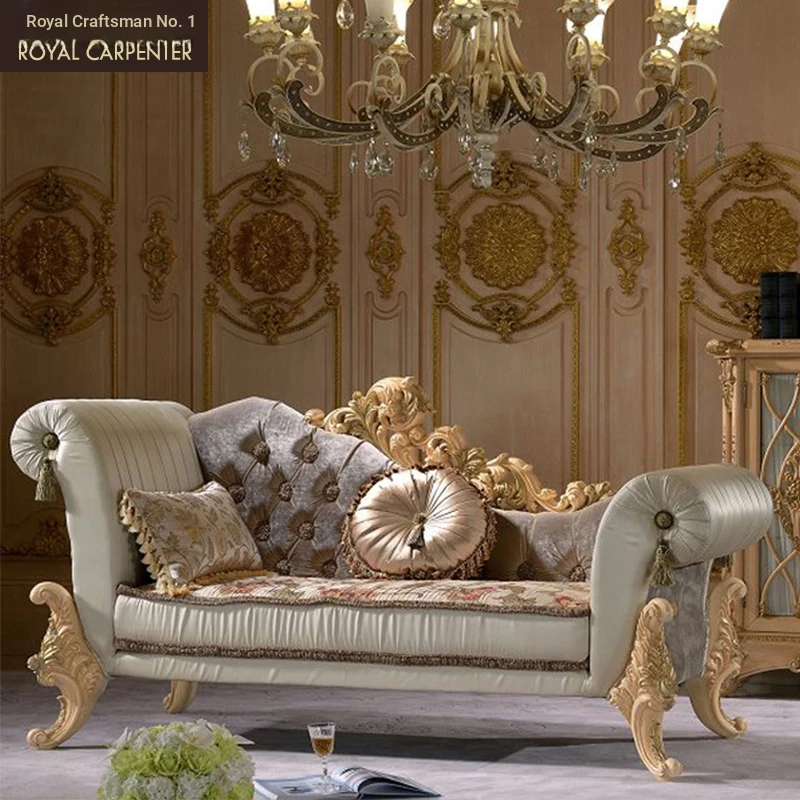 Royal Artisan No. 1 European Style Chaise Lounge - Elegant Bedroom and Living Room Sofa with Solid Wood Frame and Fabric Upholstery - Perfect for Relaxation and Sophistication