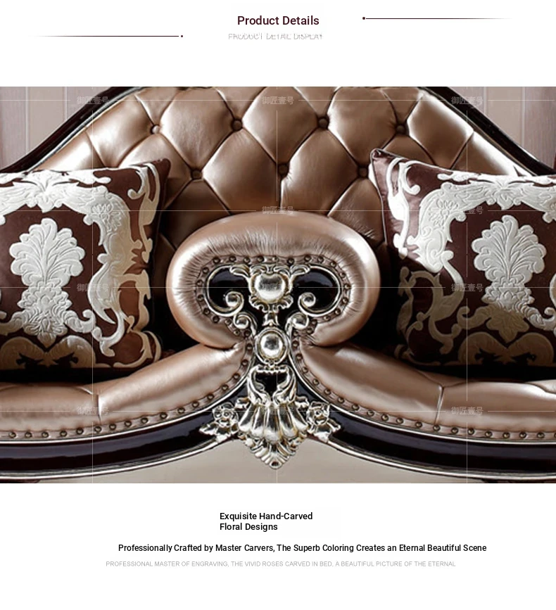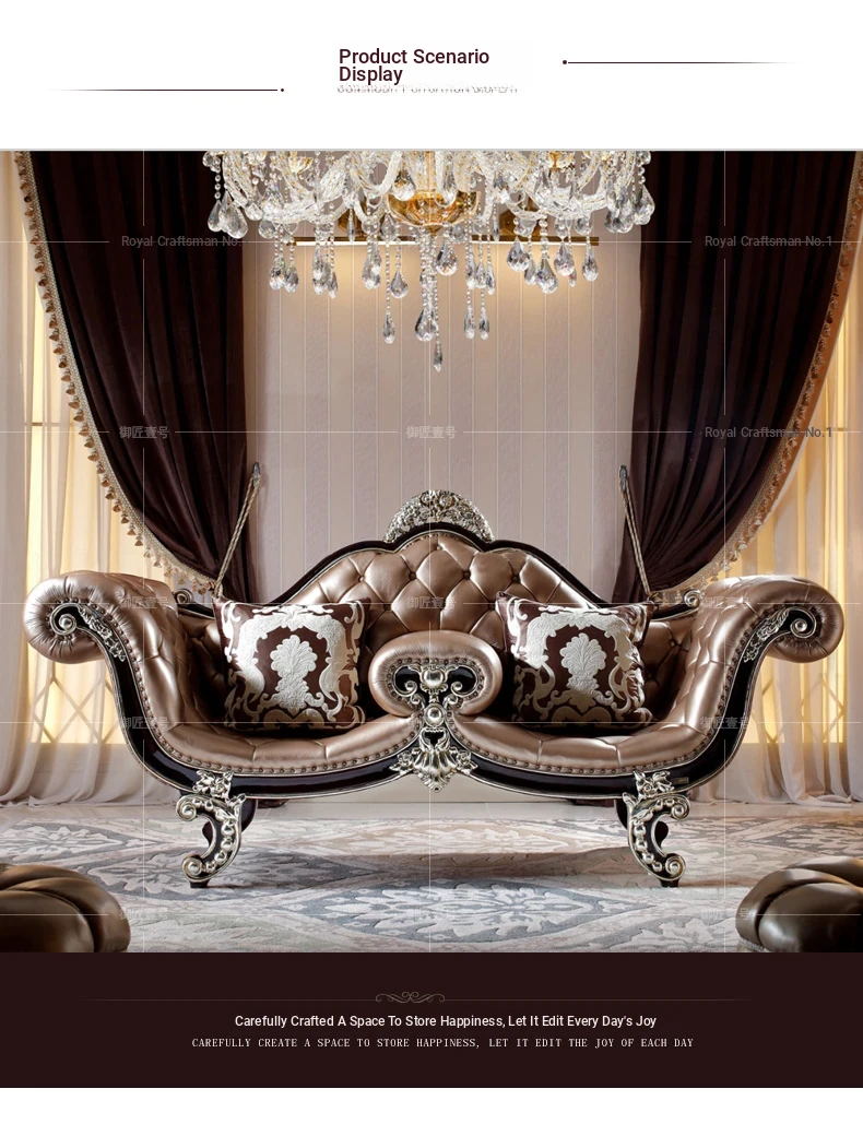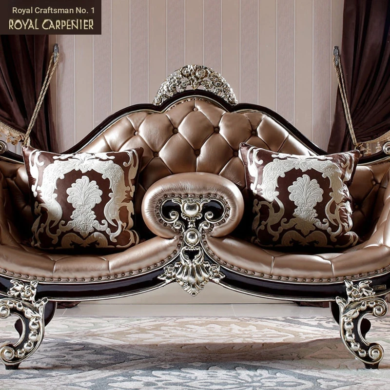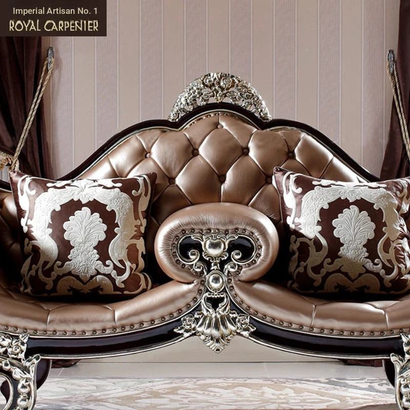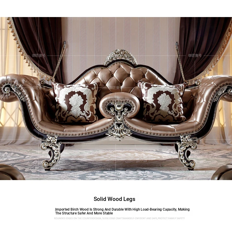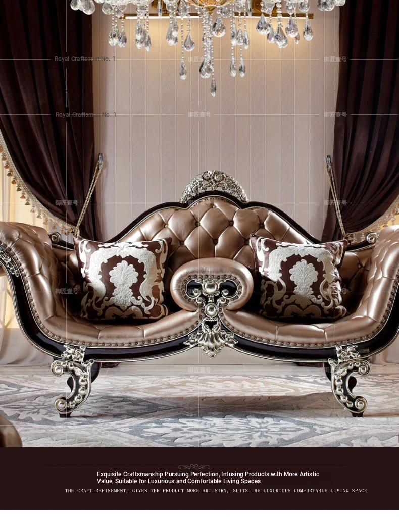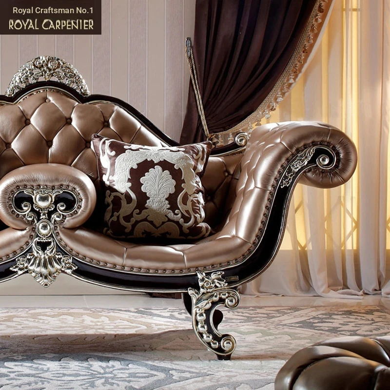 Royal Artisan No. 1 European Style Living Room Furniture - New Classical Genuine Leather Tufted Loveseat and Chaise Lounge for Spacious Homes