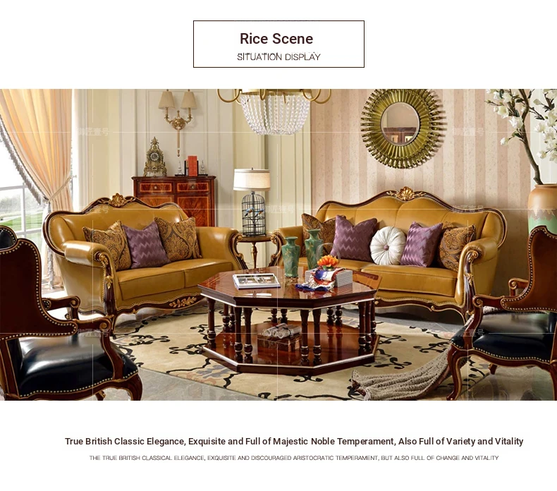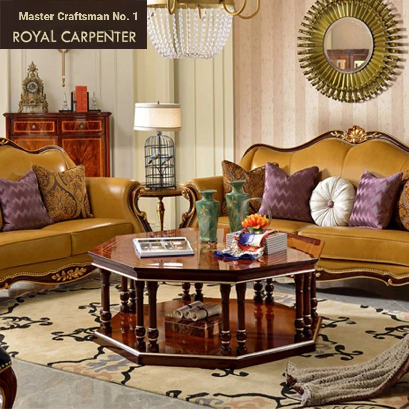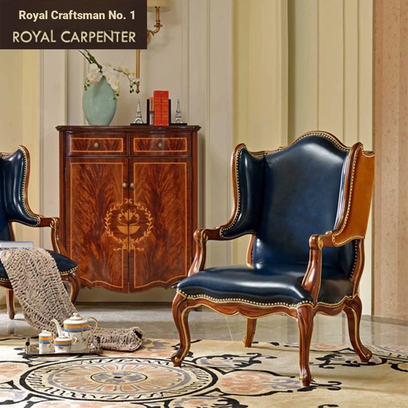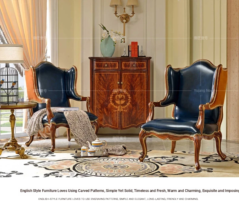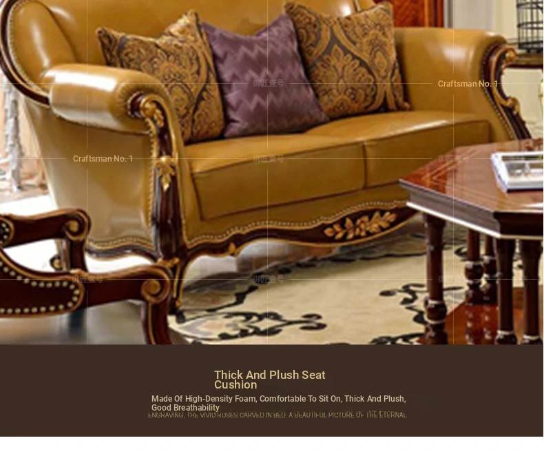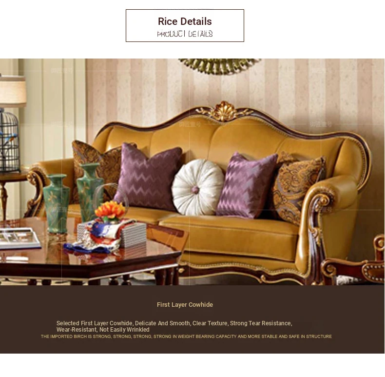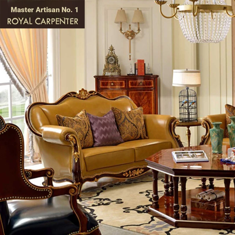 Royal Artisan No.1 English Villa Living Room Furniture - Luxury Solid Wood Carved Genuine Leather Sofa Set for Spacious Homes, 3-Seater Design