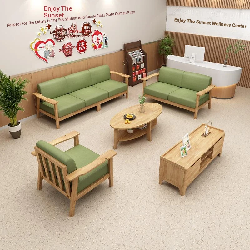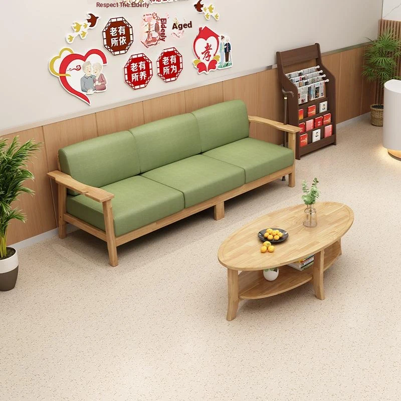 Solid Wood Elderly-Friendly Sofa Set for Wellness Centers - Removable and Washable, Ideal for Nursing Homes, Featuring Wide Armrests for Comfort and Support