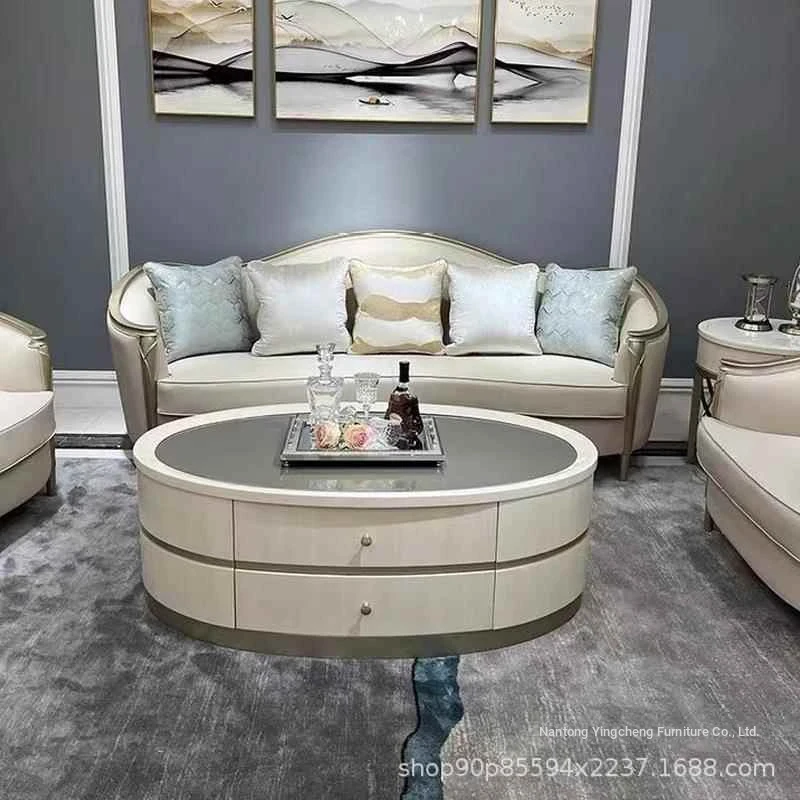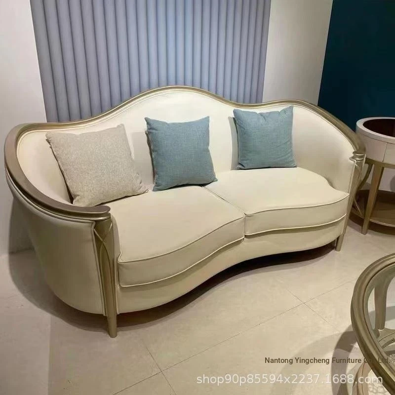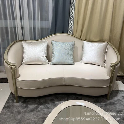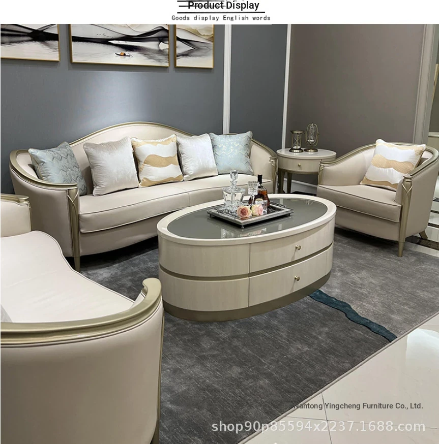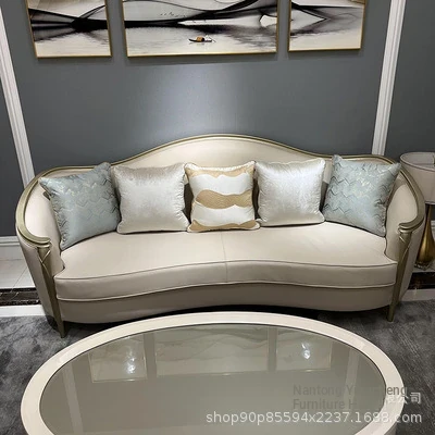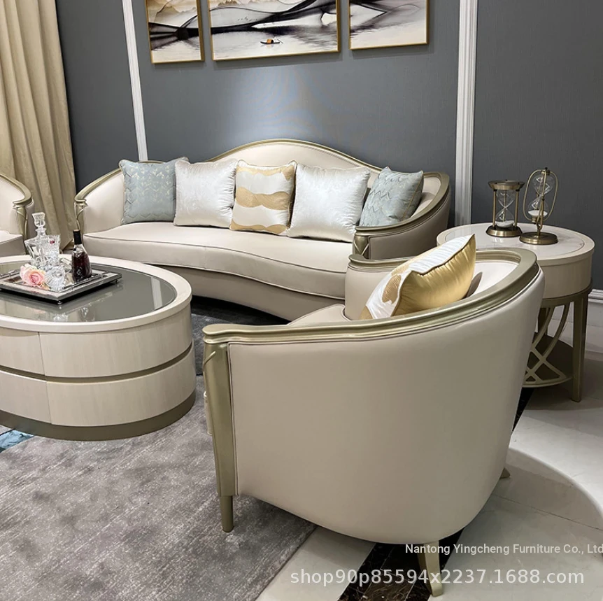 Stylish American Luxury Sofa Set - Modern Minimalist Design for Suites and Villas, Premium Solid Wood and Leather Furniture