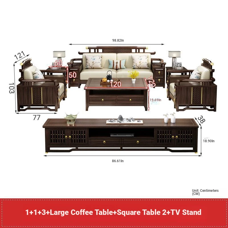 1+1+3 + big coffee table + square 2 + TV cabinet