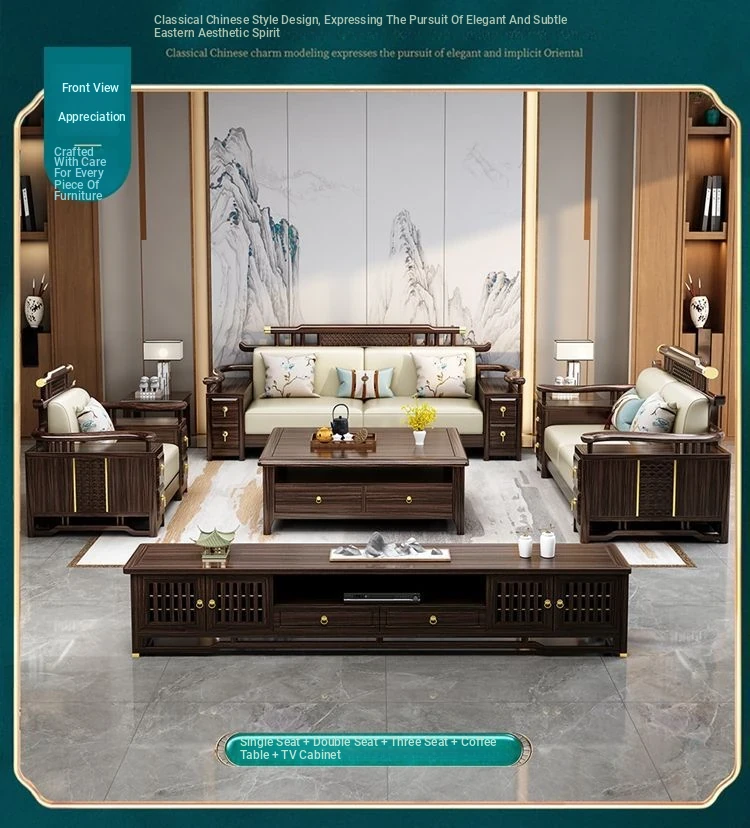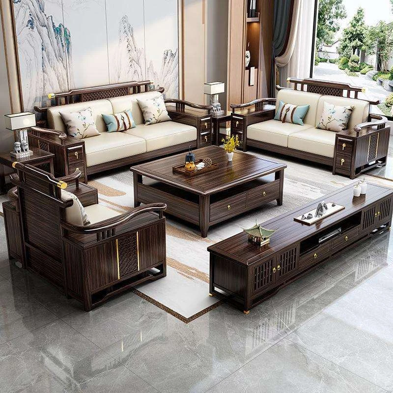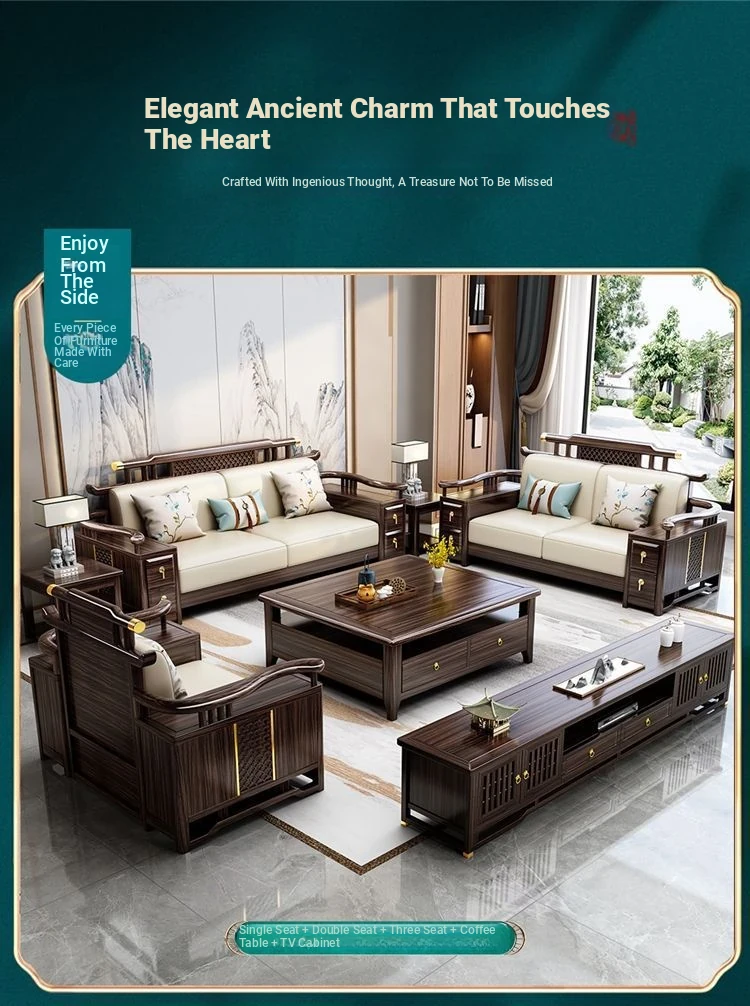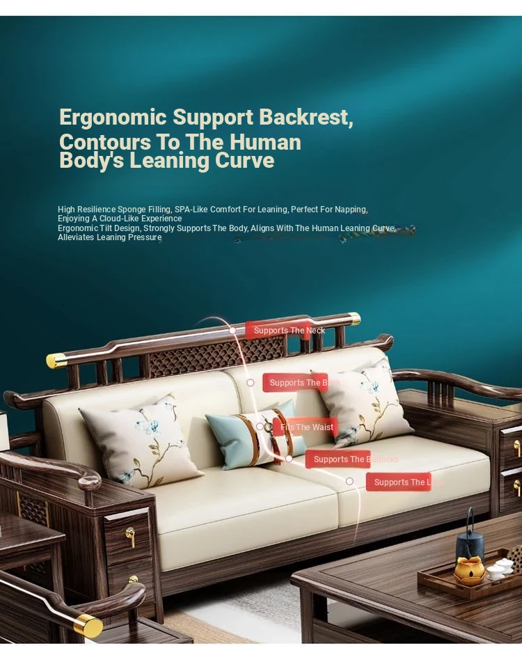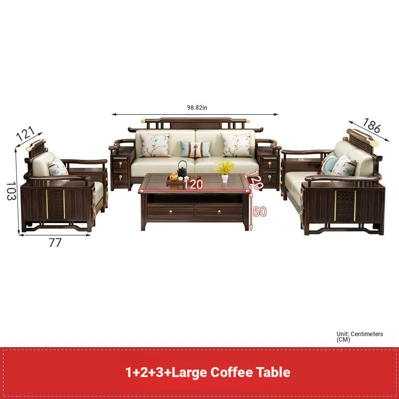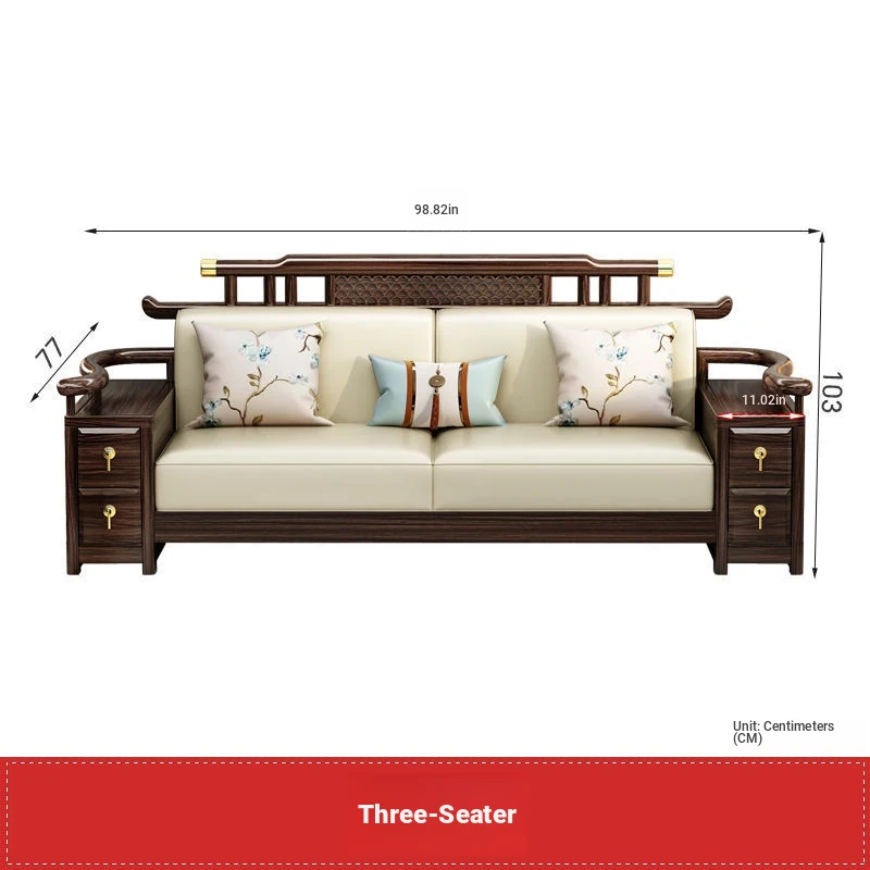 Luxury ebony solid wood sofa [cushion upgrade nappa leather]]