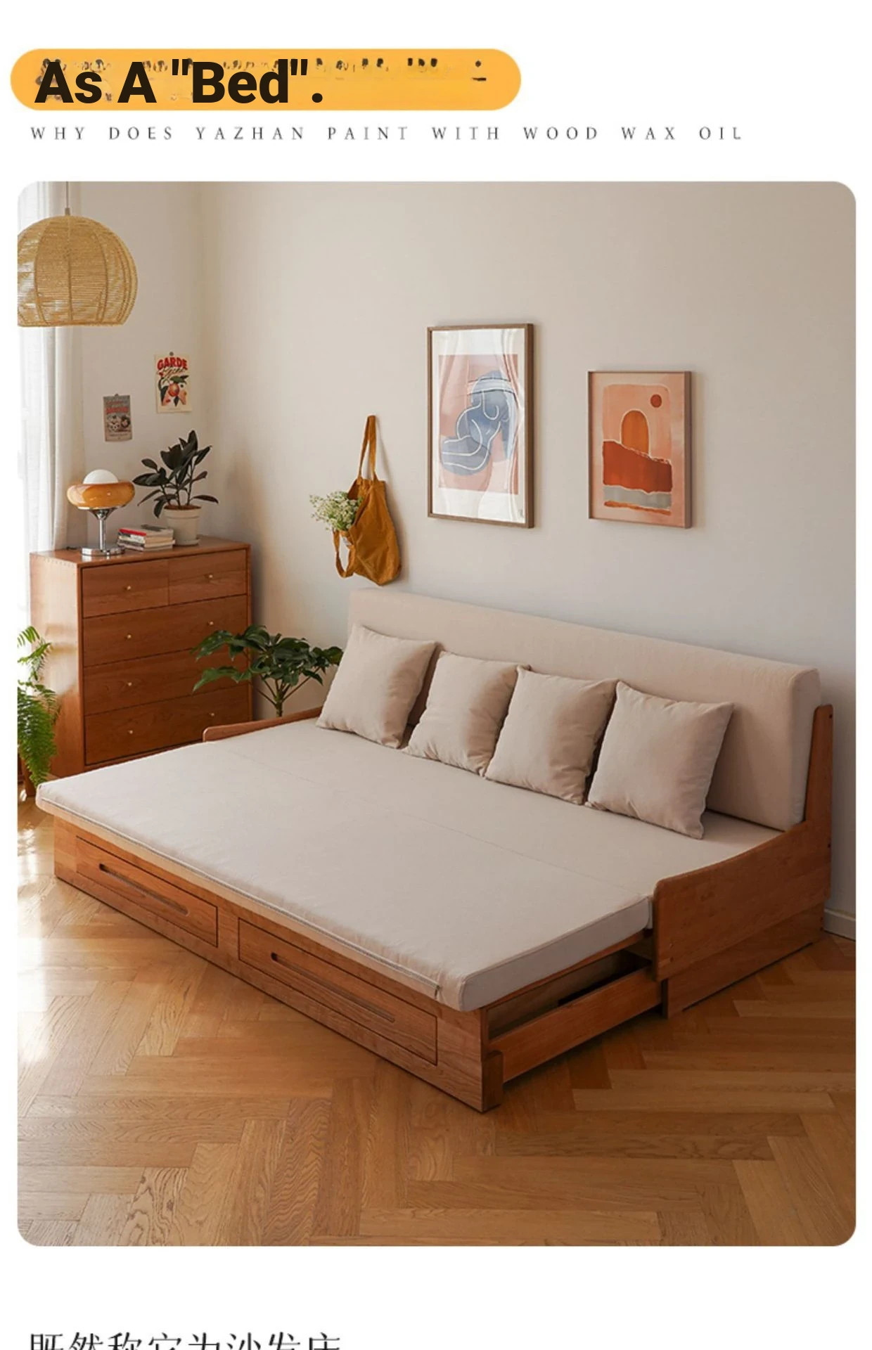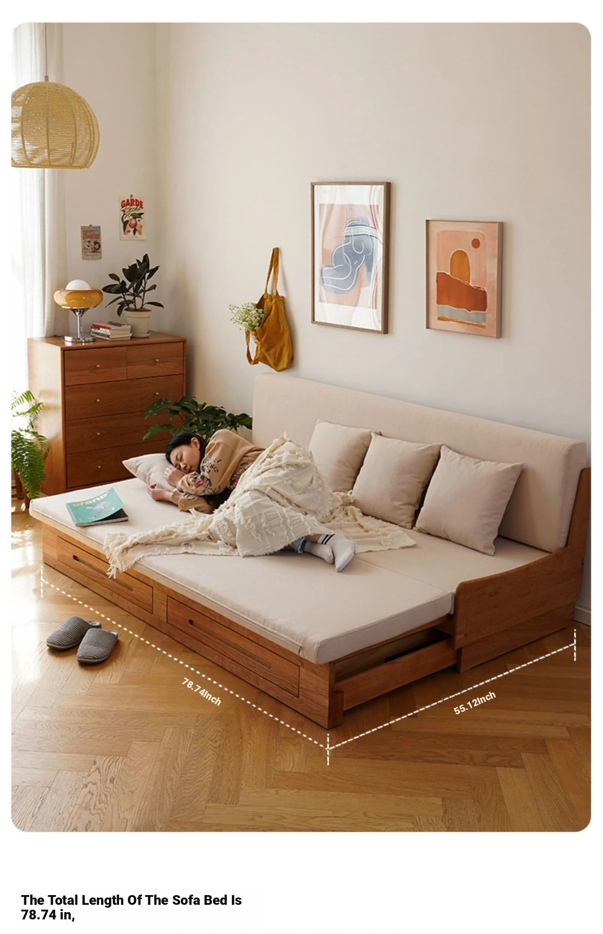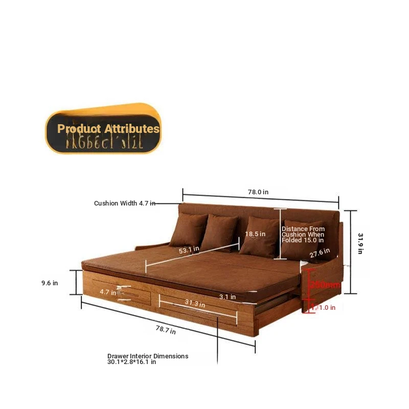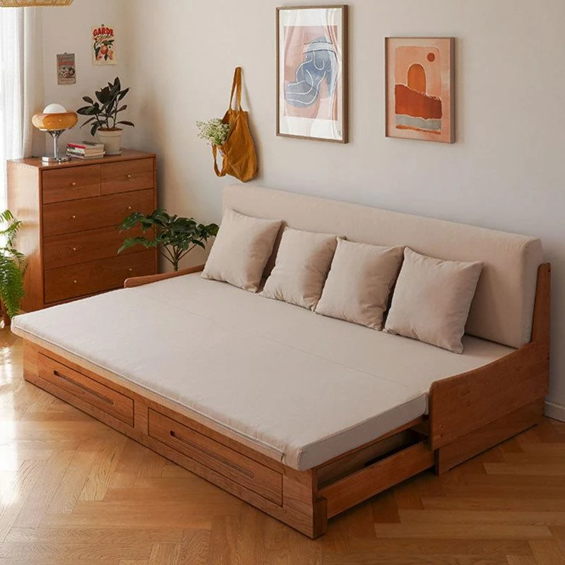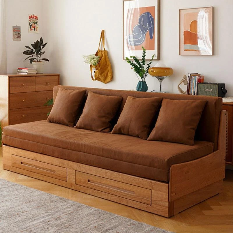 Versatile North American Cherry Wood Sofa Bed – Solid Wood, Pull-Out Design for Small Spaces, with Storage and Stretch Fabric for Ultimate Comfort and Style.