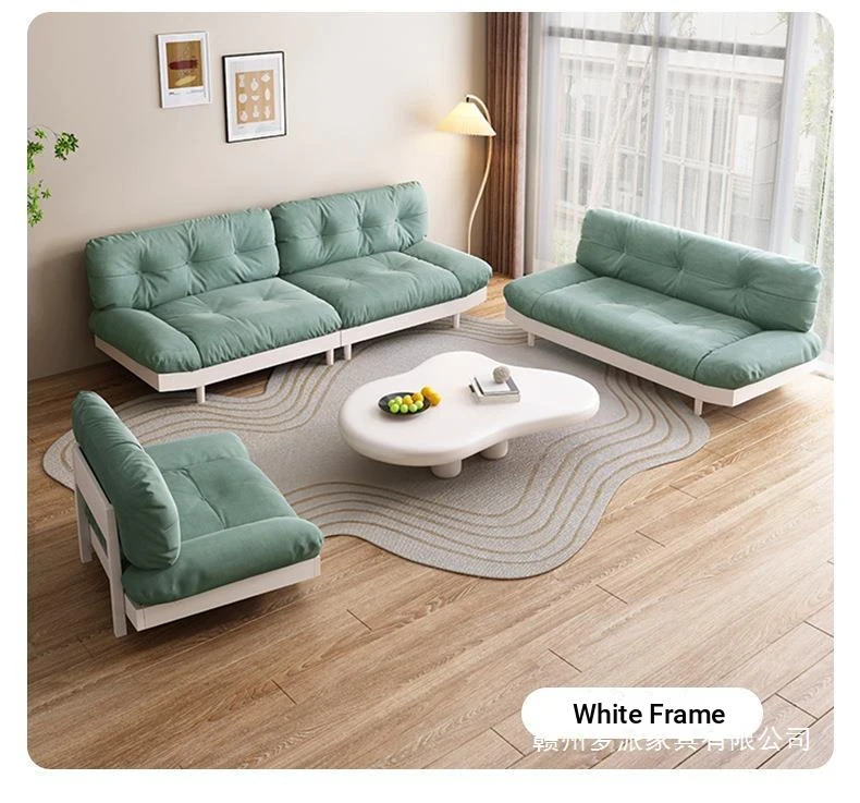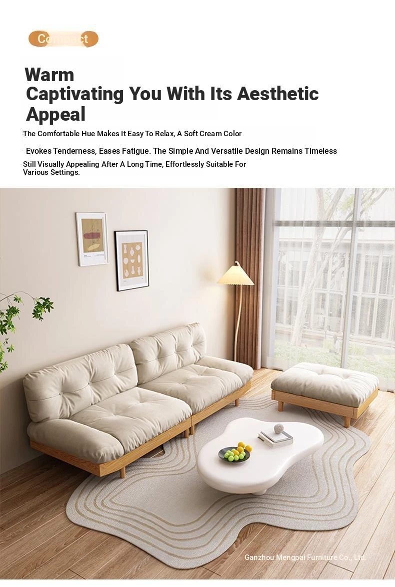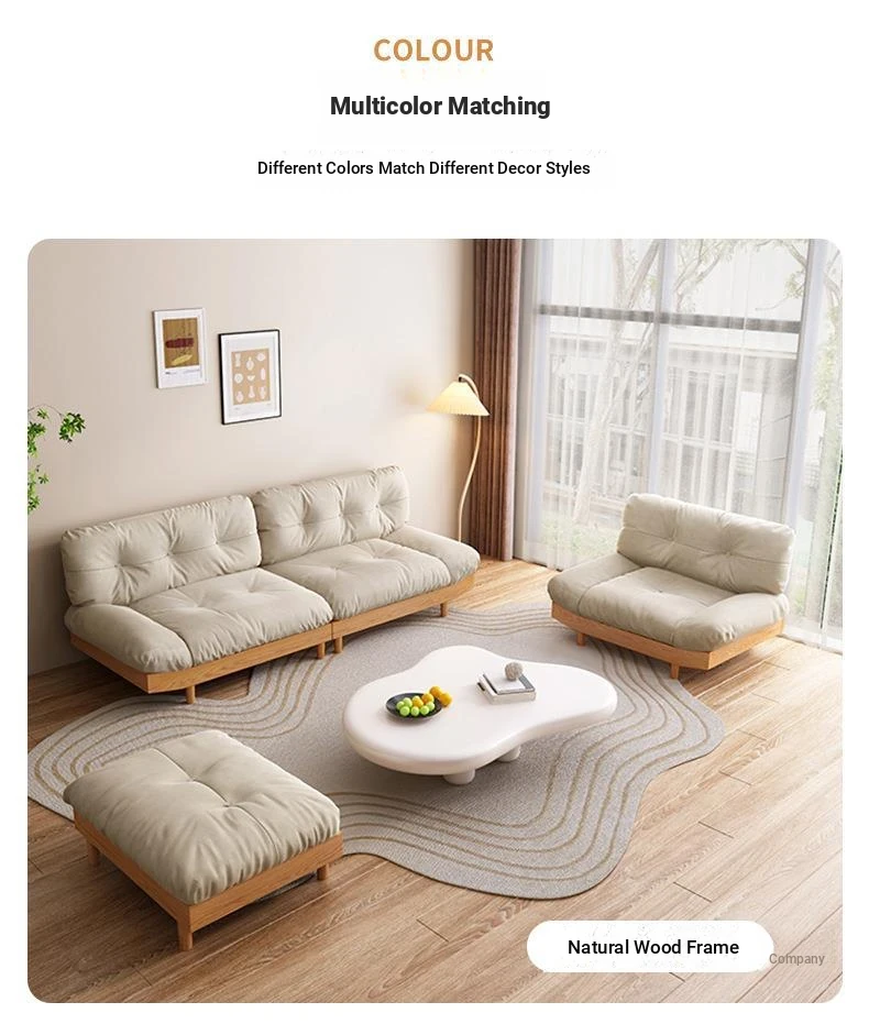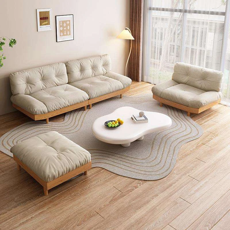 Wabi-Sabi Style Solid Wood Cloud Sofa for Small Spaces - Japanese Minimalist Fabric Sofa for Living Rooms and Guesthouses, Perfect for 2-3 People