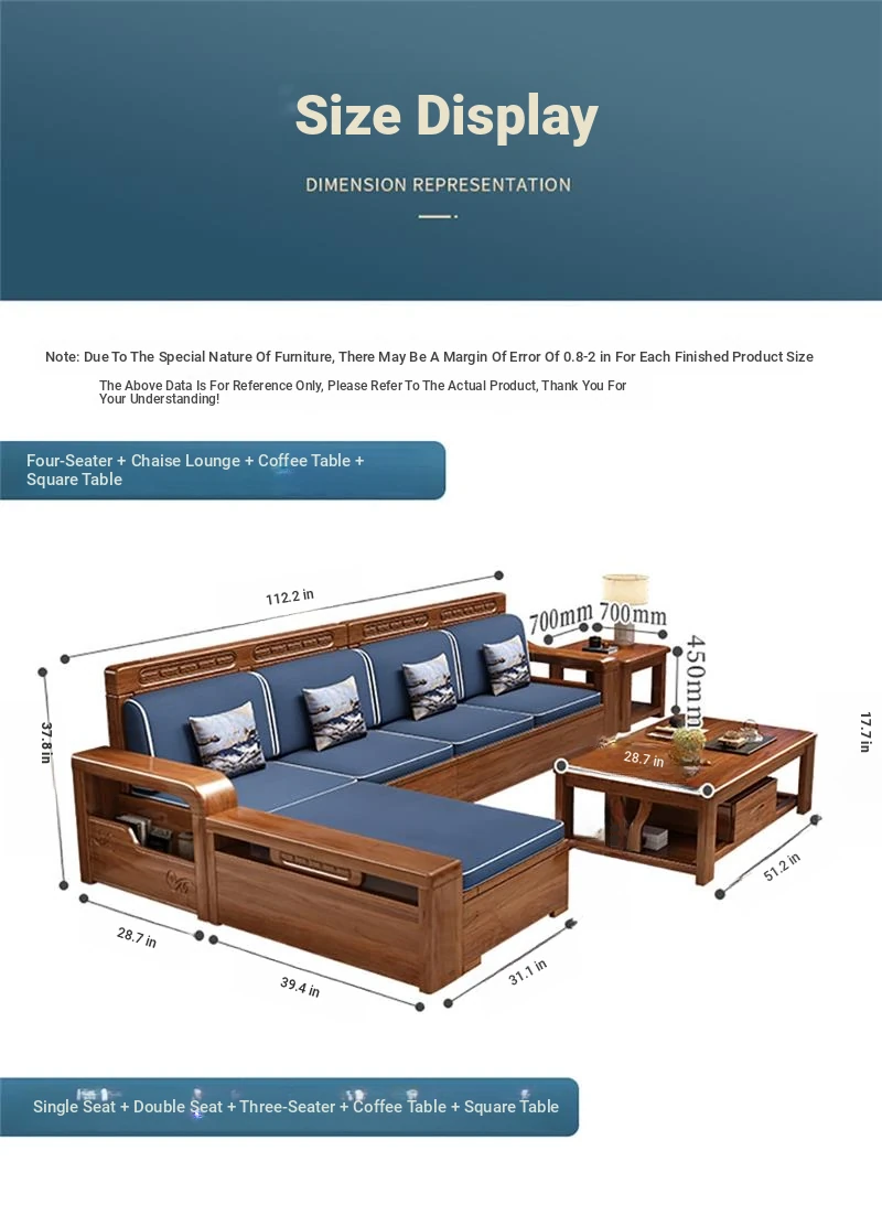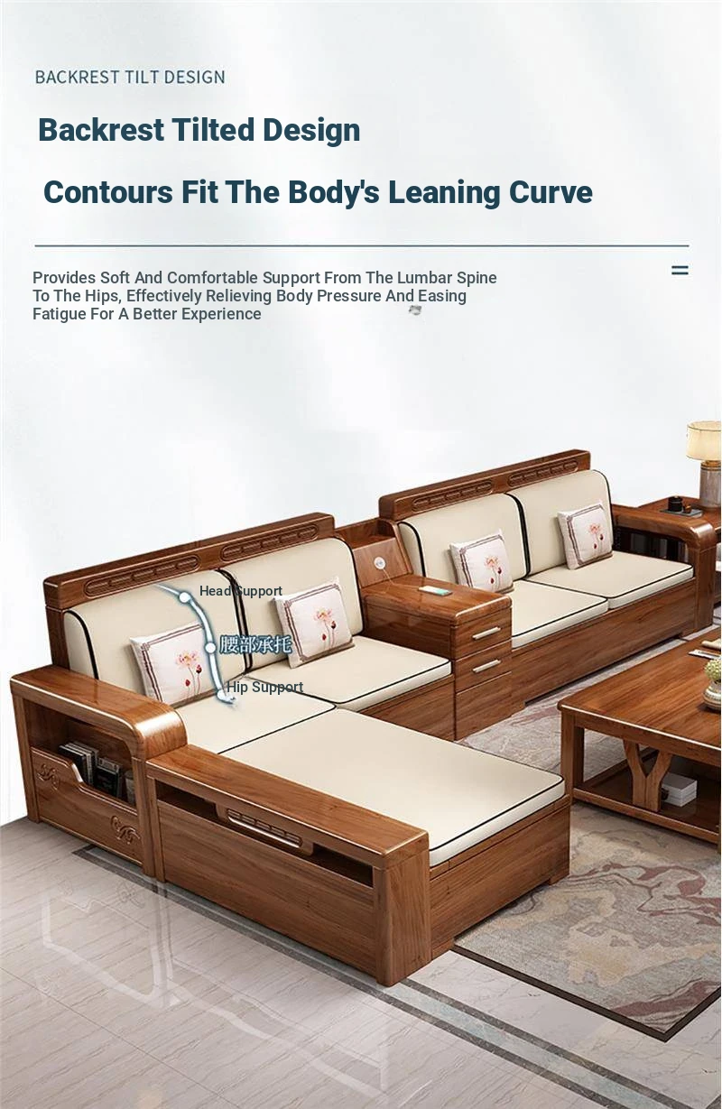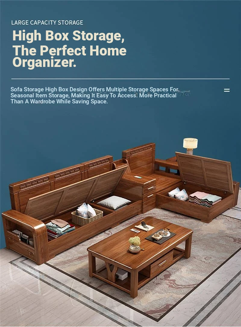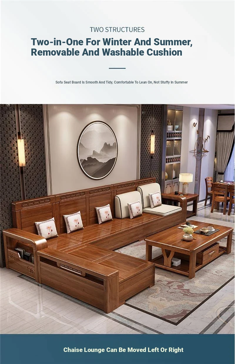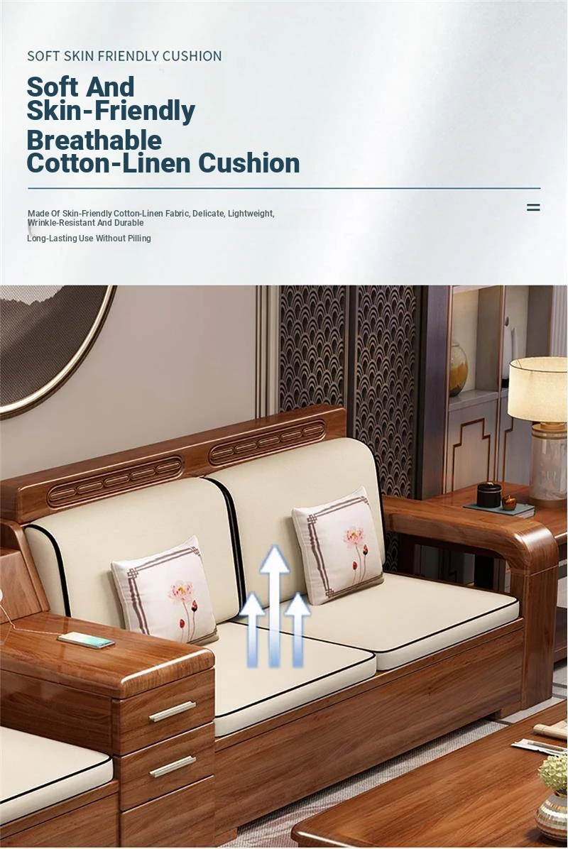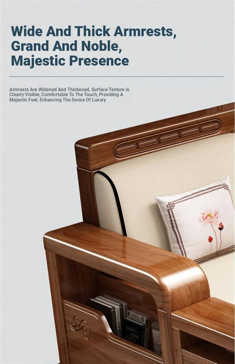 Walnut Solid Wood Sofa Set - Versatile Winter/Summer Use, Stylish Storage Solution for New Chinese Style Living Rooms - Perfect for Small to Medium Spaces