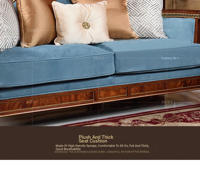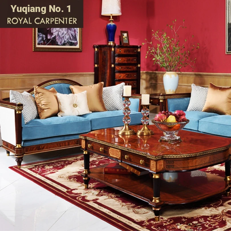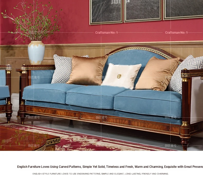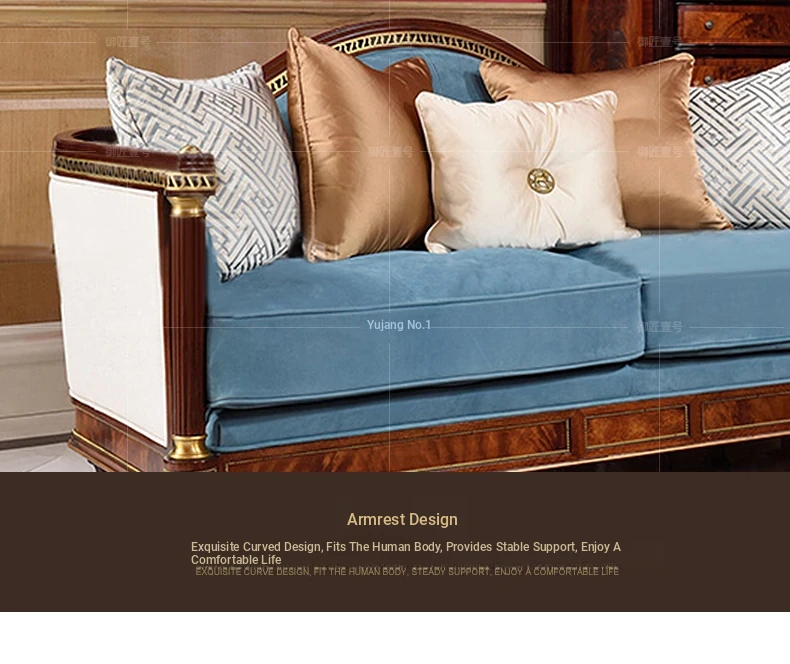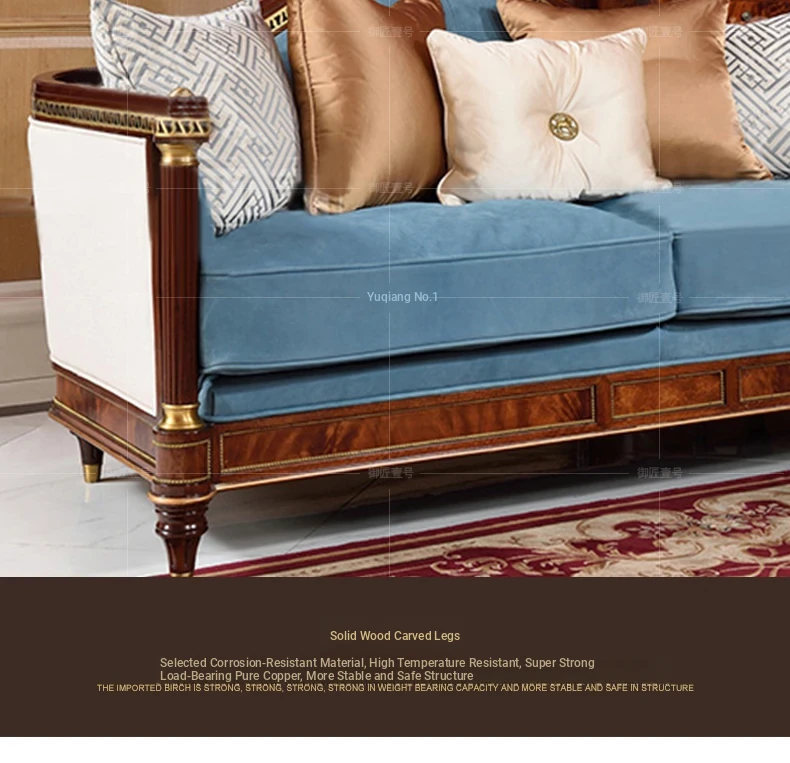 Yuxiang No.1 Luxury English Living Room Furniture - Spacious Solid Wood and Fabric Sofa Set for Large Villas - Three-Seater Sofa Combination