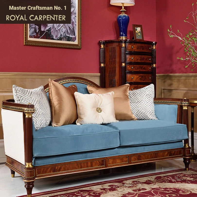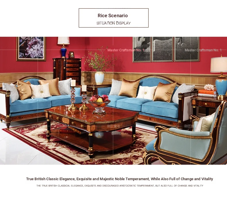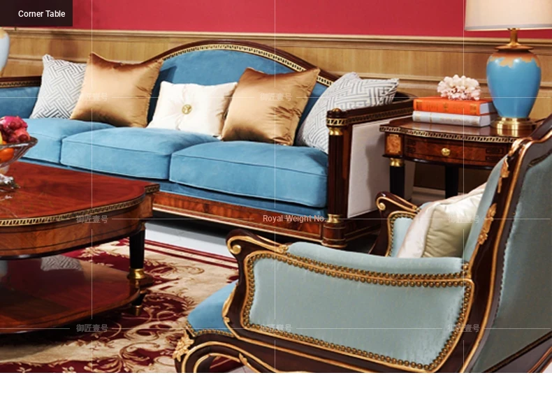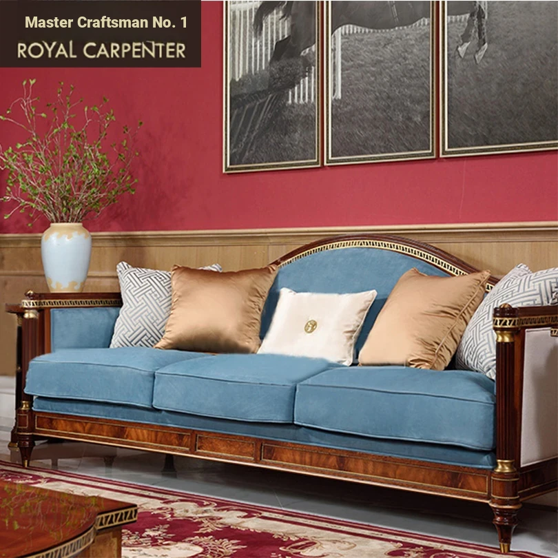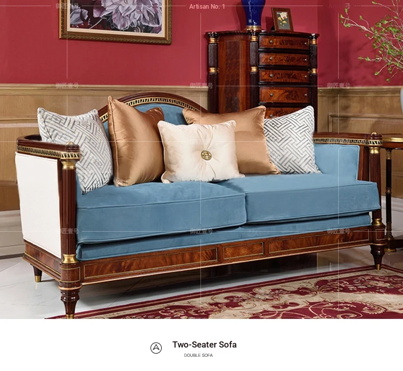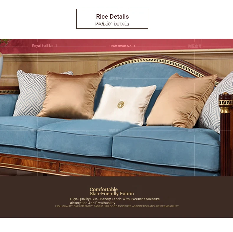 Yuxiang No.1 Luxury English Living Room Furniture - Spacious Solid Wood and Fabric Sofa Set for Large Villas - Three-Seater Sofa Combination