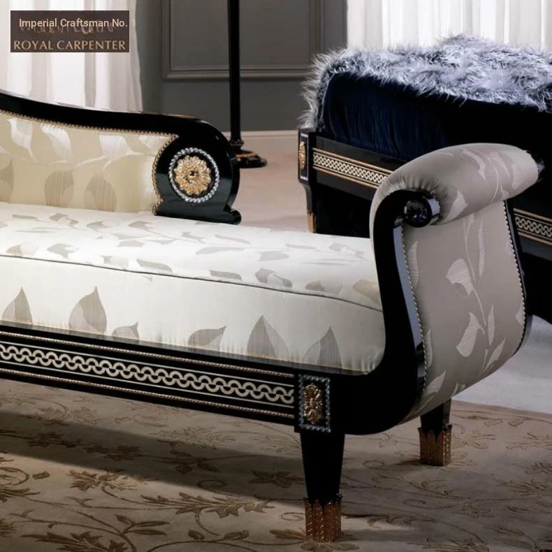 Yuxiang No.1 New Classical Bedroom Furniture - Luxurious Solid Wood Carved Chaise Lounge, Elegant Daybed for Relaxation and Leisure Sofa Chair
