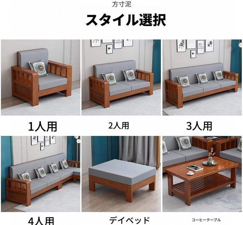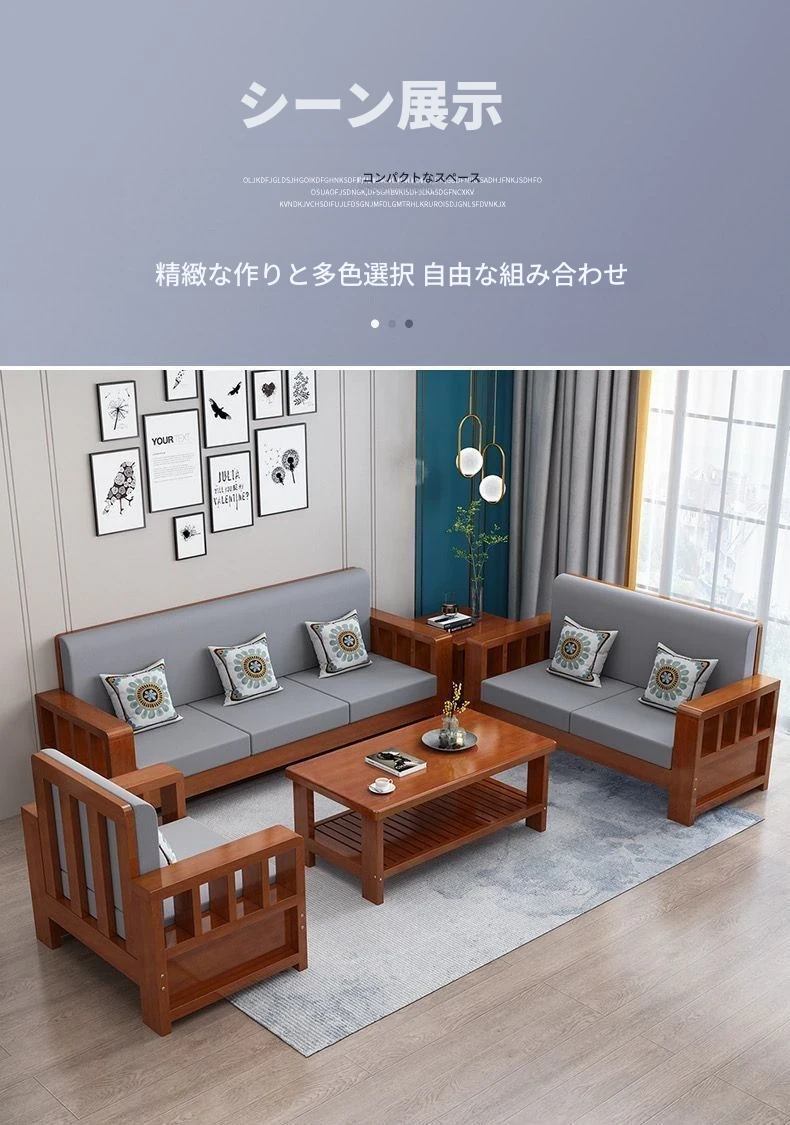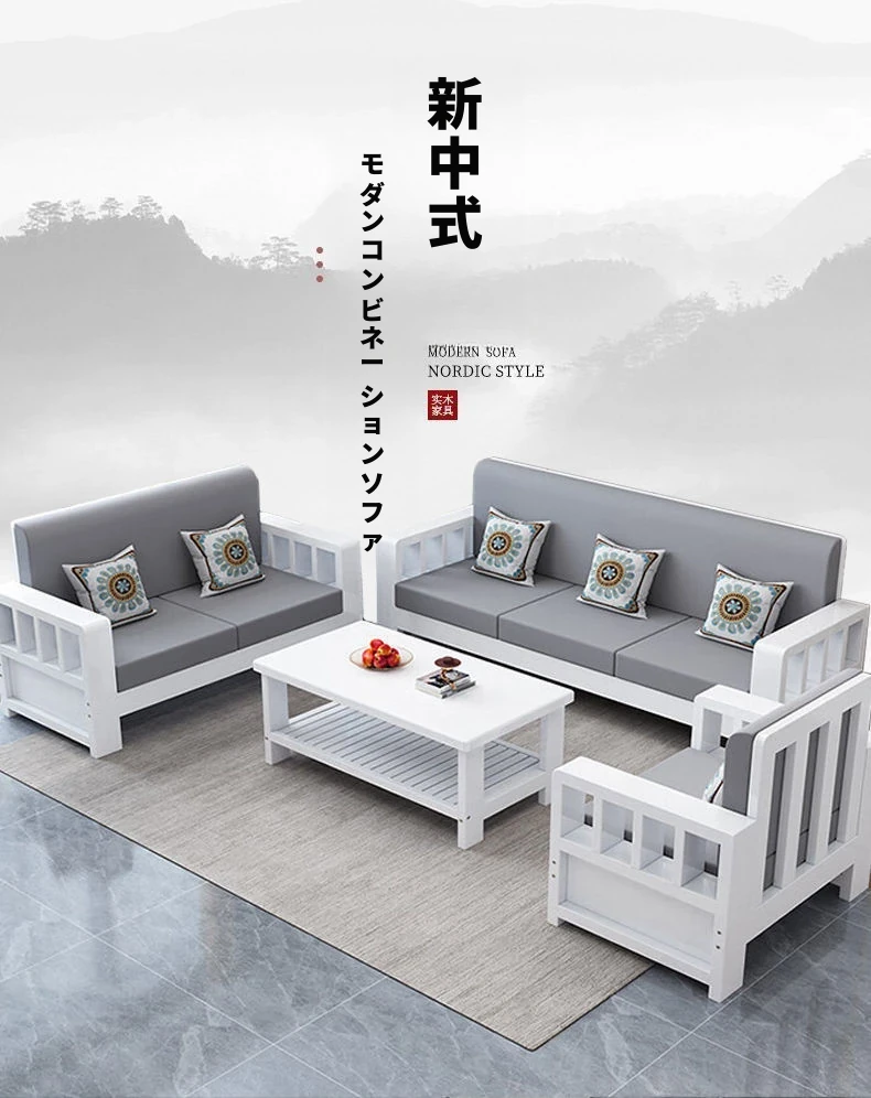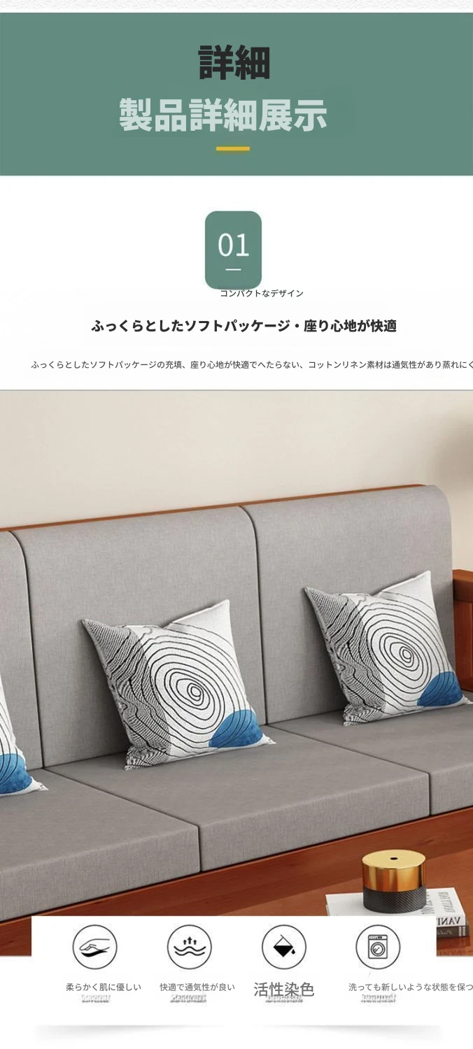 新中式デザインの無垢材ソファセット - 2025年新作!美しい布張りと木製の質感が魅力のリビングルーム用茶卓付きソファ。快適さとスタイルを兼ね備えた、あなたの空間を引き立てる一品!
