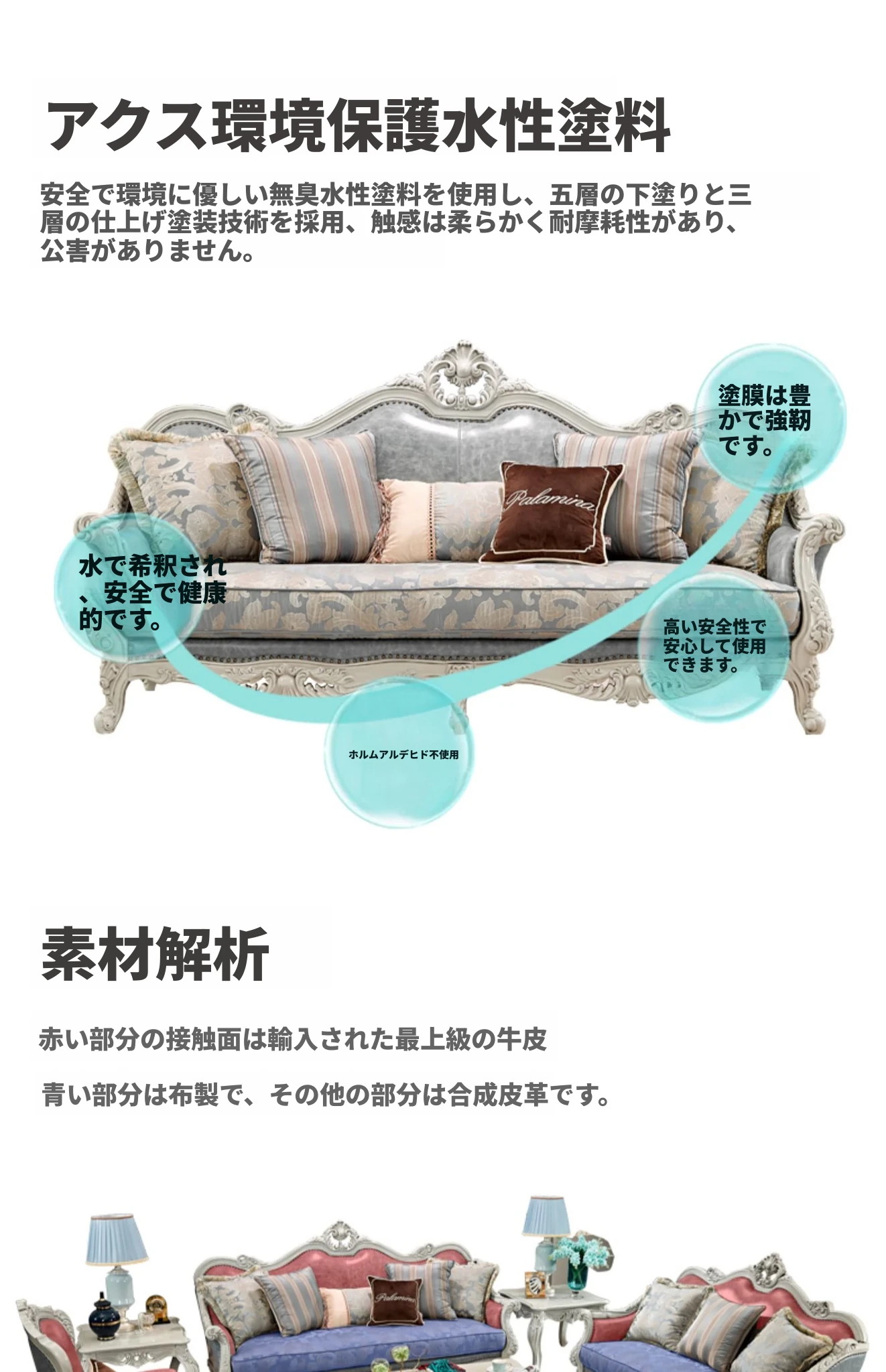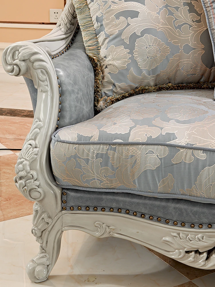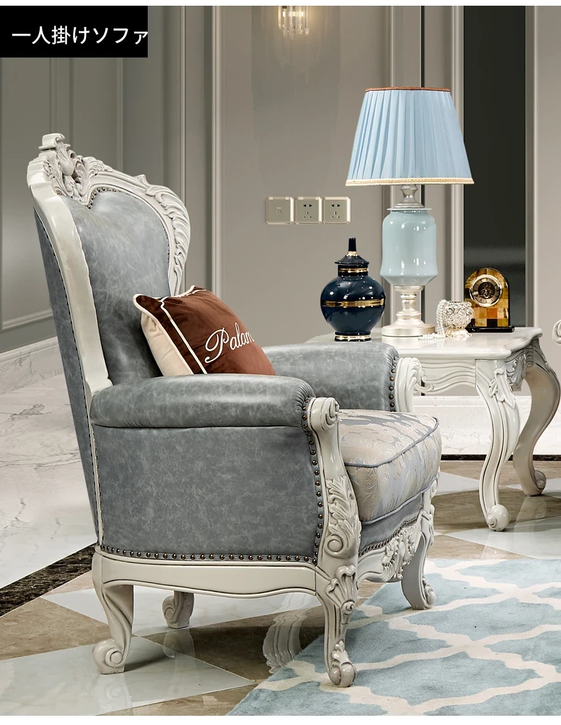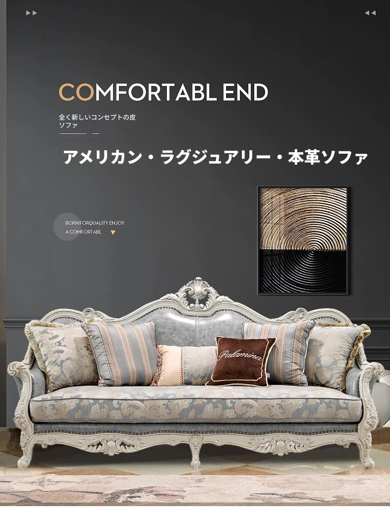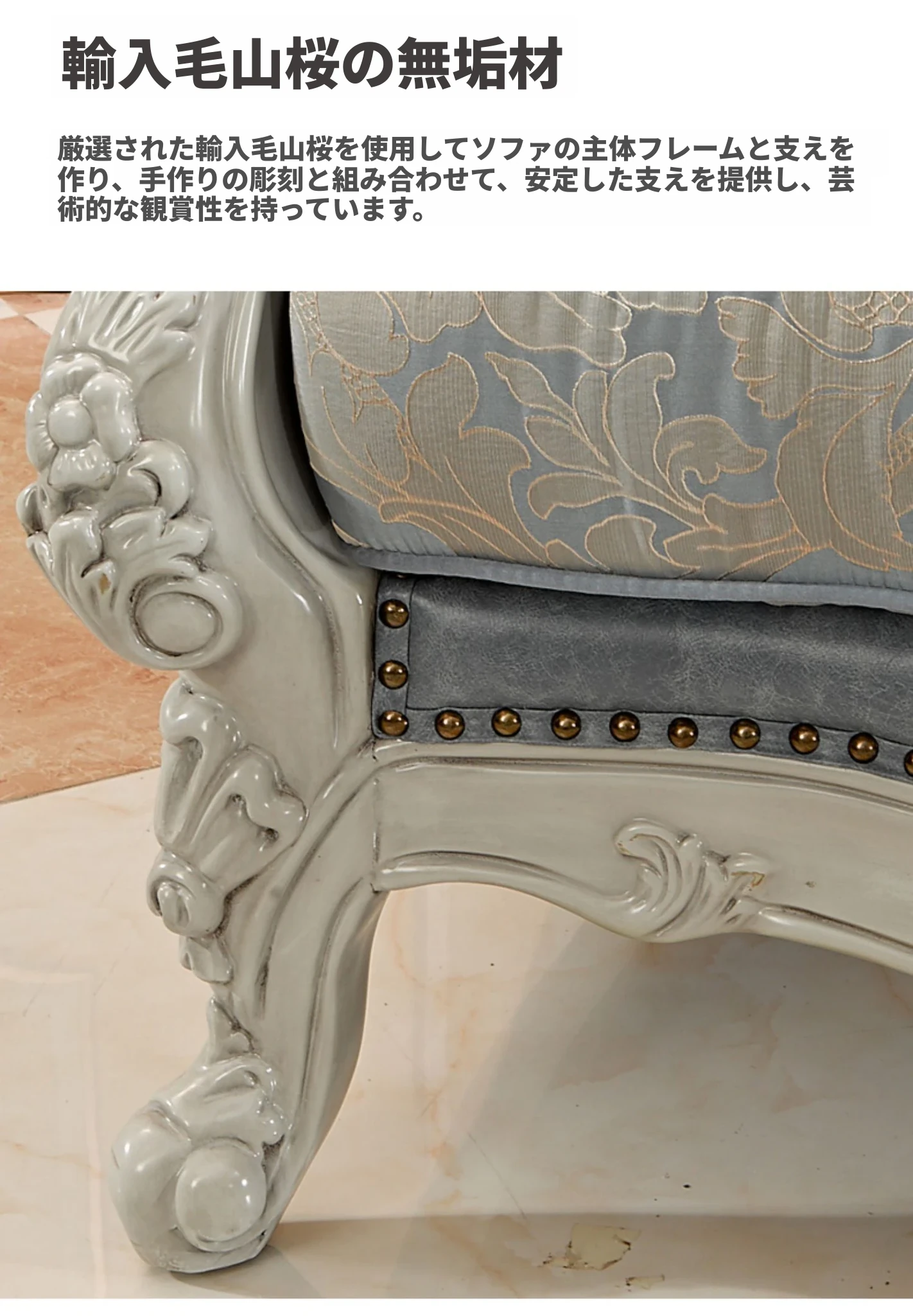 アメリカンスタイルのラグジュアリーソファ|ヨーロピアン真皮ソファ|123型フレンチスタイル|無垢材使用のシンプル欧風布製リビングルーム用家具|美しい彫刻デザインで上質な空間を演出!