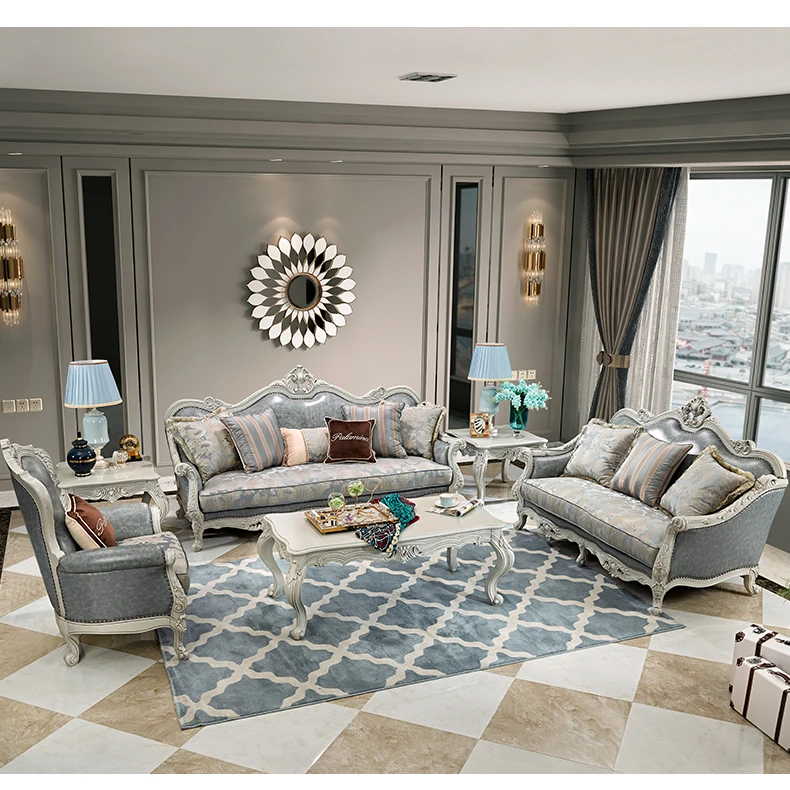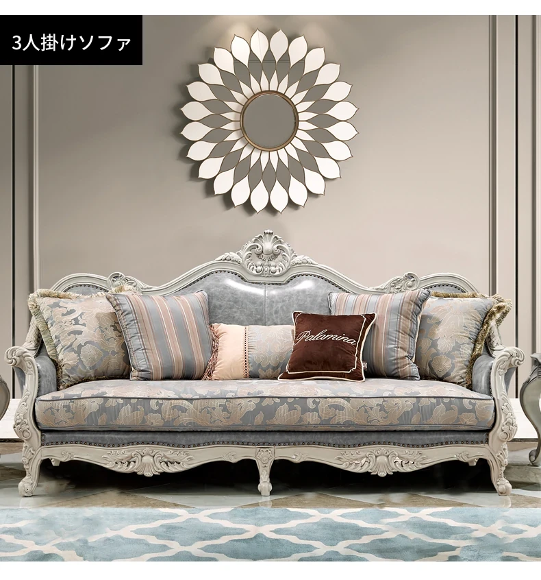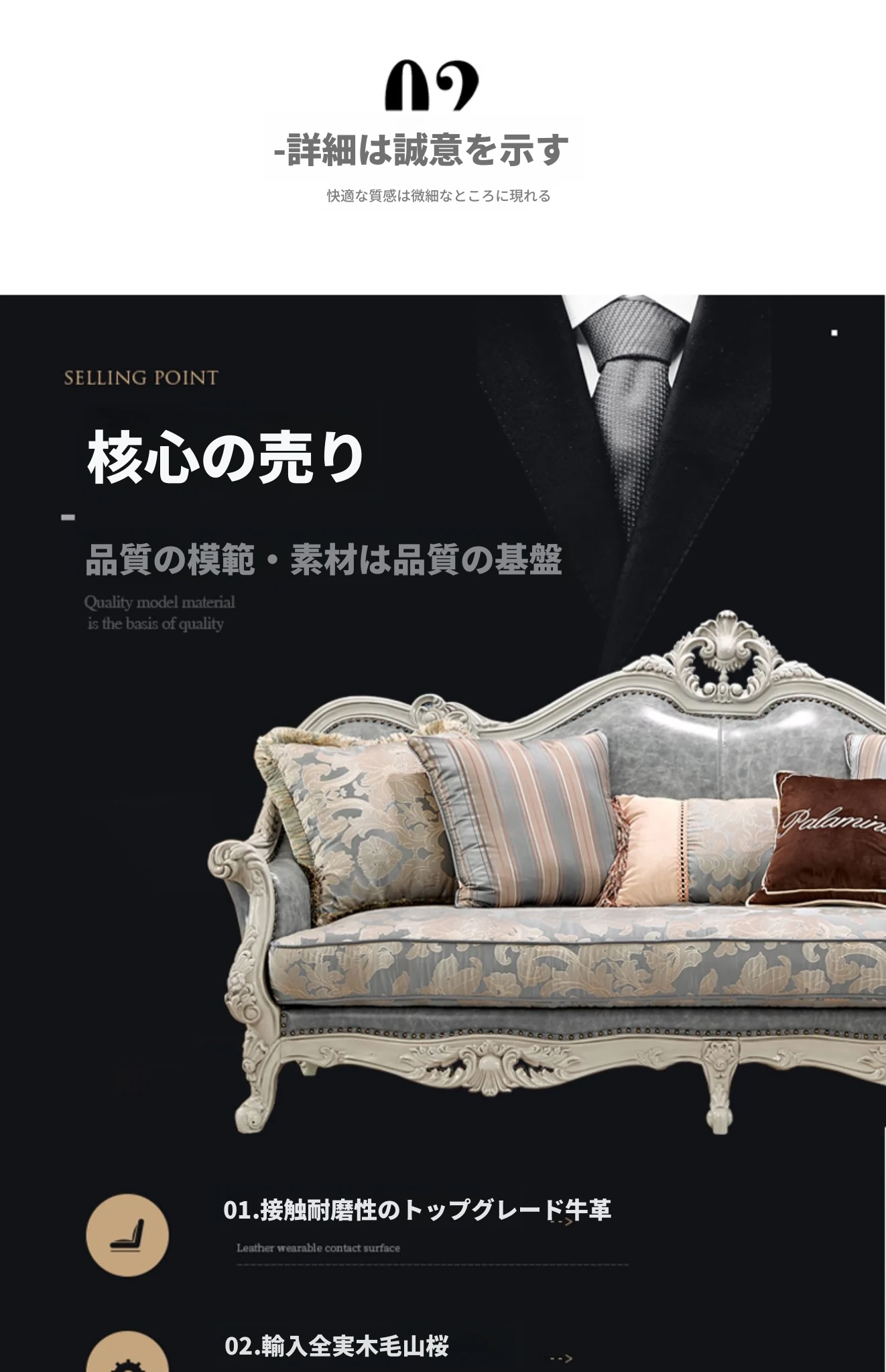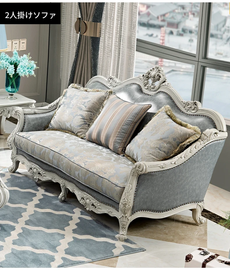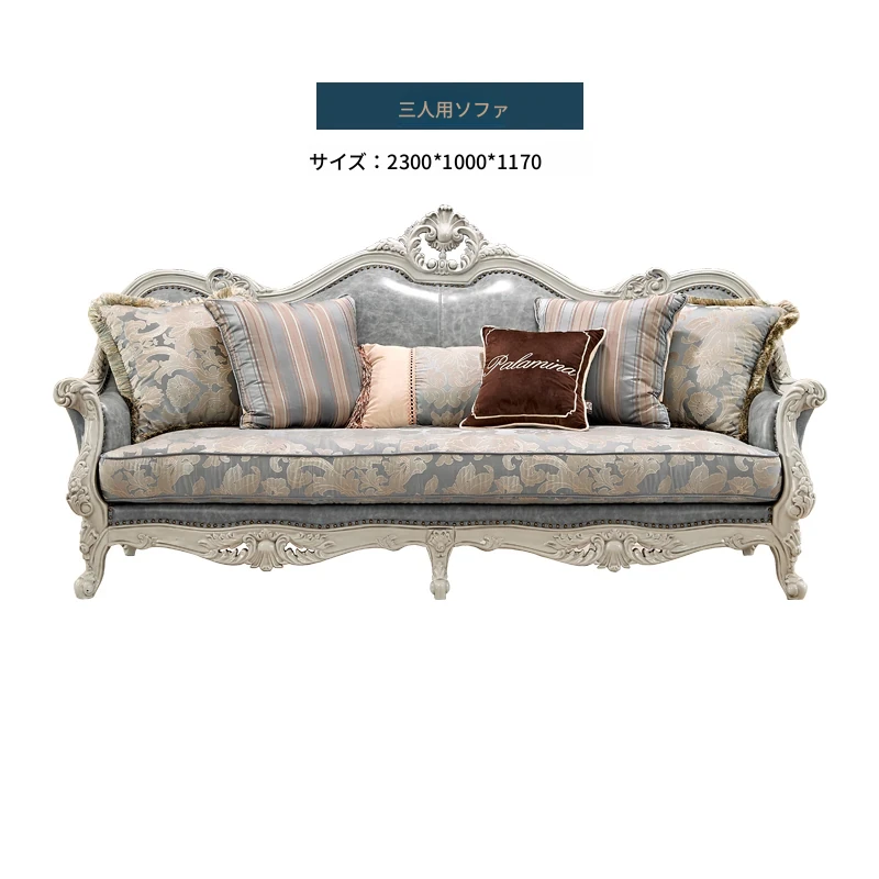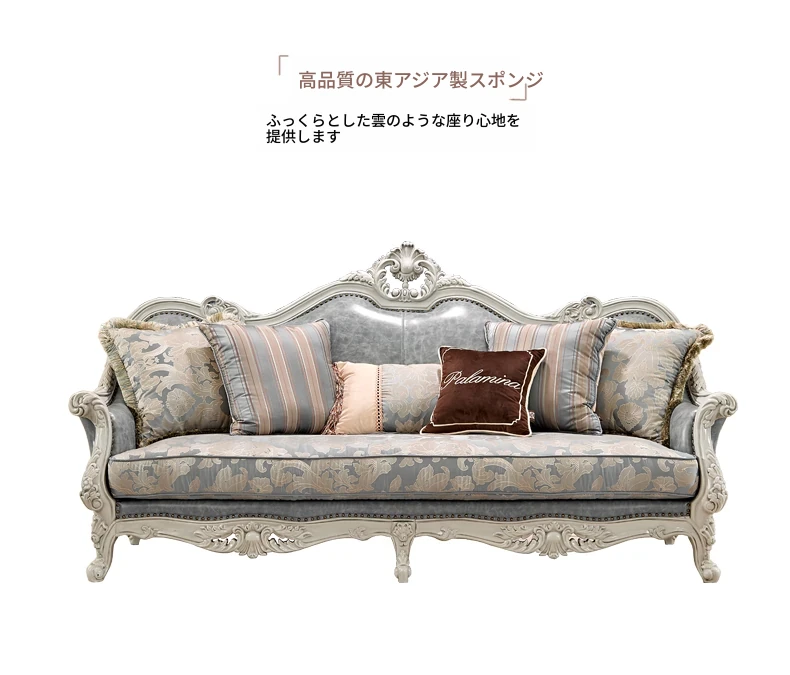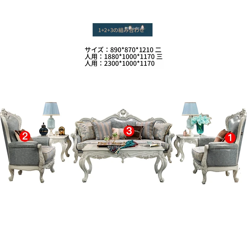 アメリカンスタイルのラグジュアリーソファ|ヨーロピアン真皮ソファ|123型フレンチスタイル|無垢材使用のシンプル欧風布製リビングルーム用家具|美しい彫刻デザインで上質な空間を演出!