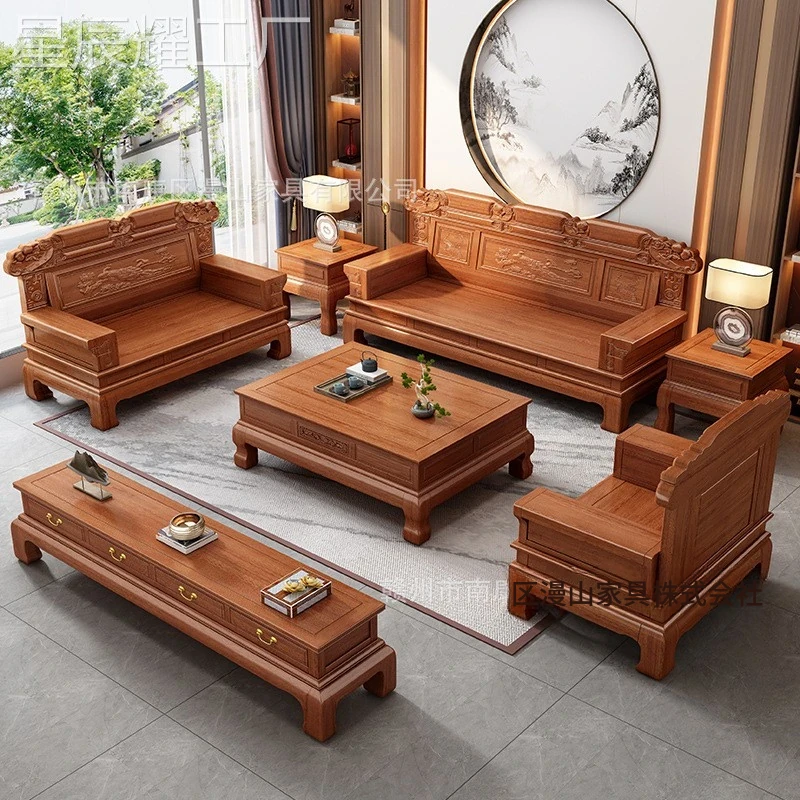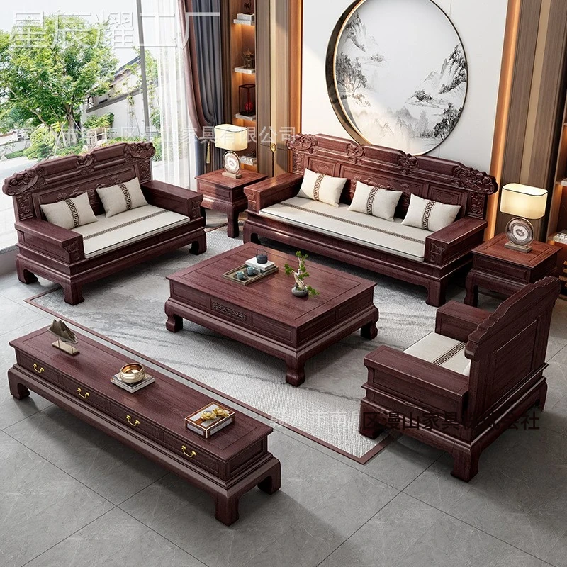1123+テーブル+角テーブル*3+テレビ台(花梨木)[クッション付き]