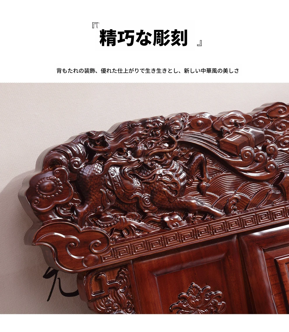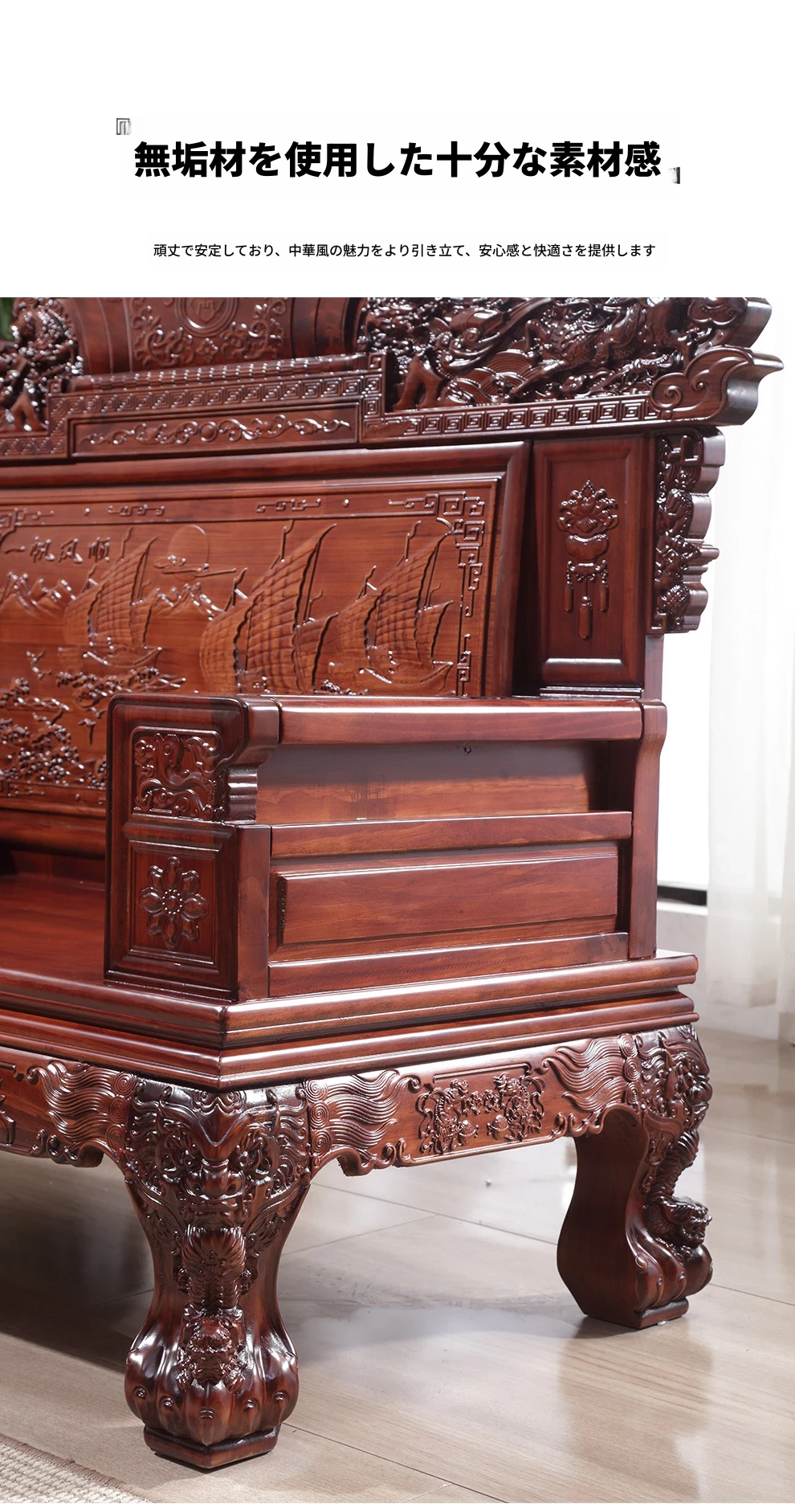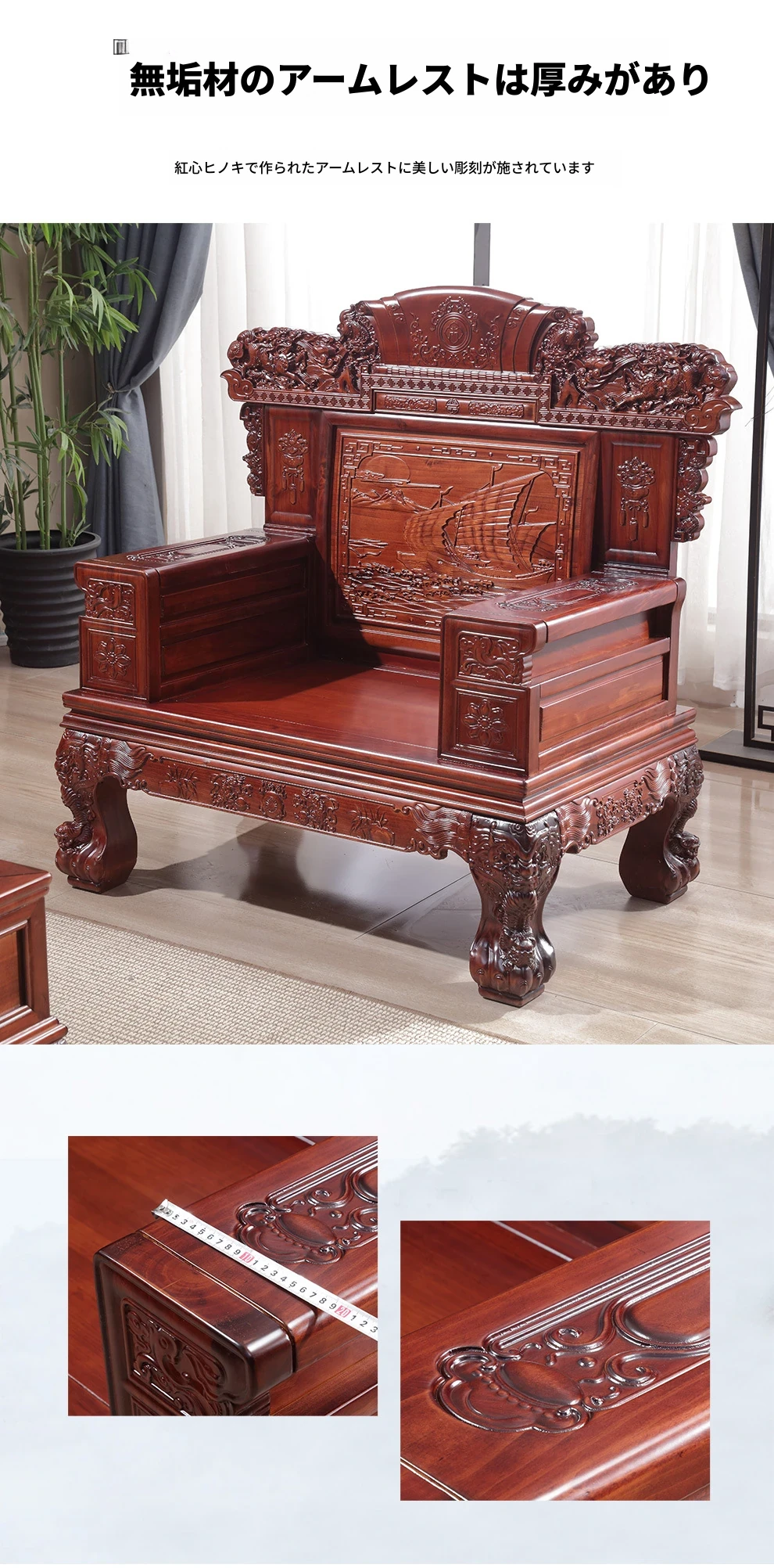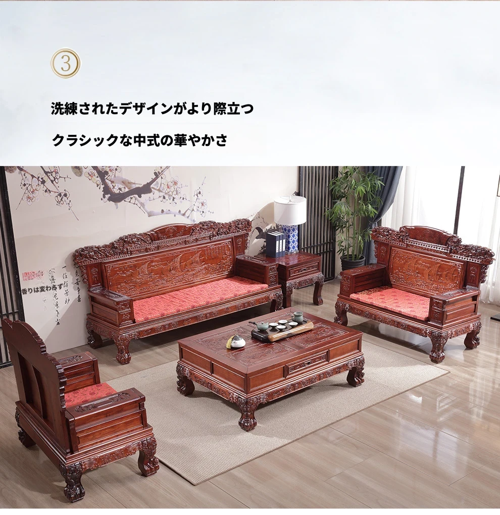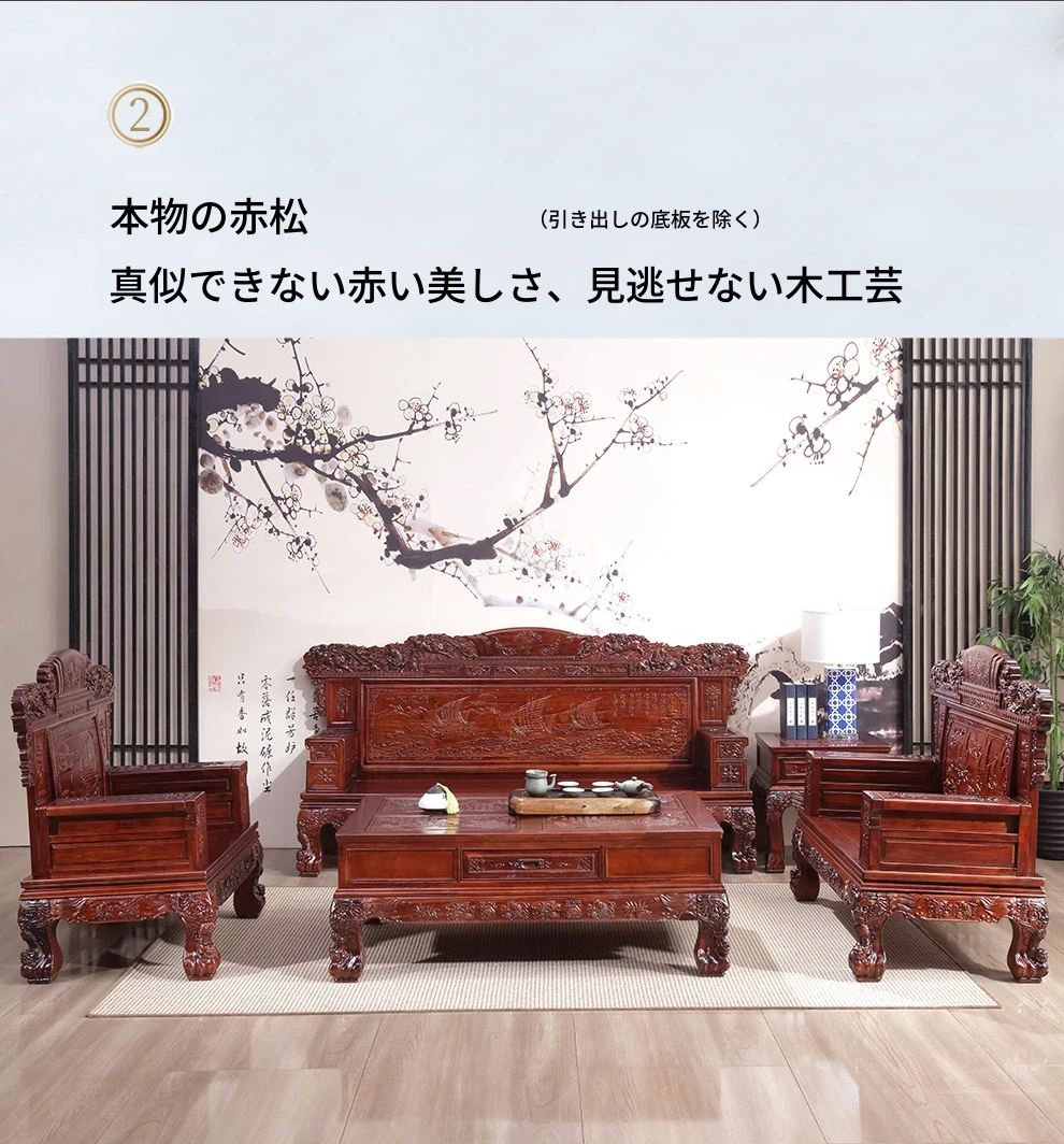 全木製アンティーク風 明清彫刻 一帆風順の花模様 リビングルーム用 レトロな赤心ヒバ材製のソファセット - 伝統美と現代の心地よさを融合した贅沢な空間を演出します。