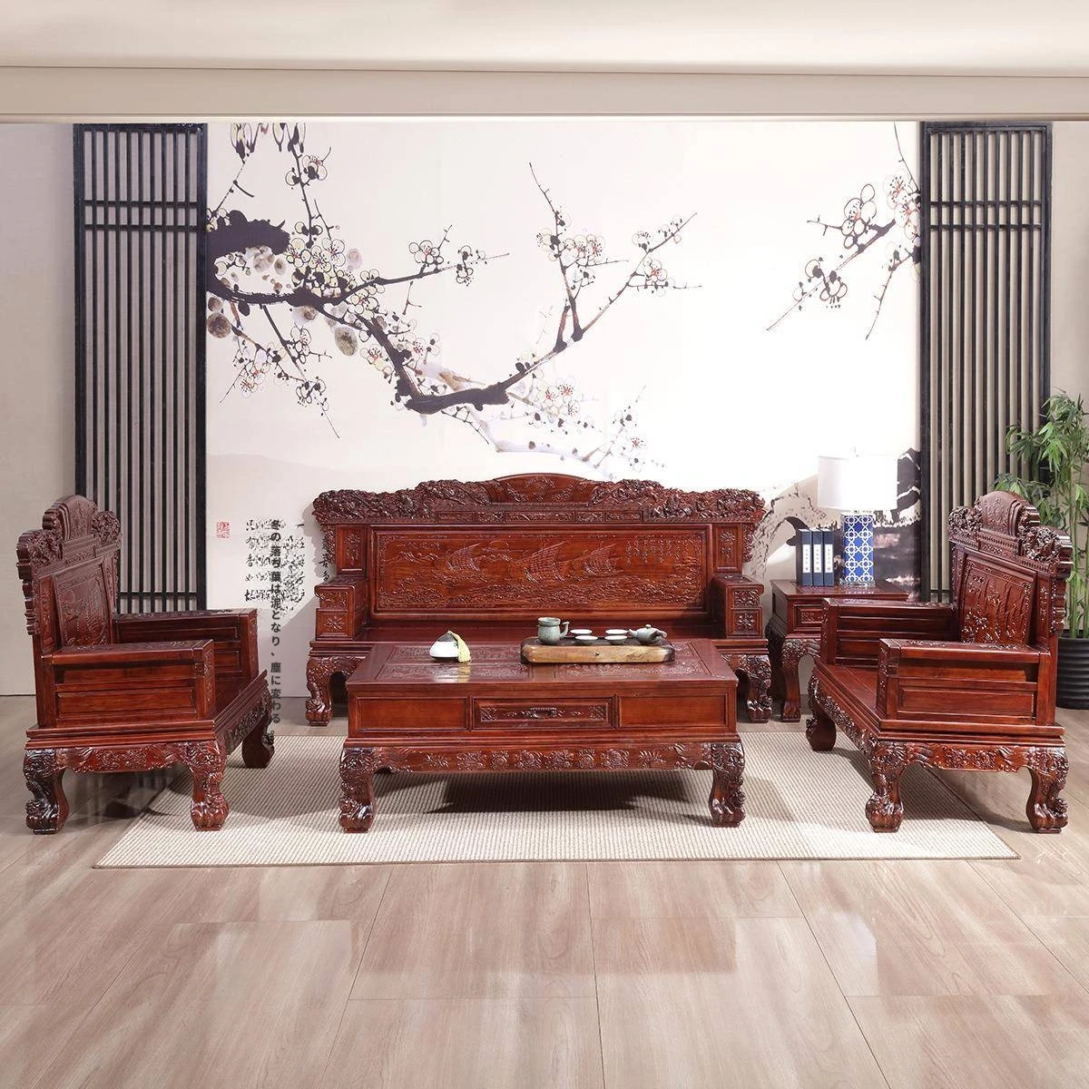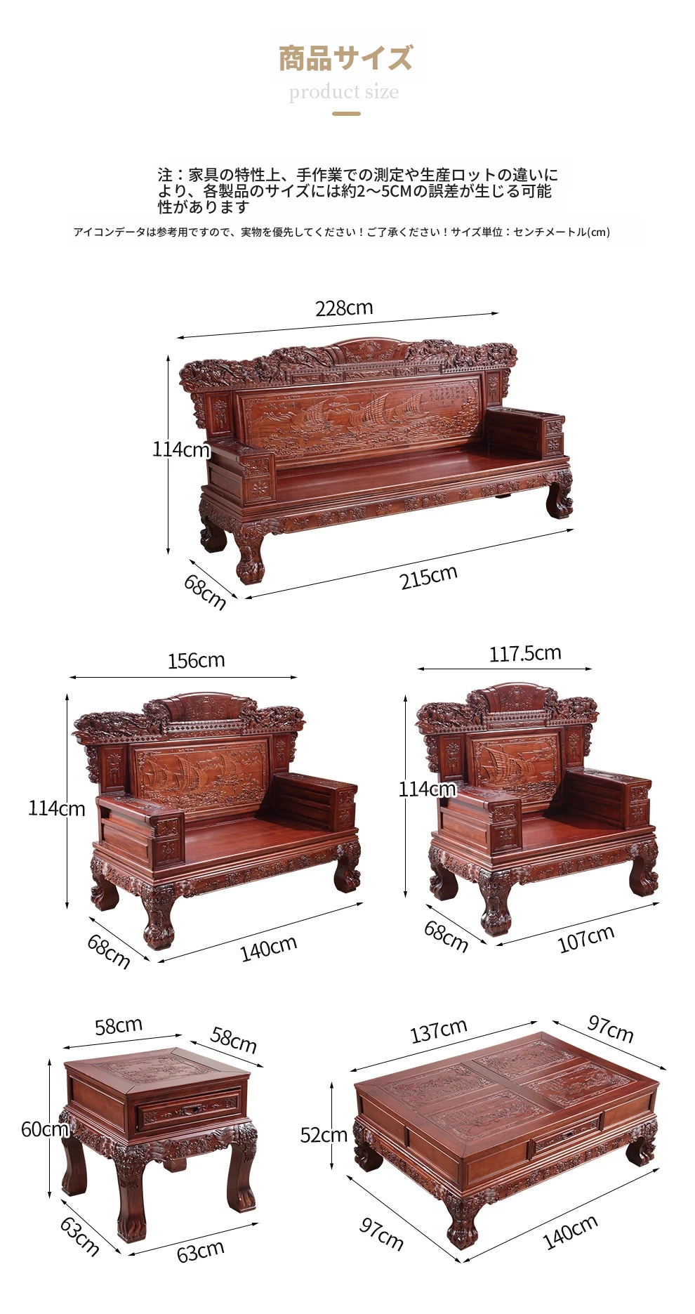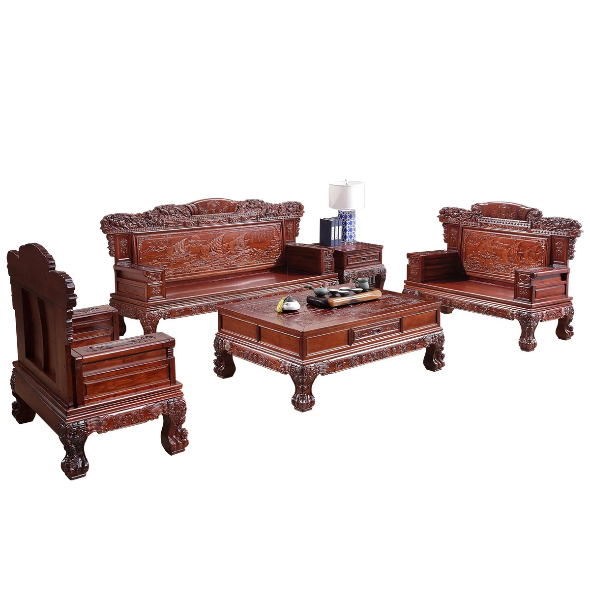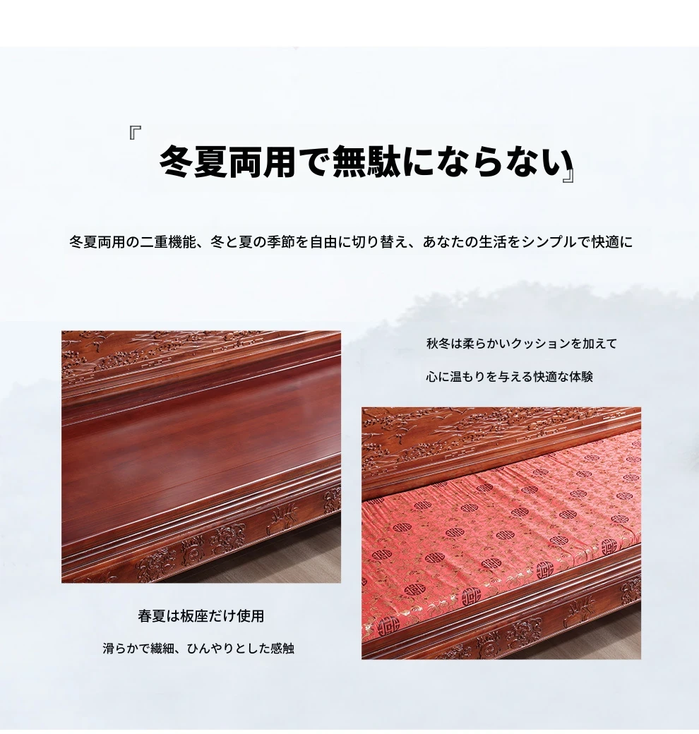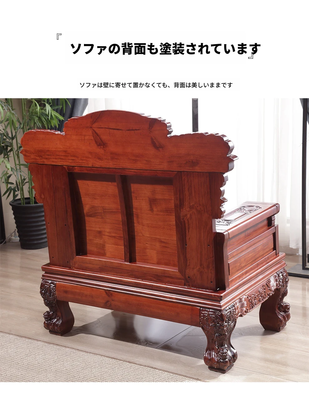 全木製アンティーク風 明清彫刻 一帆風順の花模様 リビングルーム用 レトロな赤心ヒバ材製のソファセット - 伝統美と現代の心地よさを融合した贅沢な空間を演出します。