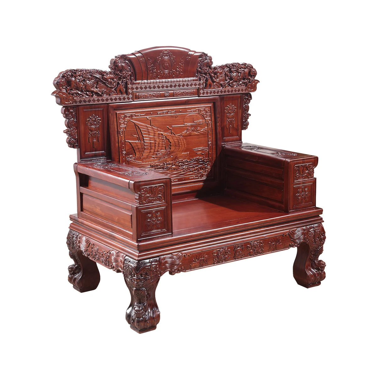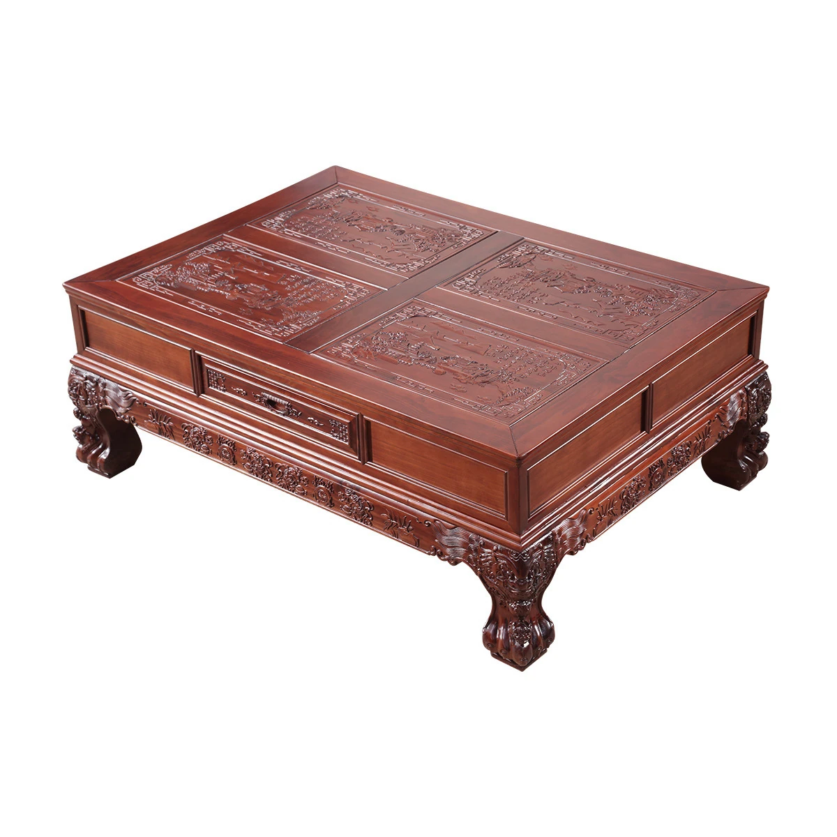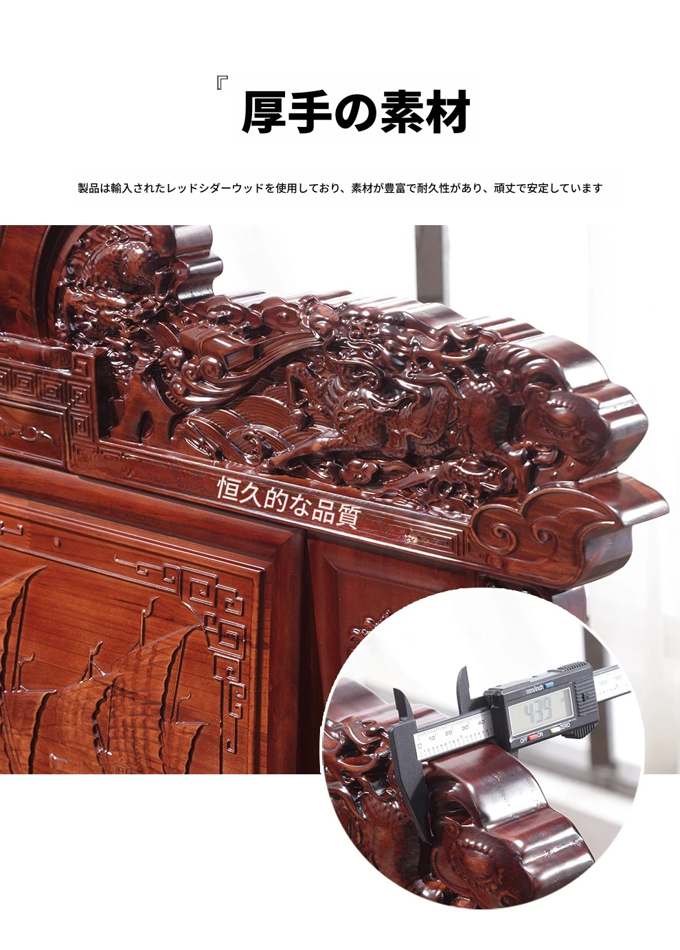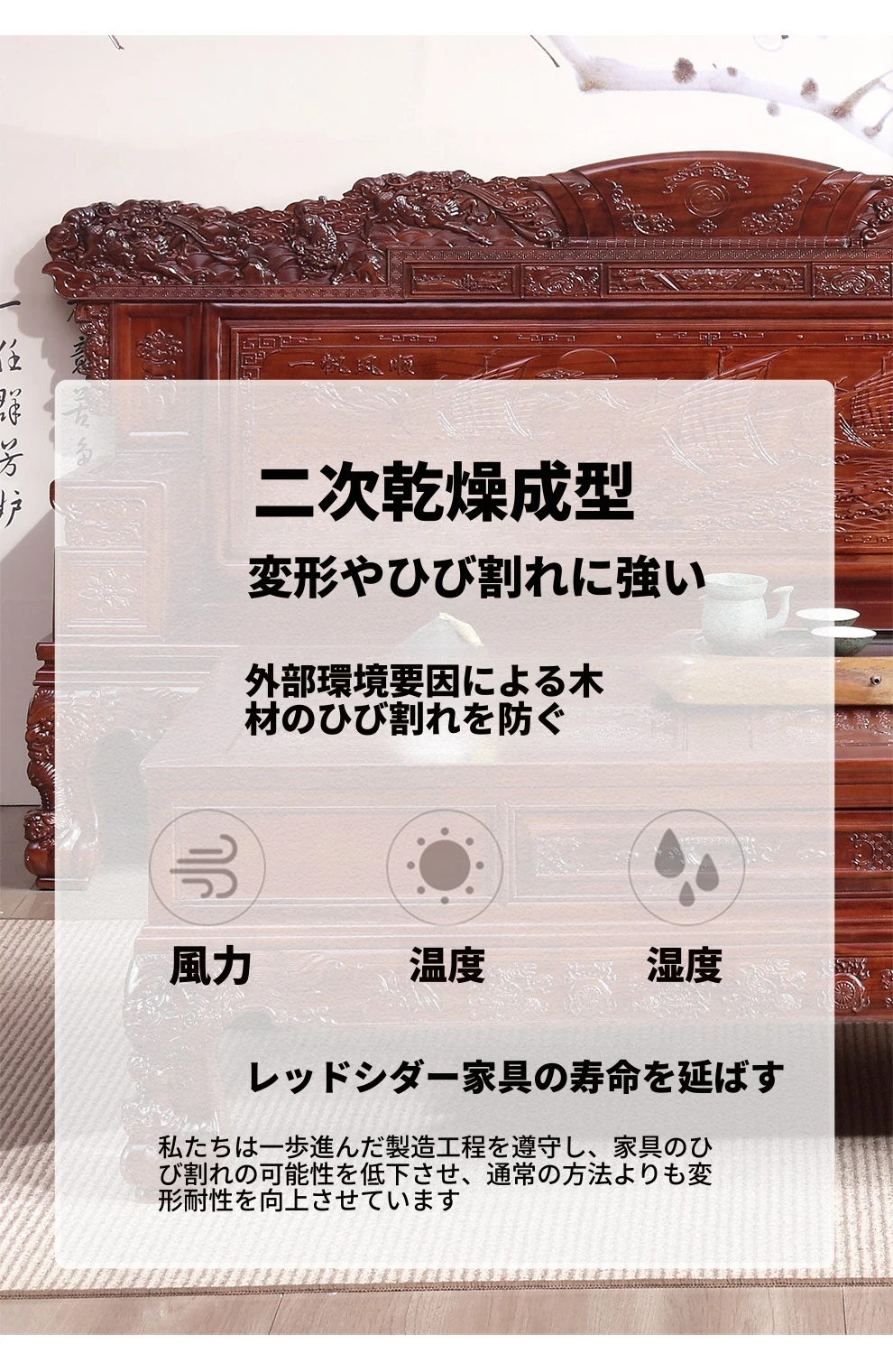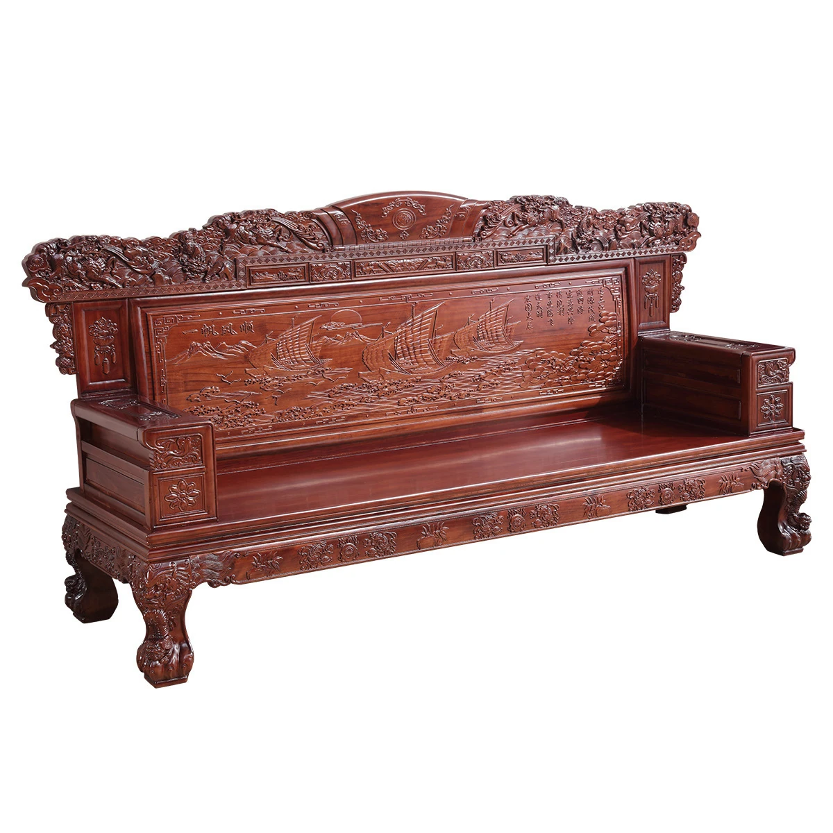 全木製アンティーク風 明清彫刻 一帆風順の花模様 リビングルーム用 レトロな赤心ヒバ材製のソファセット - 伝統美と現代の心地よさを融合した贅沢な空間を演出します。