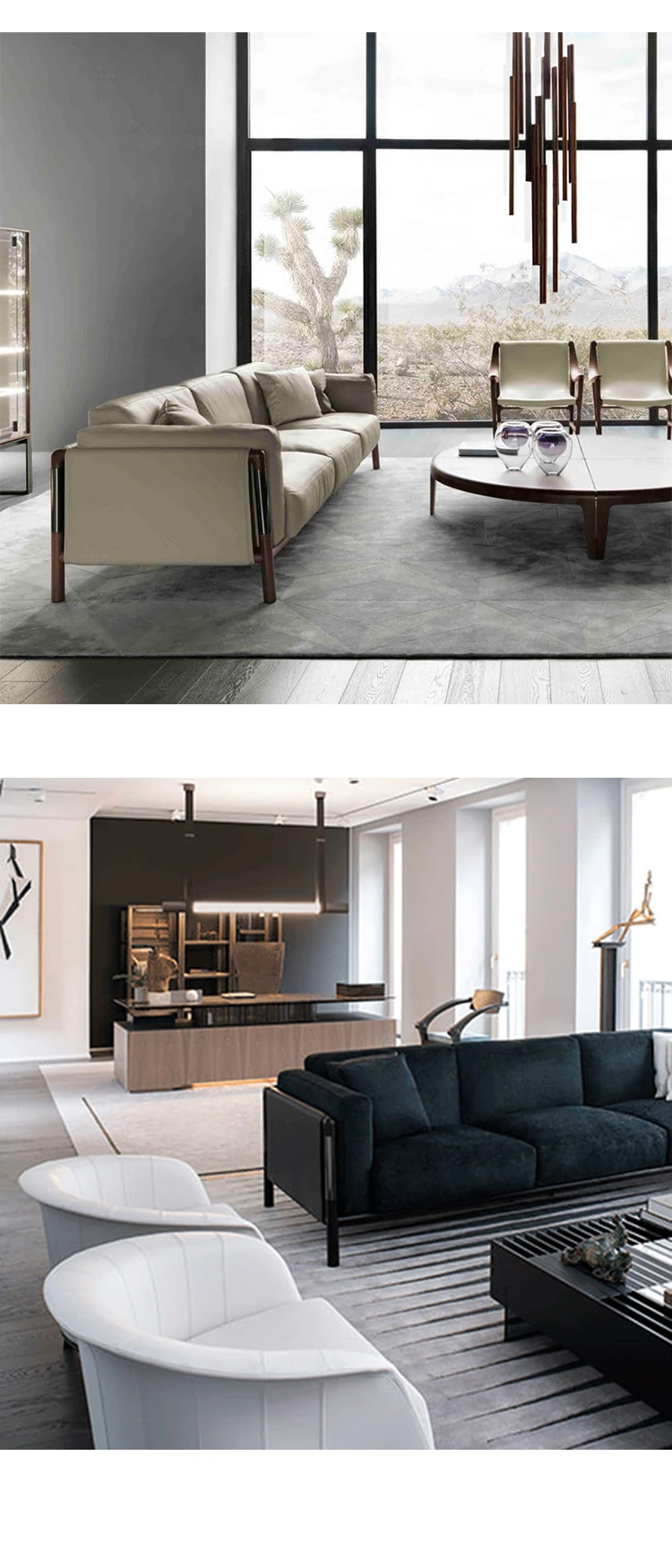 イタリアンミニマルデザインの本革ブレイザーソファ - スリムな小型住宅向け、デザイナーのスタジオルームに最適な高級ファブリックソファ!洗練されたスタイルで、居心地の良い空間を演出します。