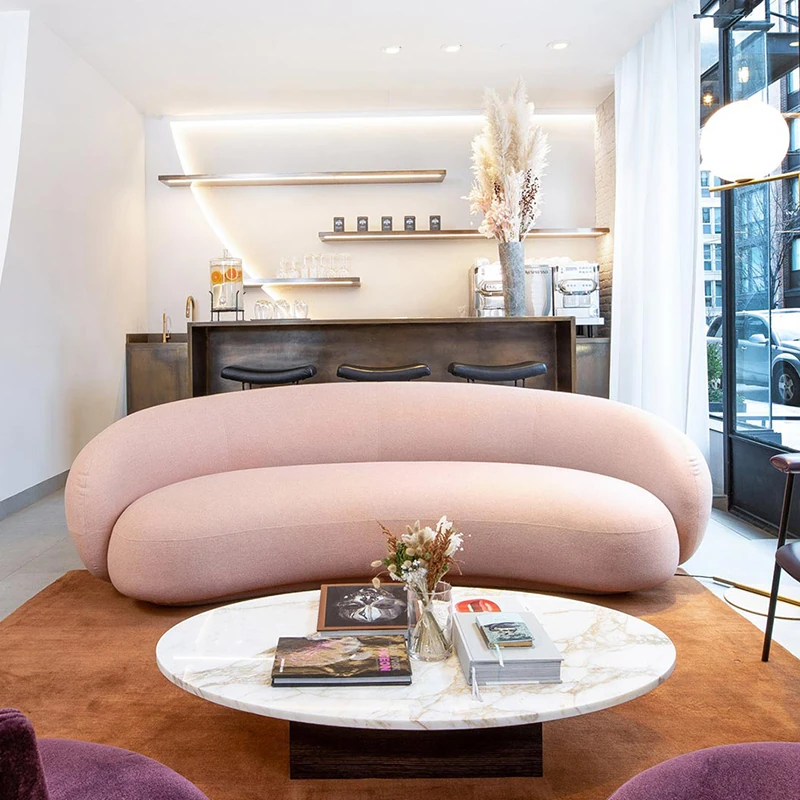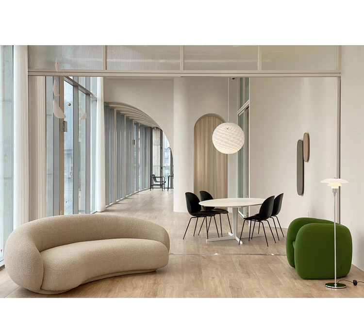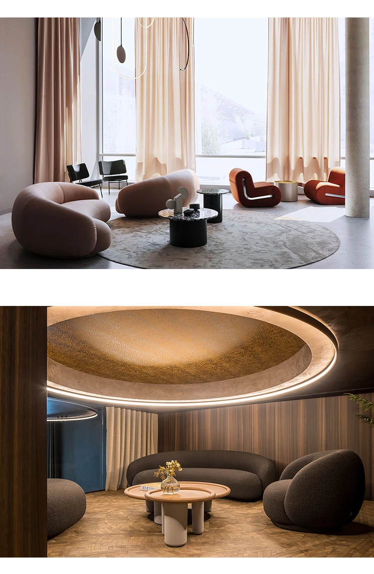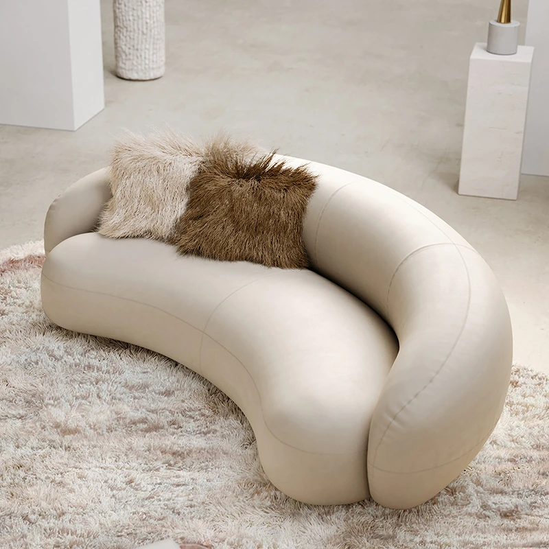 イタリアンミニマルデザインの本革ブレイザーソファ - スリムな小型住宅向け、デザイナーのスタジオルームに最適な高級ファブリックソファ!洗練されたスタイルで、居心地の良い空間を演出します。
