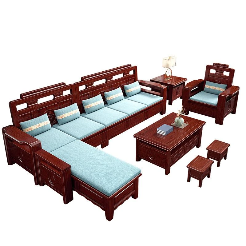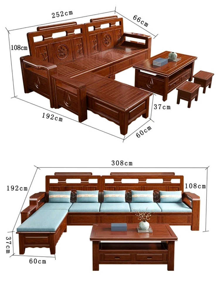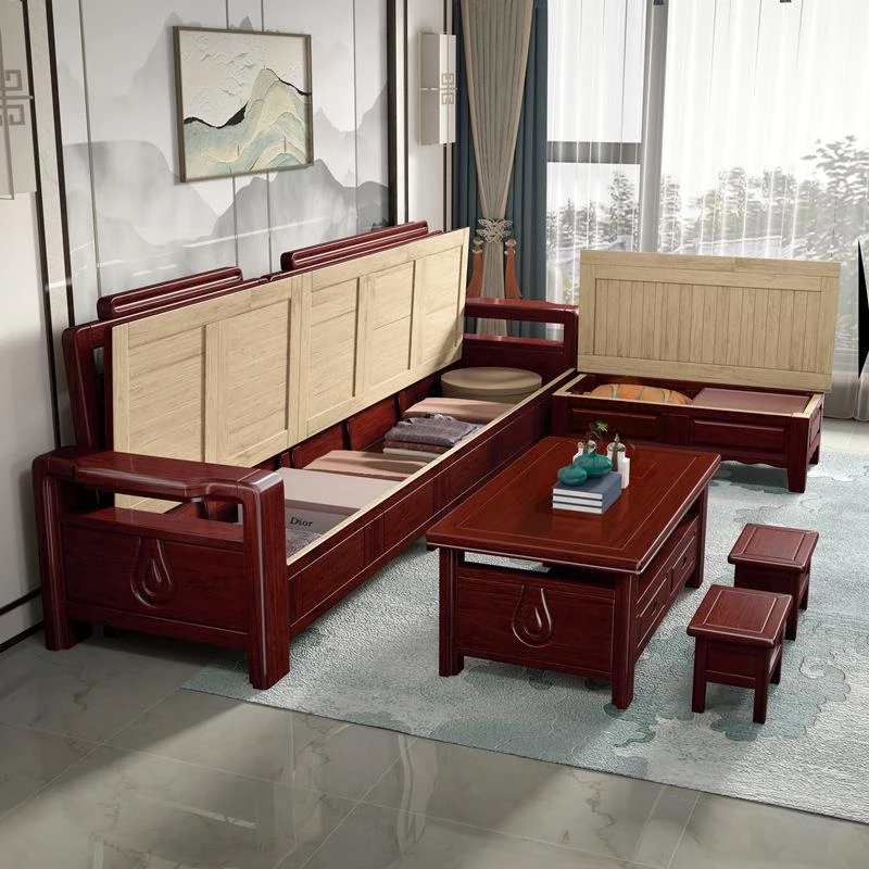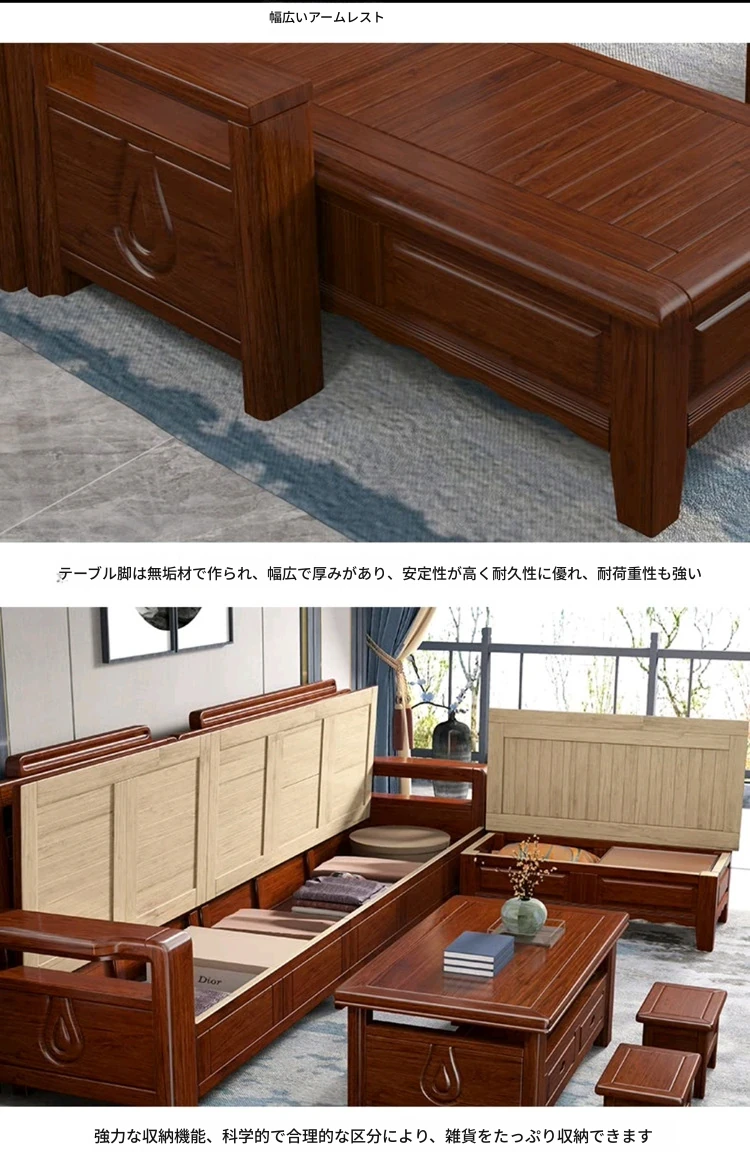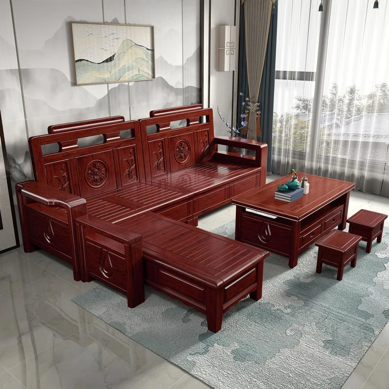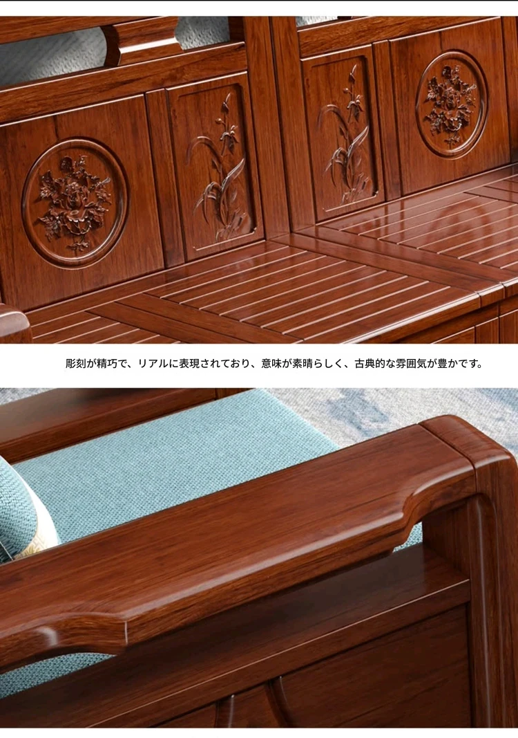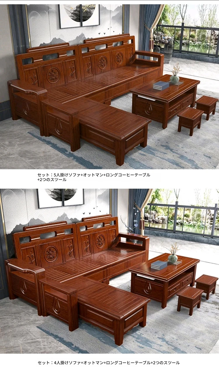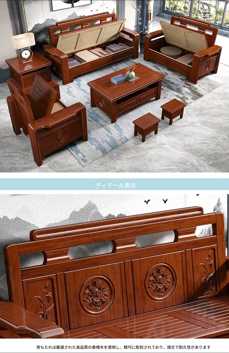 中華風のアンティーク彫刻付き本革ソファセット - 香樟木使用、冬夏兼用の収納多機能コーナーフェイスタソファで、優雅な空間を演出し、心地よいひとときを提供します!