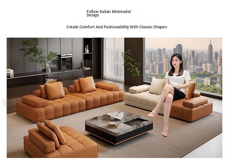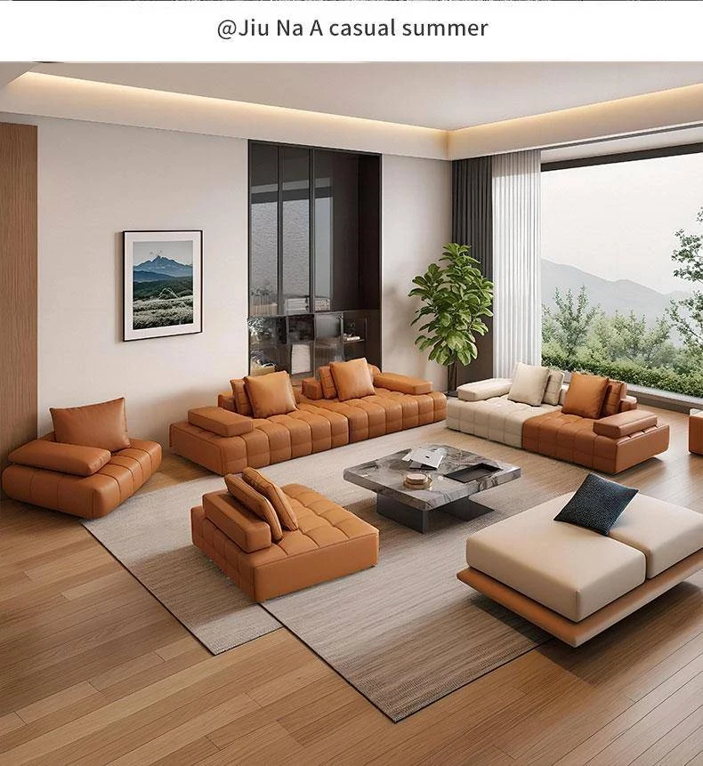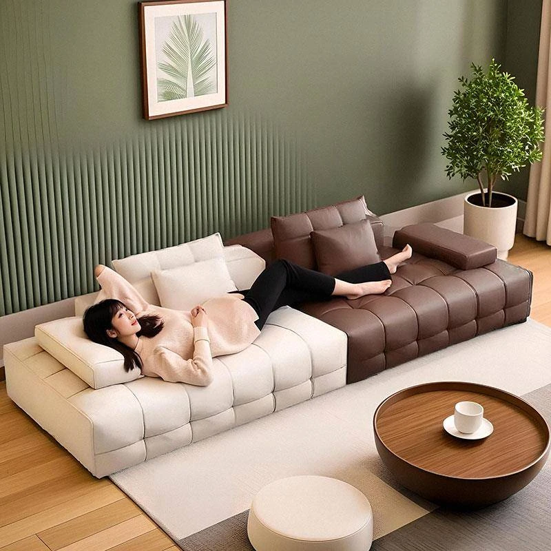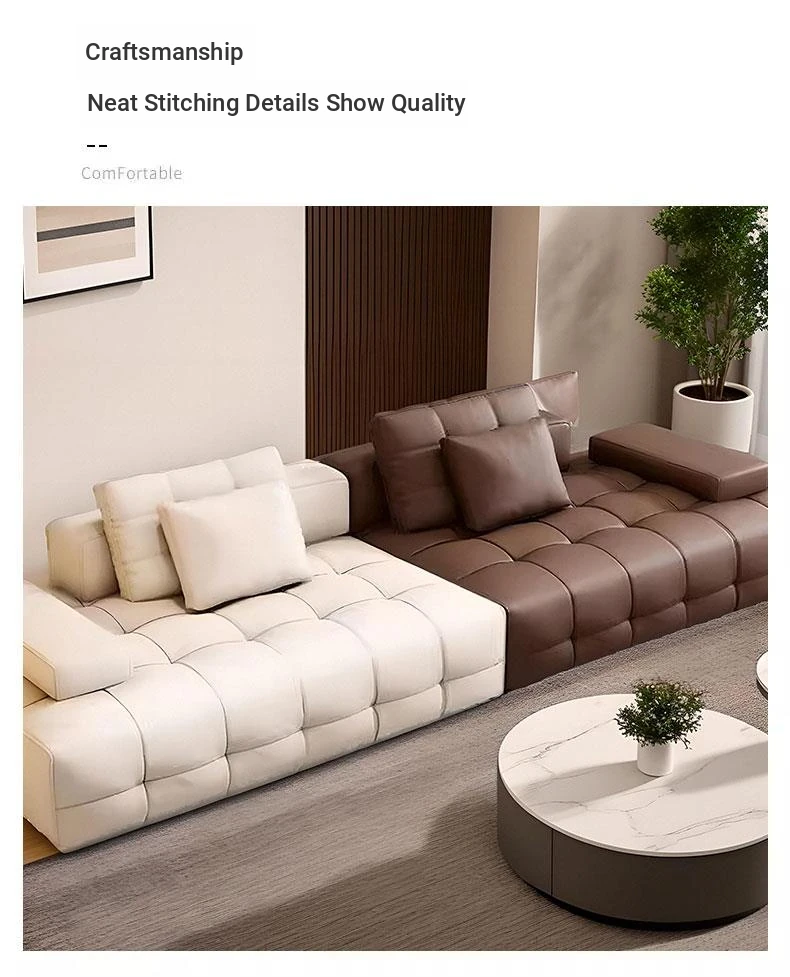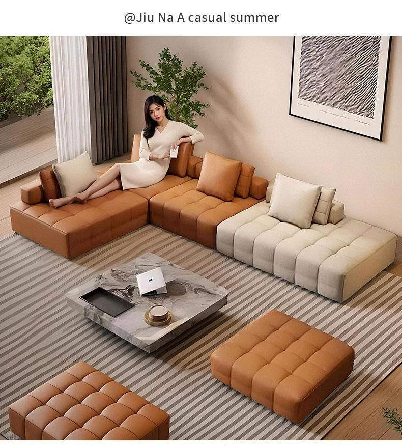 Creamy Lawrence Sofa - Italian Minimalist Modern Chaise Lounge Corner Sofa for Spacious Living Rooms and Villas, Perfect for Stylish Comfort and Elegance.