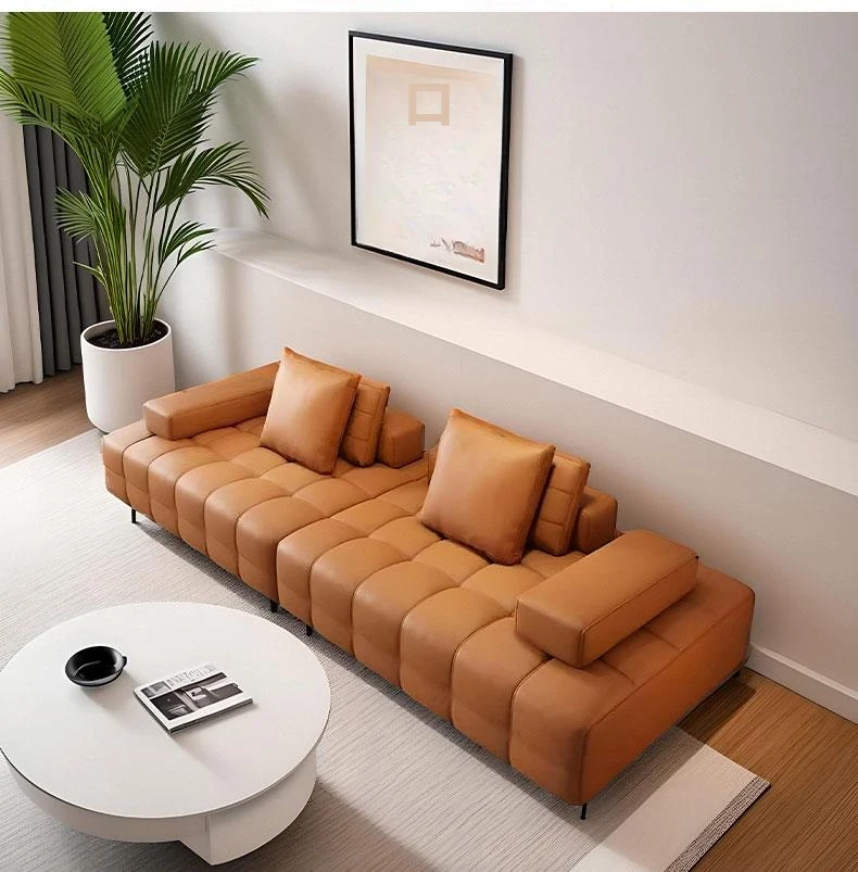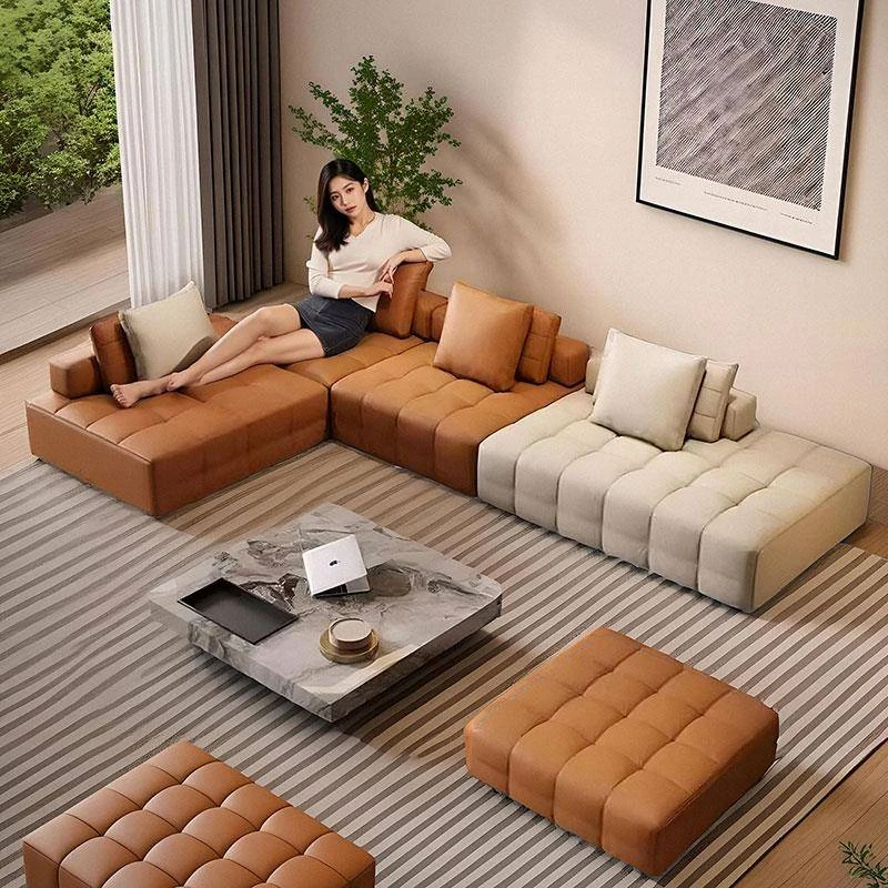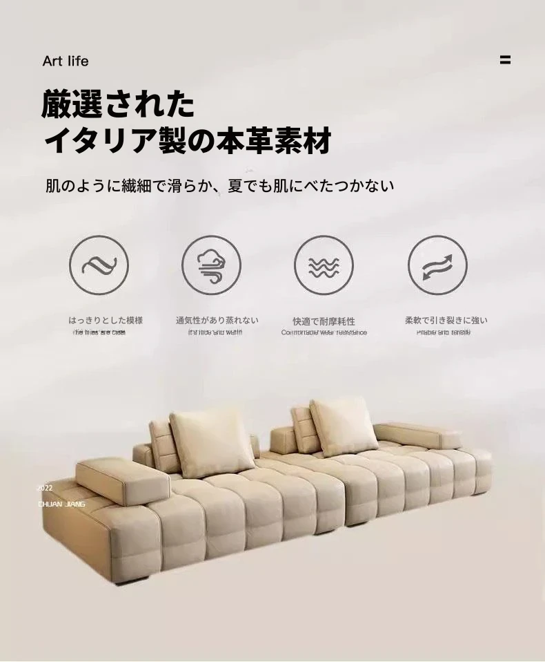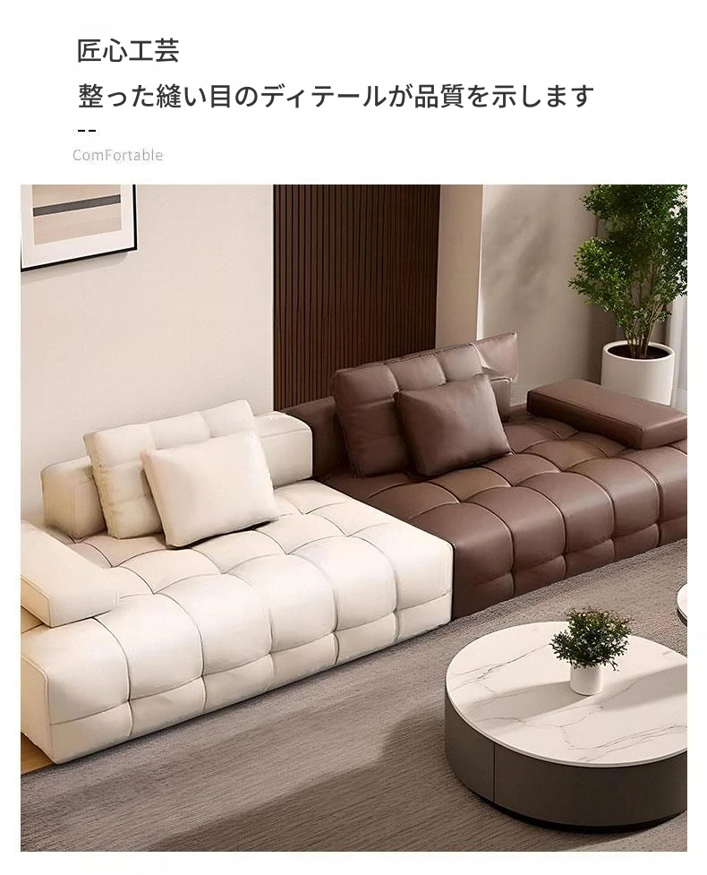 クリーミーな風合いのローレンスソファ - イタリアンミニマルデザイン、モダンなリビングルームに最適な広々としたヴィラ向けのコーナーシェーズロングソファ。スタイリッシュな空間を演出!