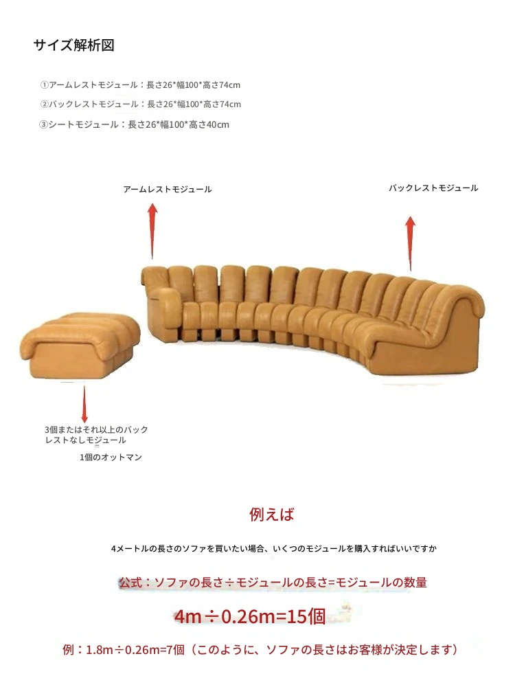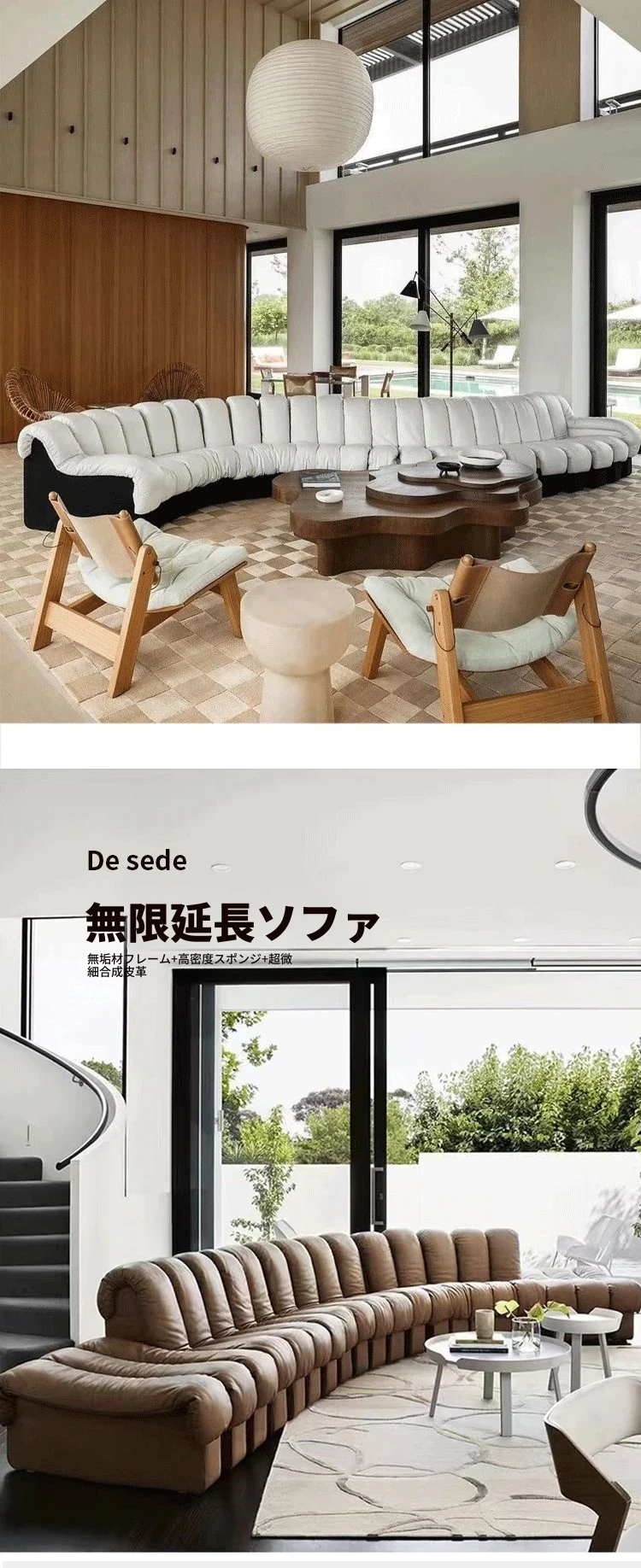 スイスのデ・セデ製アール型本革ソファ、蛇形デザインのモジュラー式ネット組み立て、ヴィラのリビングルームに最適な中古Ds600、洗練されたスタイルで居心地の良い空間を演出します!