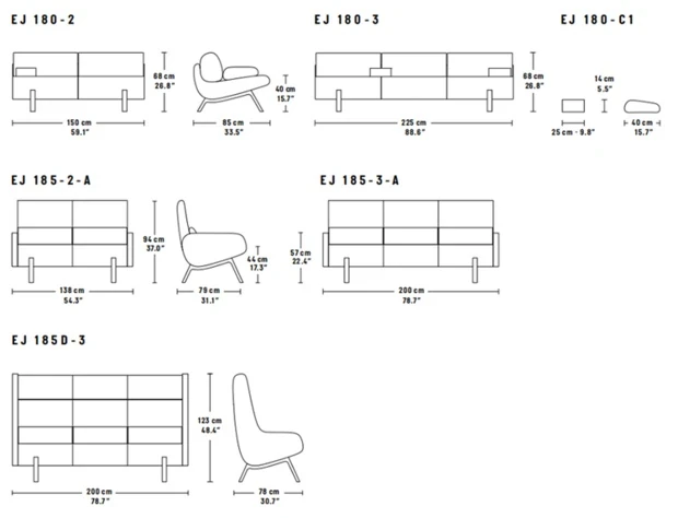 デンマークのErik Jorgensen EJ 180 Duploソファ - 2人掛け・3人掛け、洗練されたマスターデザインで贅沢なくつろぎを体験!