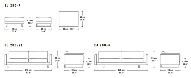 デンマーク Erik Jorgensen EJ 280 ピュアソファ - 2人掛け・3人掛けのマスター設計で、洗練されたスタイルと快適さを両立!リビングに優雅な雰囲気をプラスしませんか?