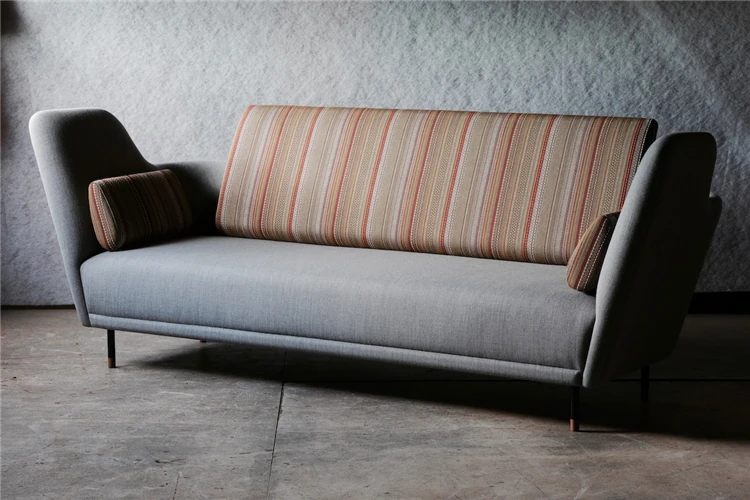 イタリアンミニマルデザインの本革ブレイザーソファ - スリムな小型住宅向け、デザイナーのスタジオルームに最適な高級ファブリックソファ!洗練されたスタイルで、居心地の良い空間を演出します。