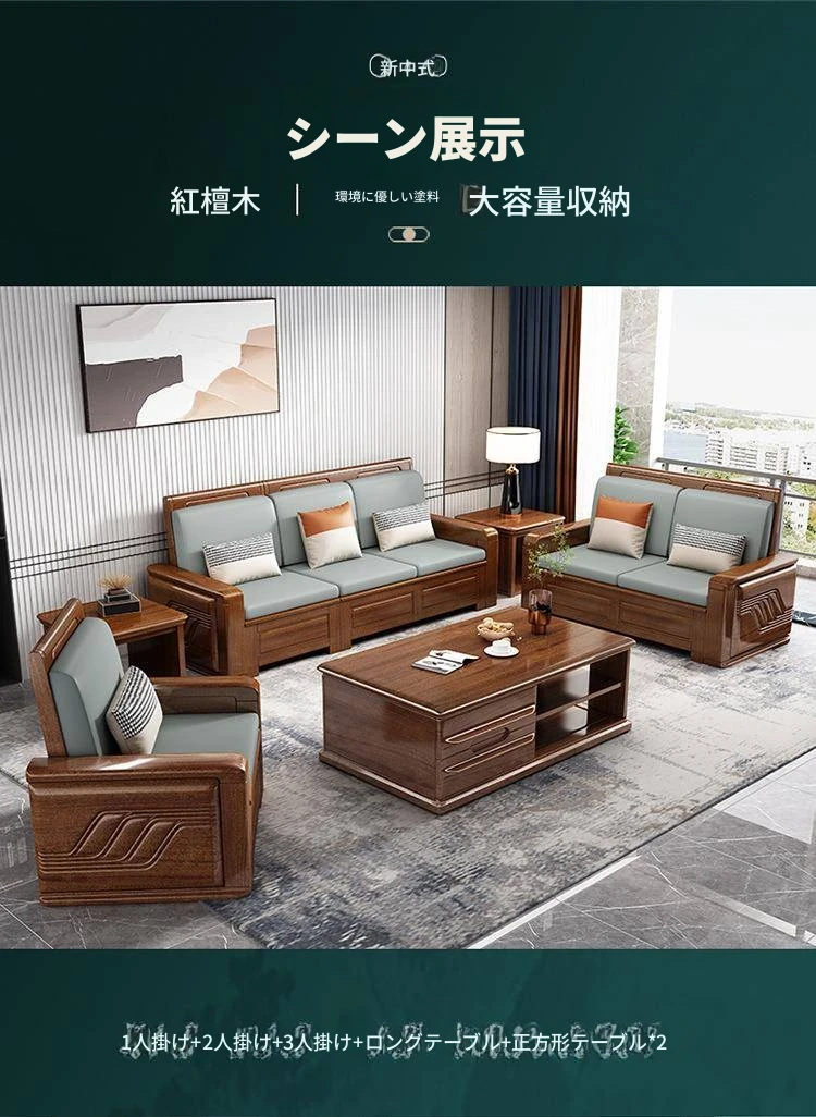 新中式高級実木製ソファ直販!多人数対応、洗える布製クッション付き。豪華な紅檀木を使用した、優雅な貴妃ソファセットで、リビングをスタイリッシュに演出!