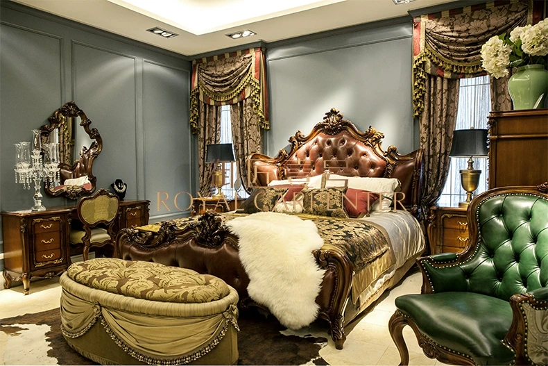 御匠壹号の欧風ベッドルーム家具 - 高級感溢れる無垢材手作り彫刻と布製ラッカーチェア。大小様々な間取りにぴったりのエレガントなデザインで、あなたの寝室を華やかに彩ります!