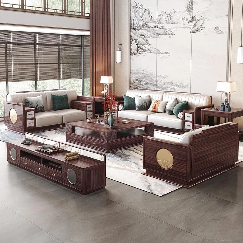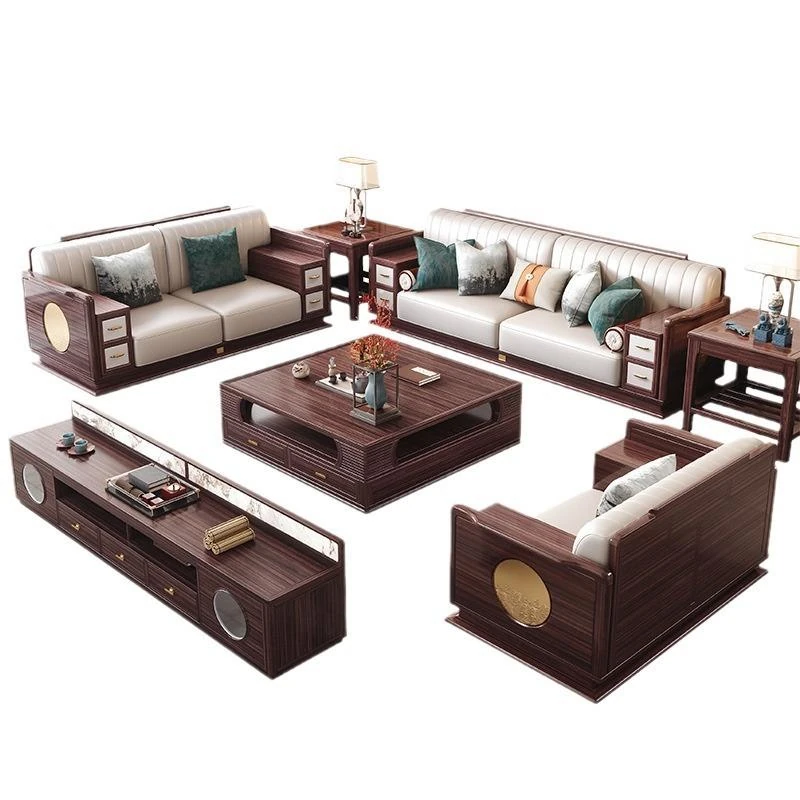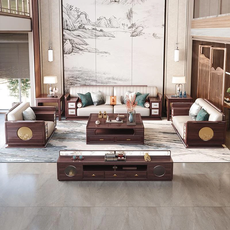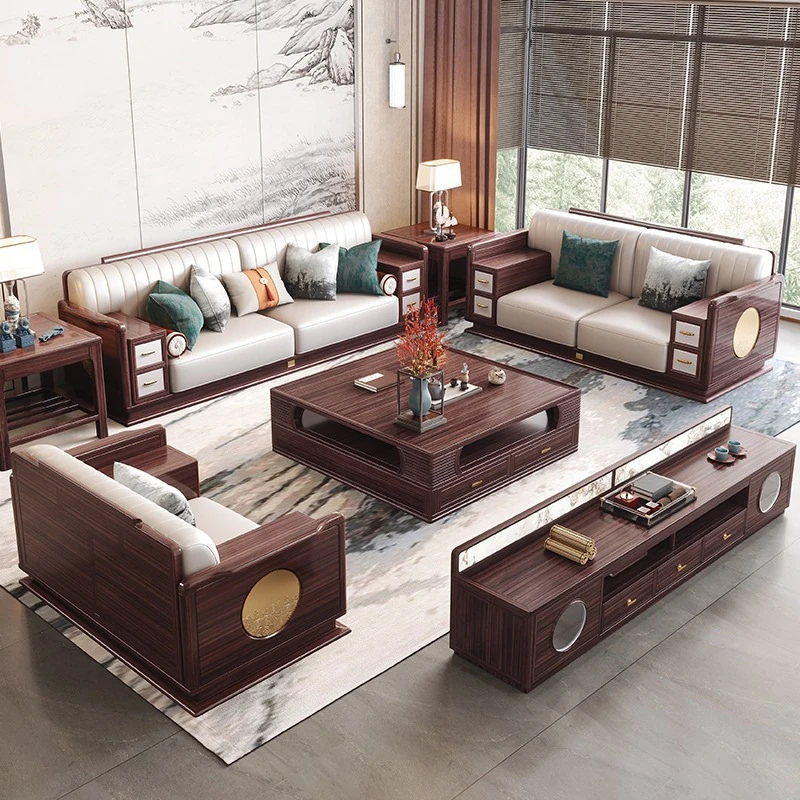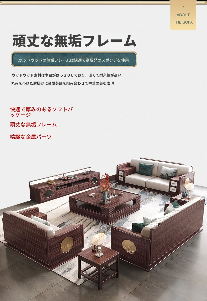 新中式ウッド調ウルキン木製ソファー - 高級感溢れる実木コンビネーション、シンプルなデザインで収納機能も充実。別荘やリビングにぴったりな贅沢なソファーです!